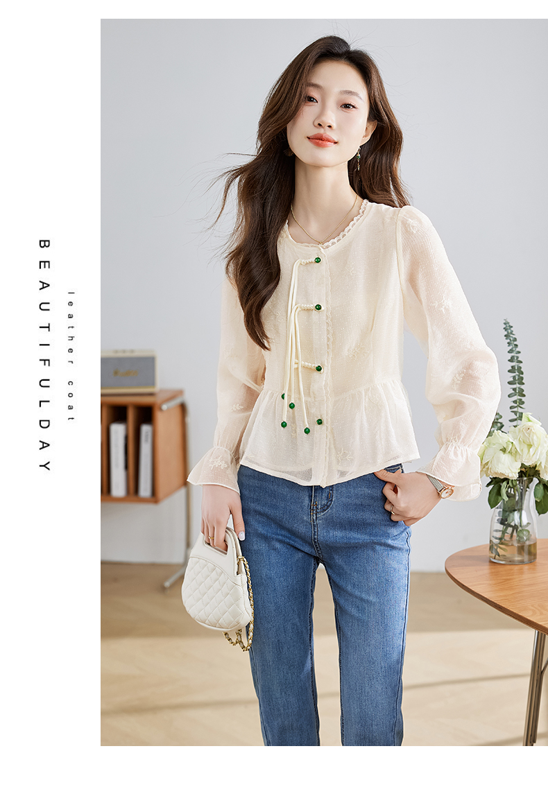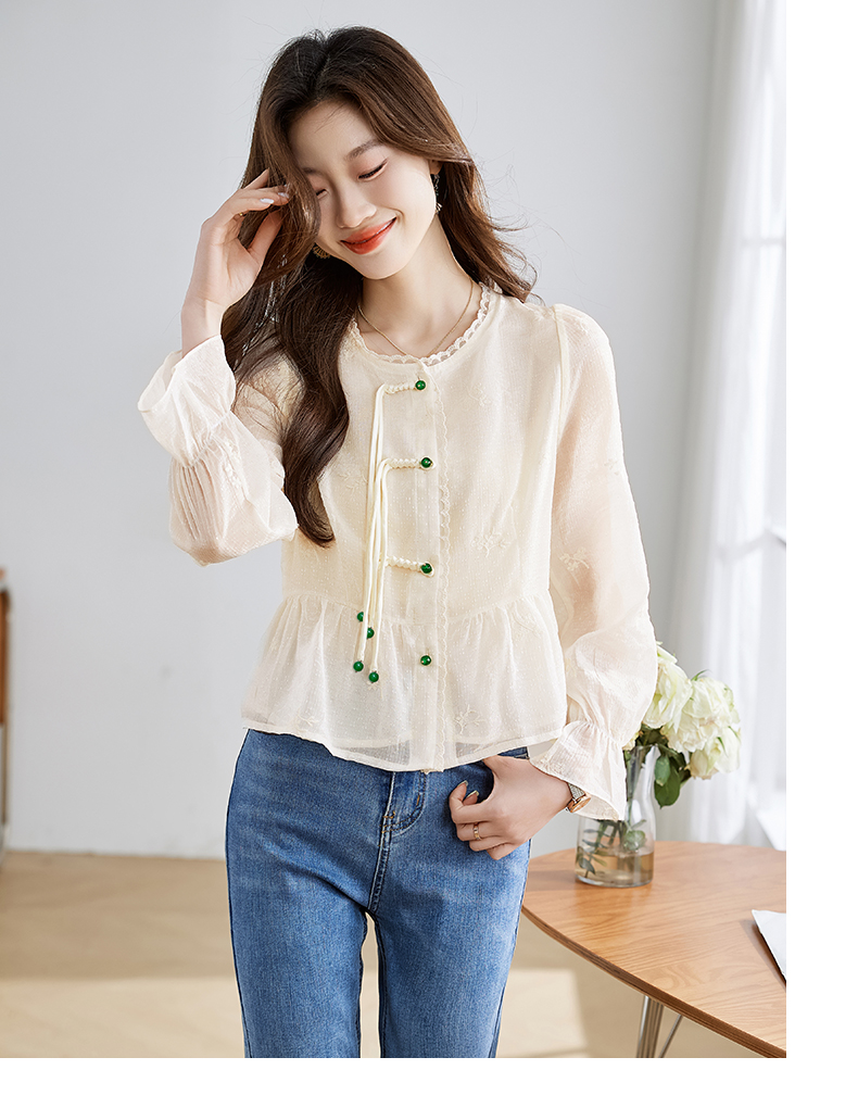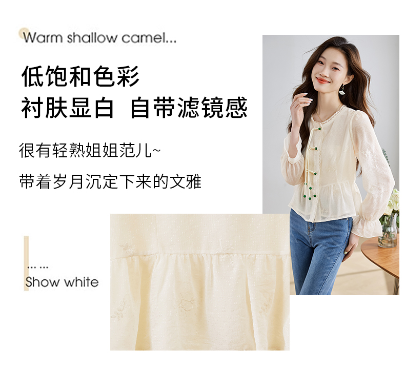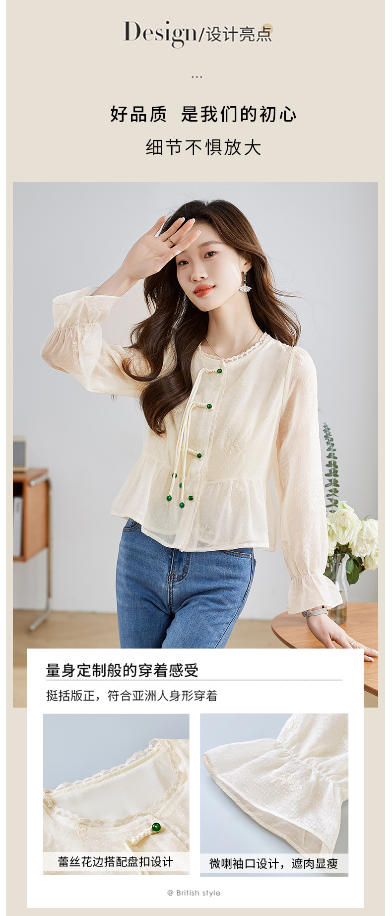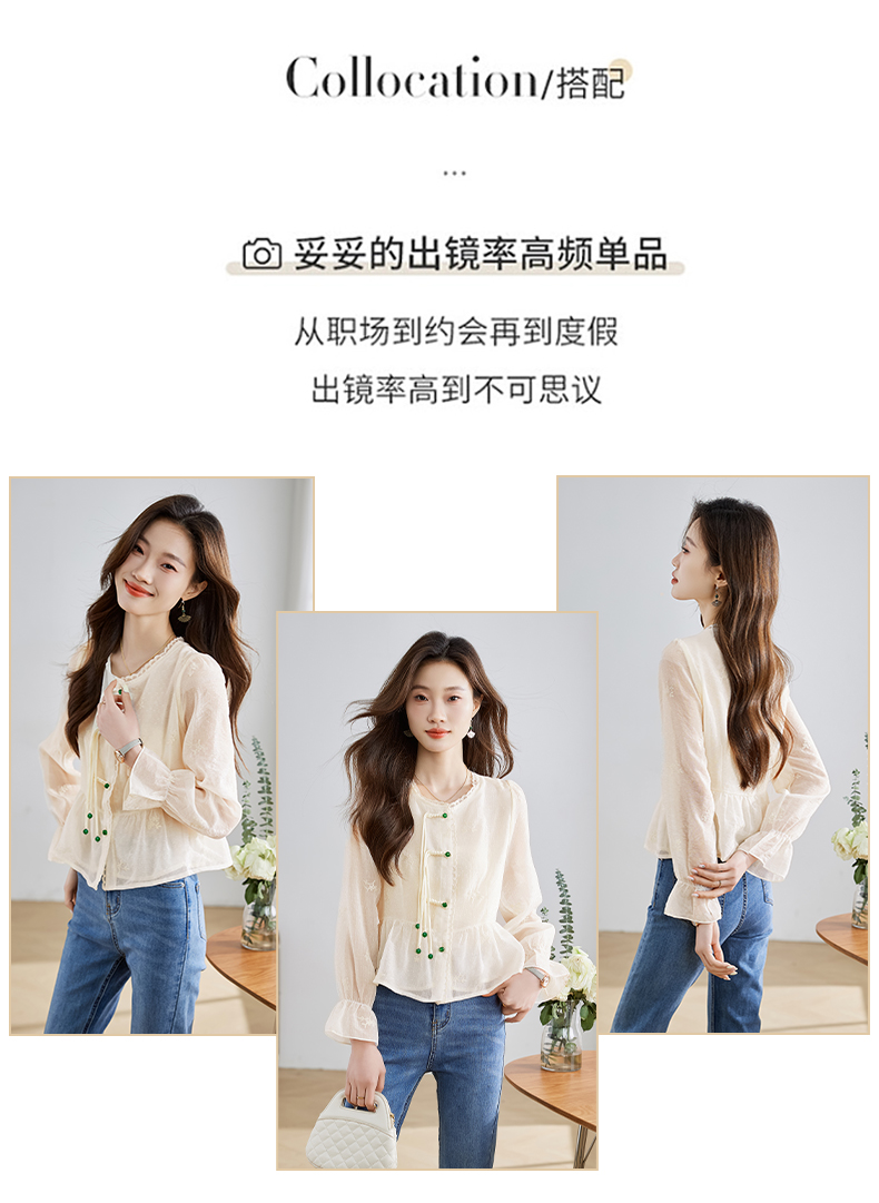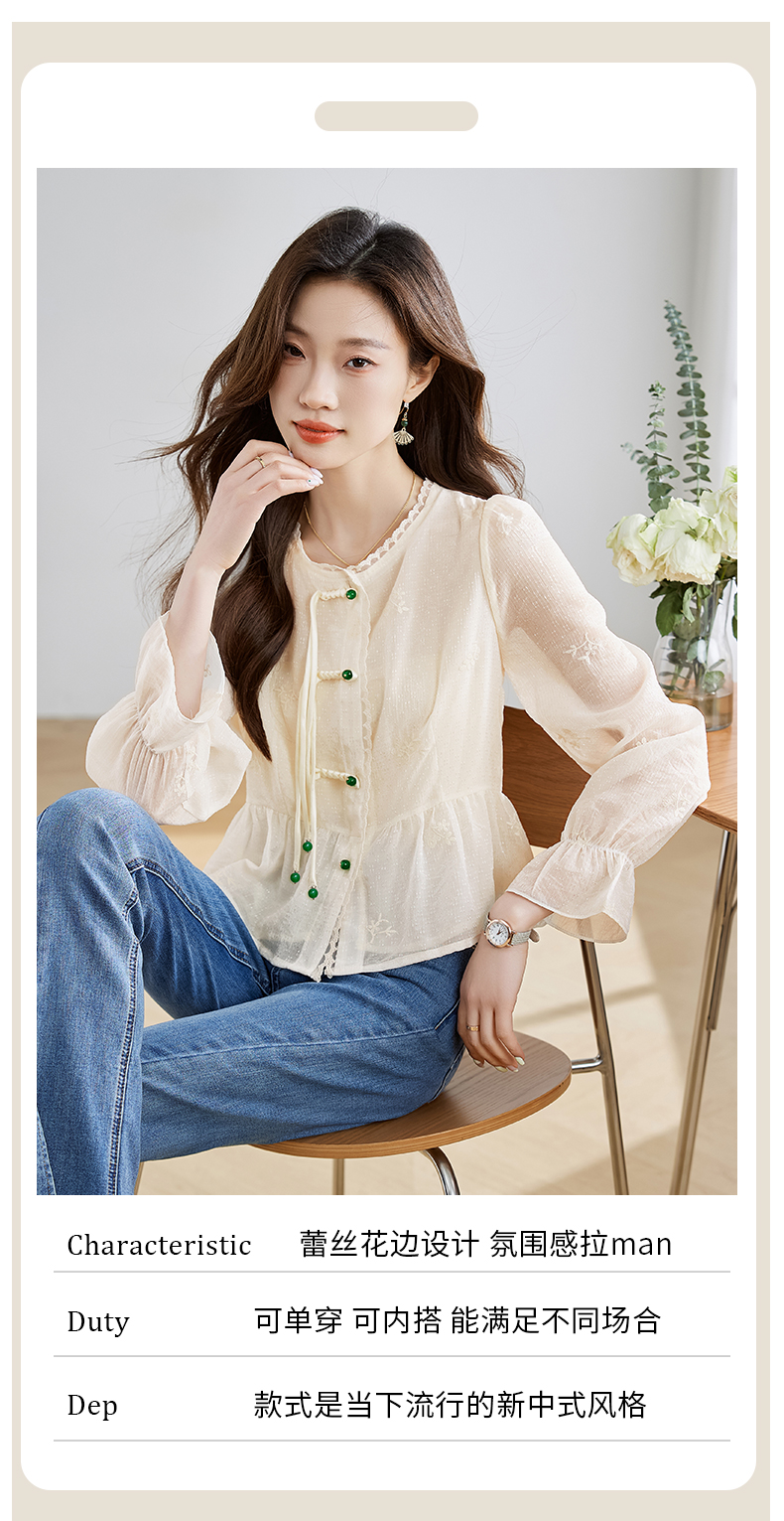 优雅新中式,蕾丝花边显瘦衬衣HR-CPYY8029