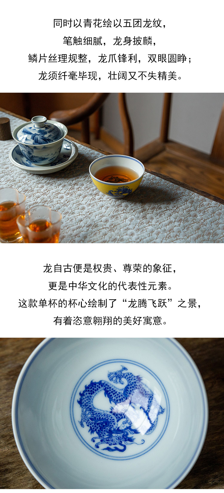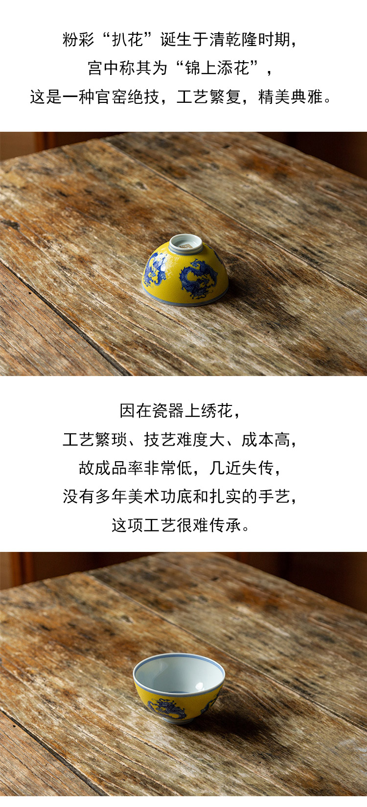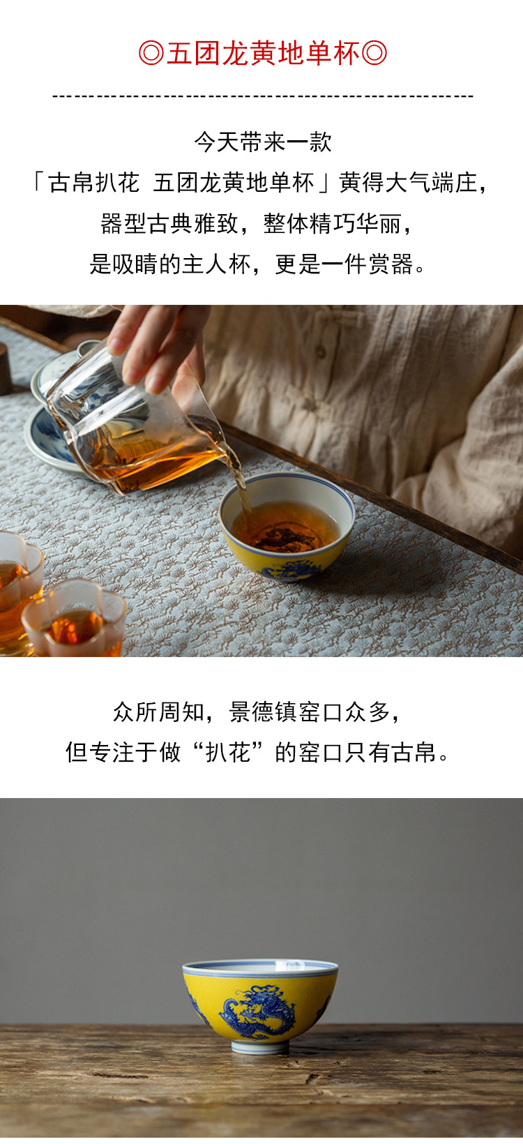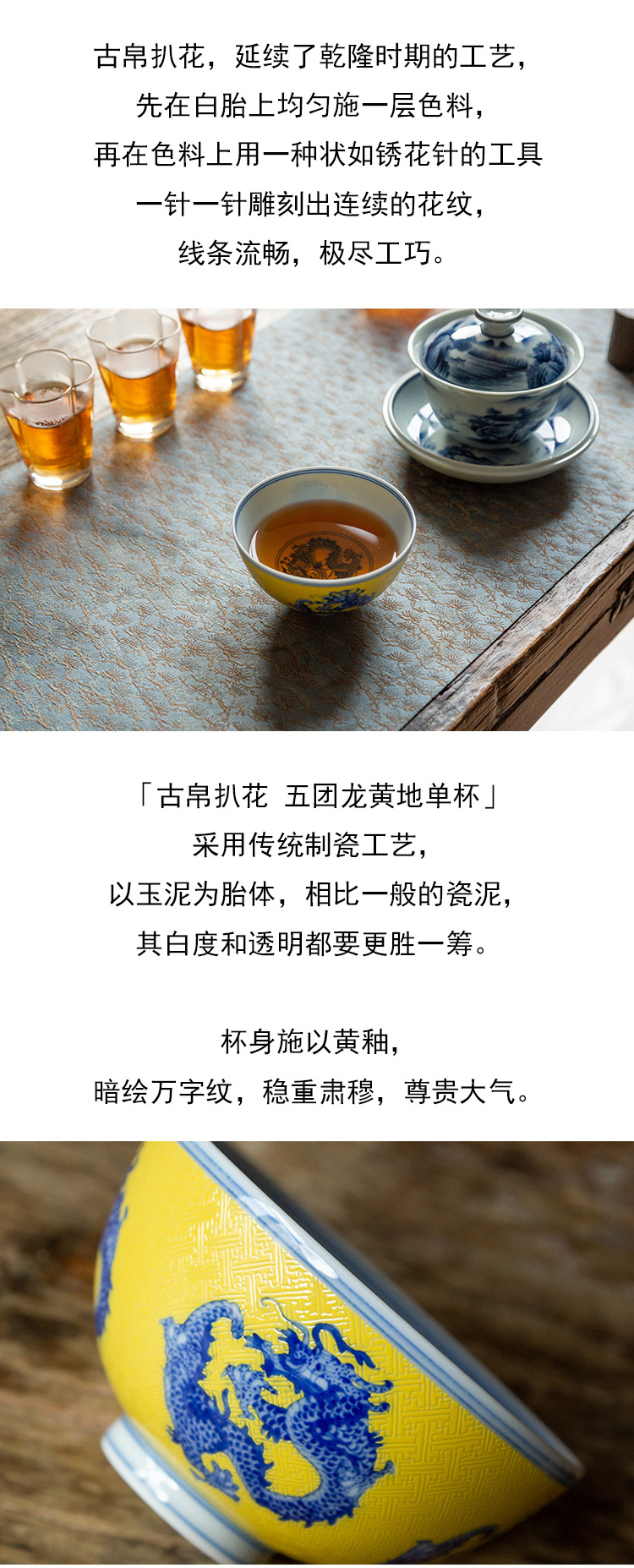 茶香记 古帛扒花 五团龙黄地单杯 主人杯 工艺繁复 技艺高超 尊贵典雅 龙纹气韵