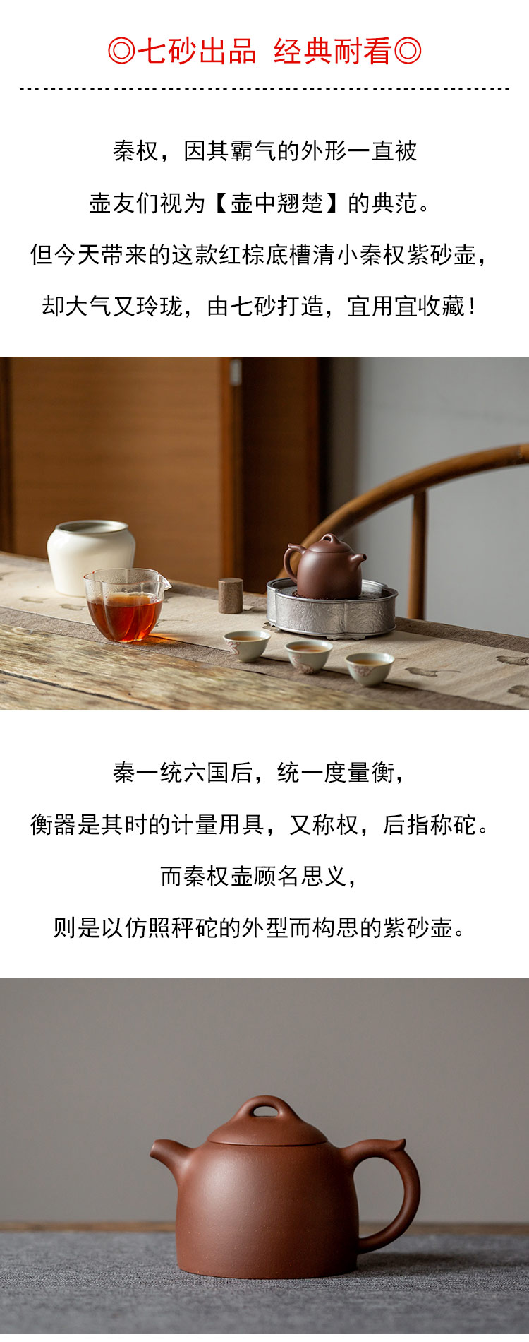 茶香记 红棕底槽清 小秦权 紫砂壶 沉稳大气 七砂出品 茶壶