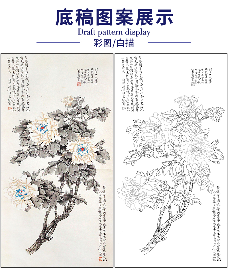 于非闇花鸟工笔画白描底稿《墨牡丹》牡丹临摹勾线高清打印稿HS14