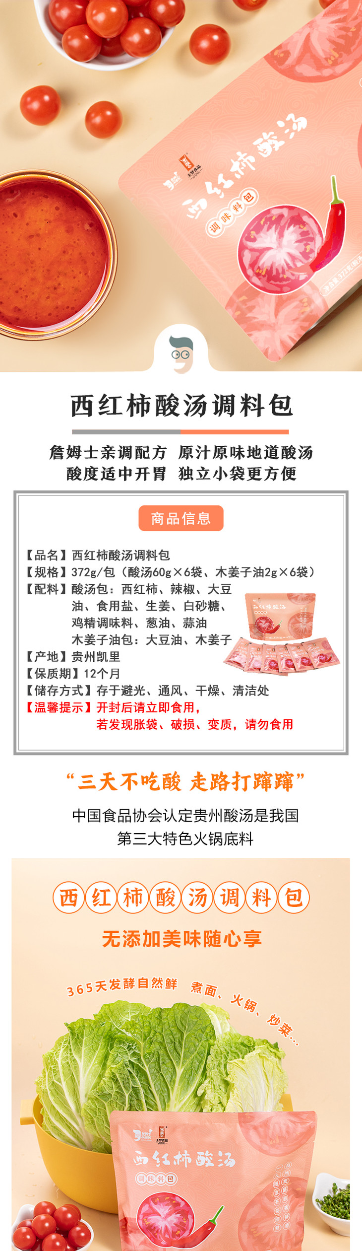 西红柿酸汤调味料包 | 升级版詹厨小袋酸汤 无添加美味随心享 酸味浓郁开胃 365天发酵自然鲜 煮面/火锅/炒菜