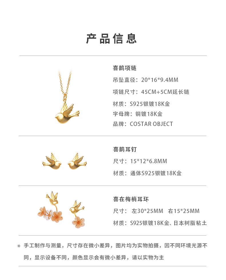 私人订制 完美且浪漫 | COSTAR喜鹊系列首饰 耳钉项链礼物饰品 多款入【不支持7天内退换货,介意者慎拍!】