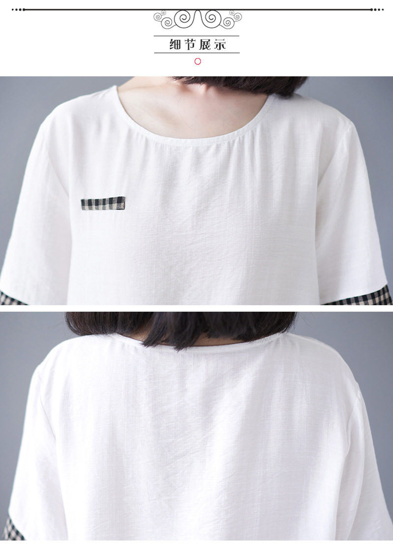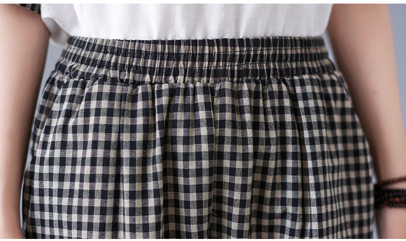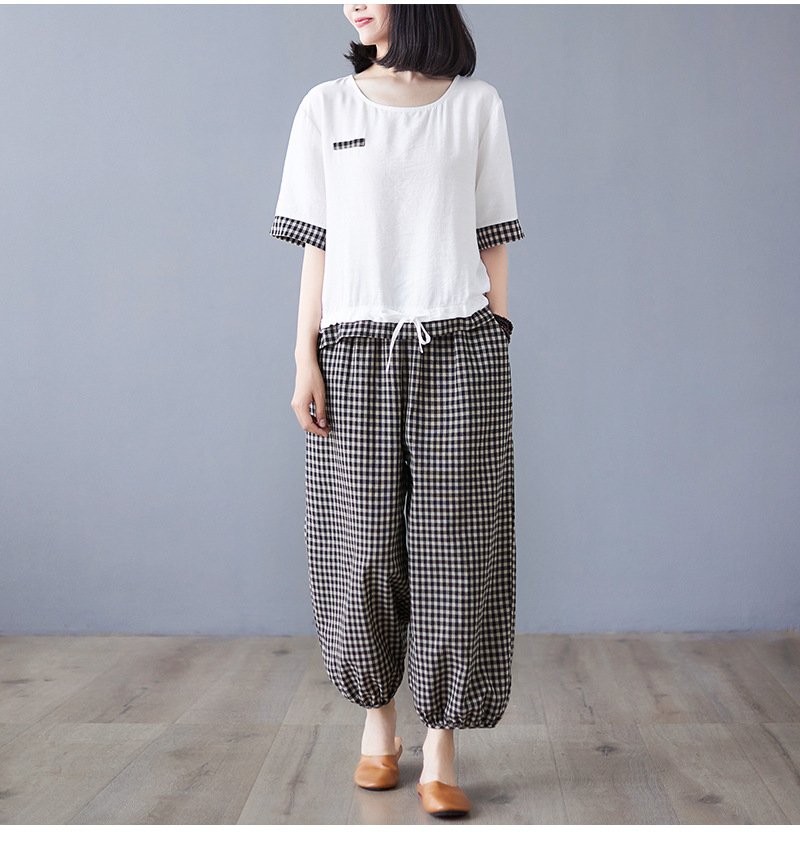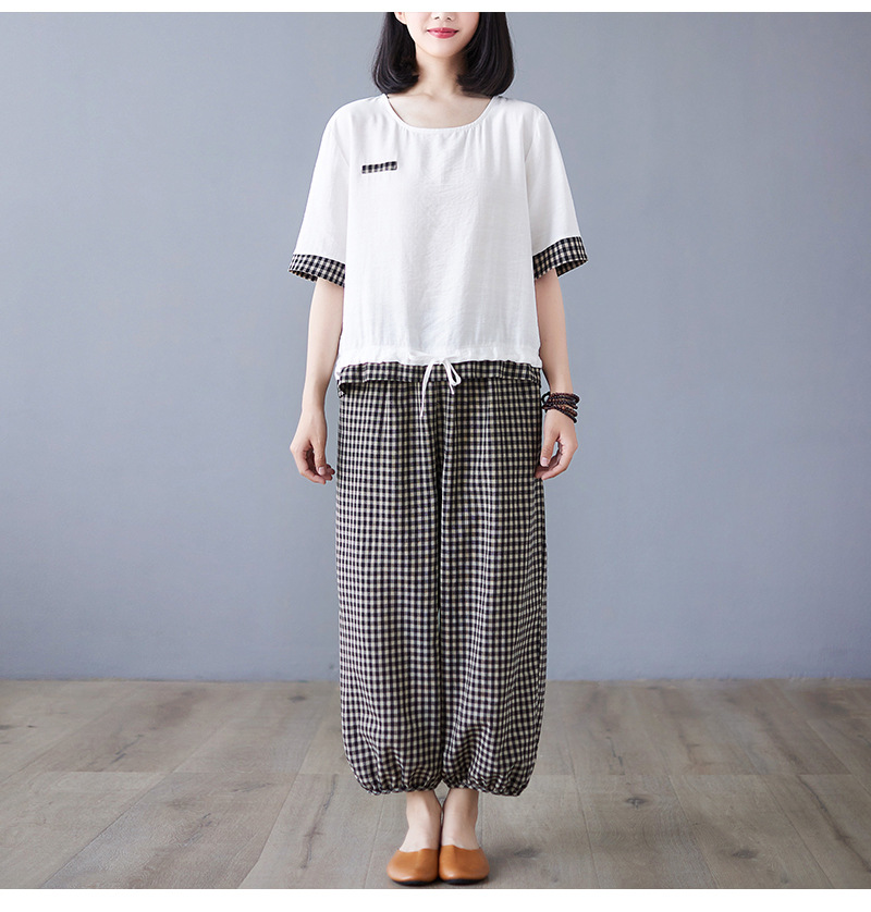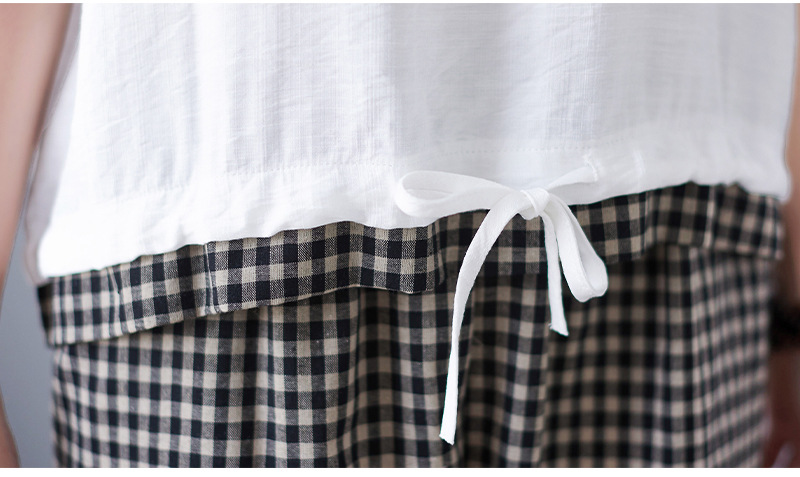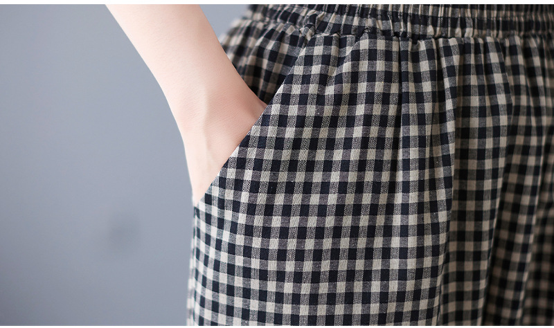 MZ18822中老年女装妈妈夏装棉麻套装2025新款大码短袖上衣夏季格子两件套