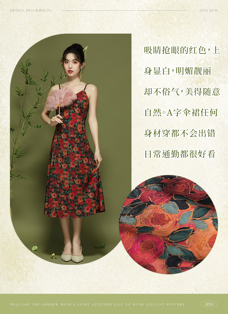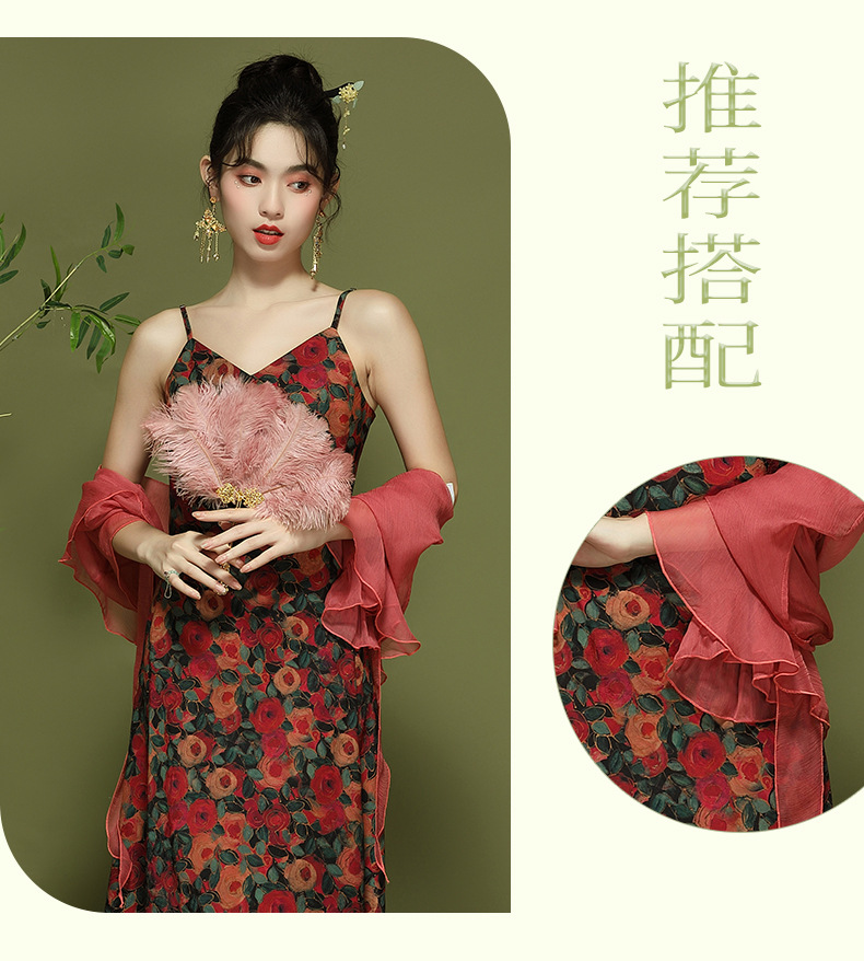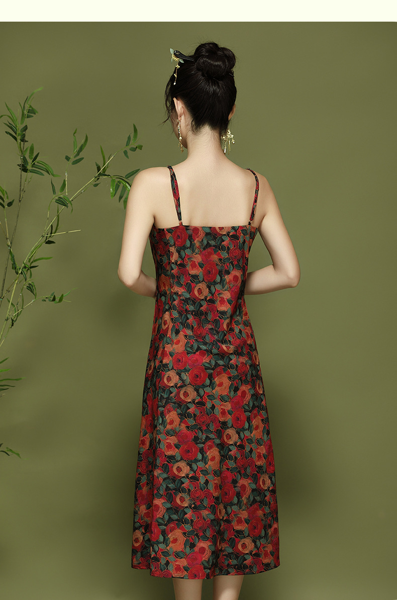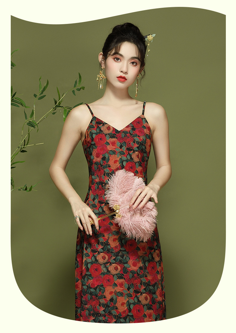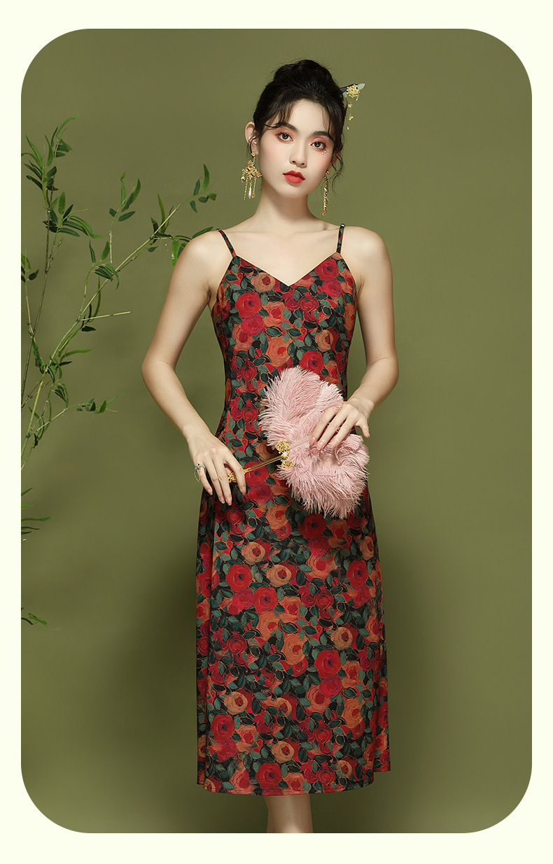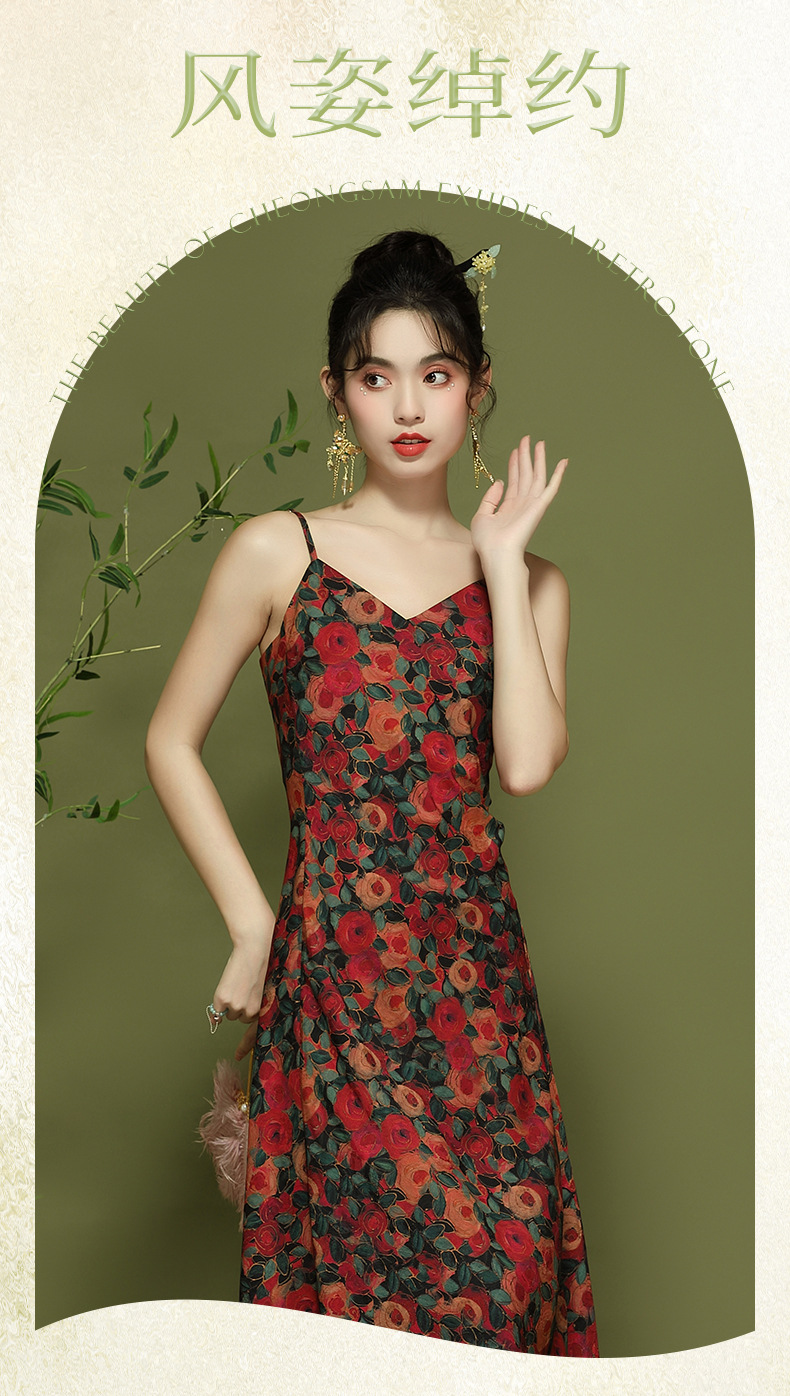 OY-24110夏季新款时尚吊带连衣裙改良年轻款气质新式旗袍裙24110