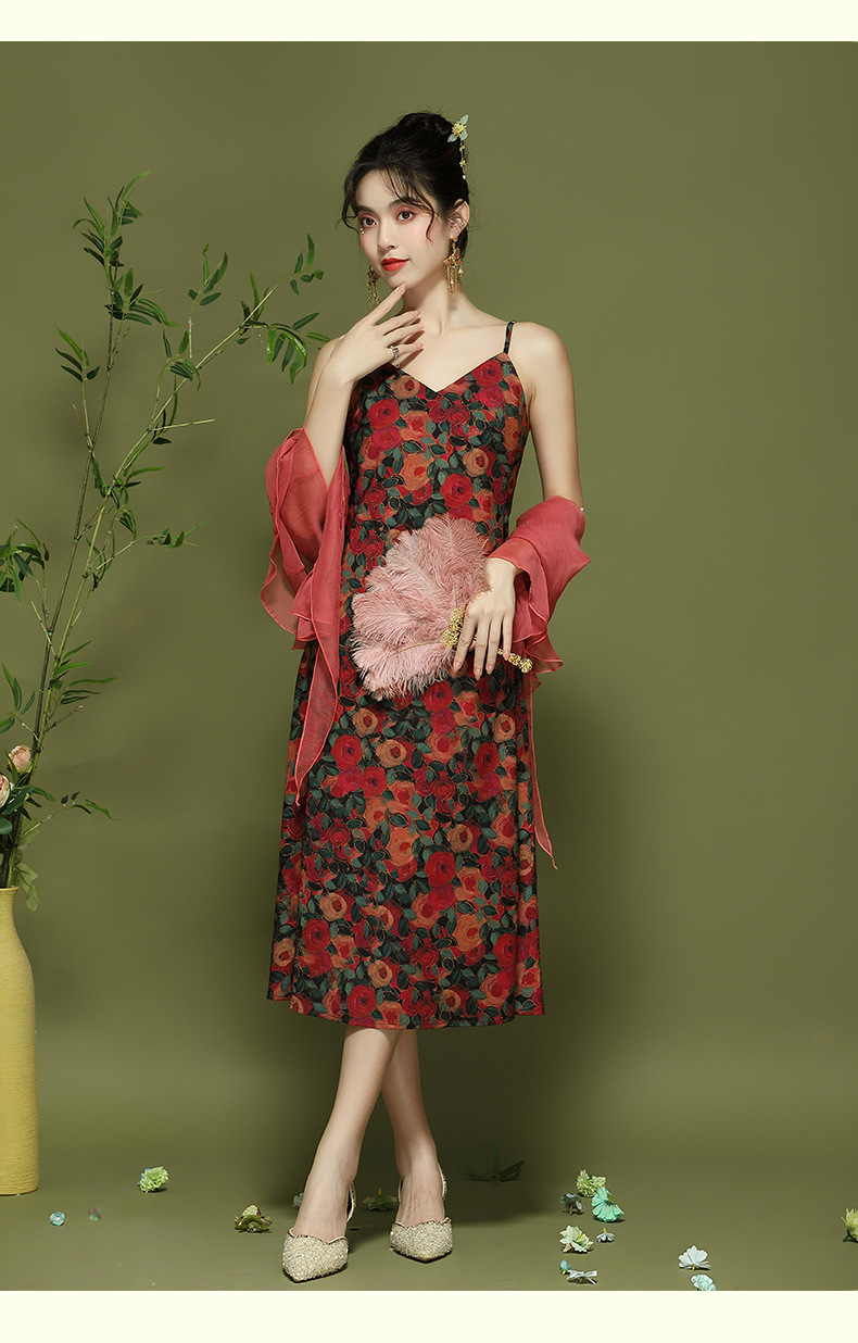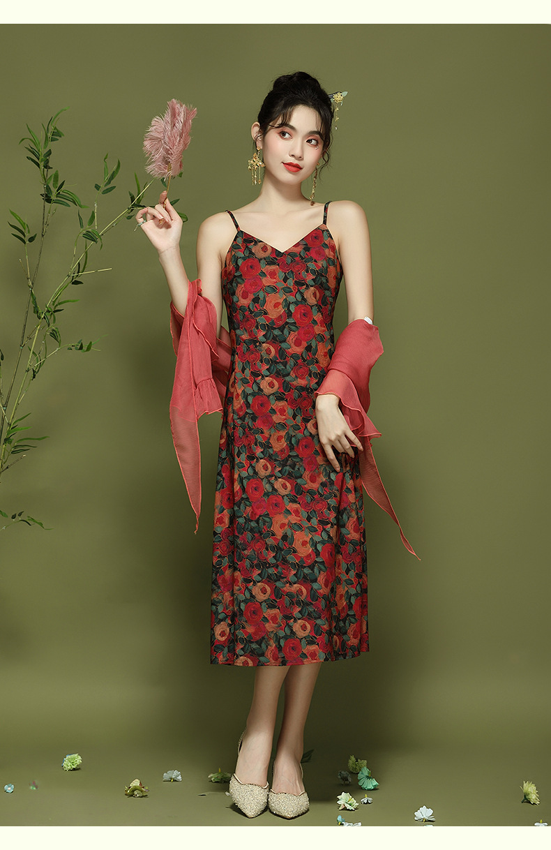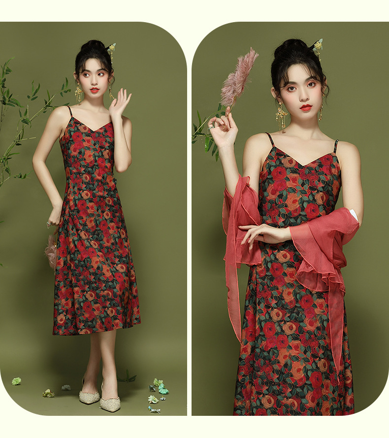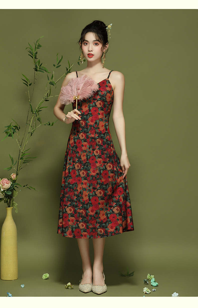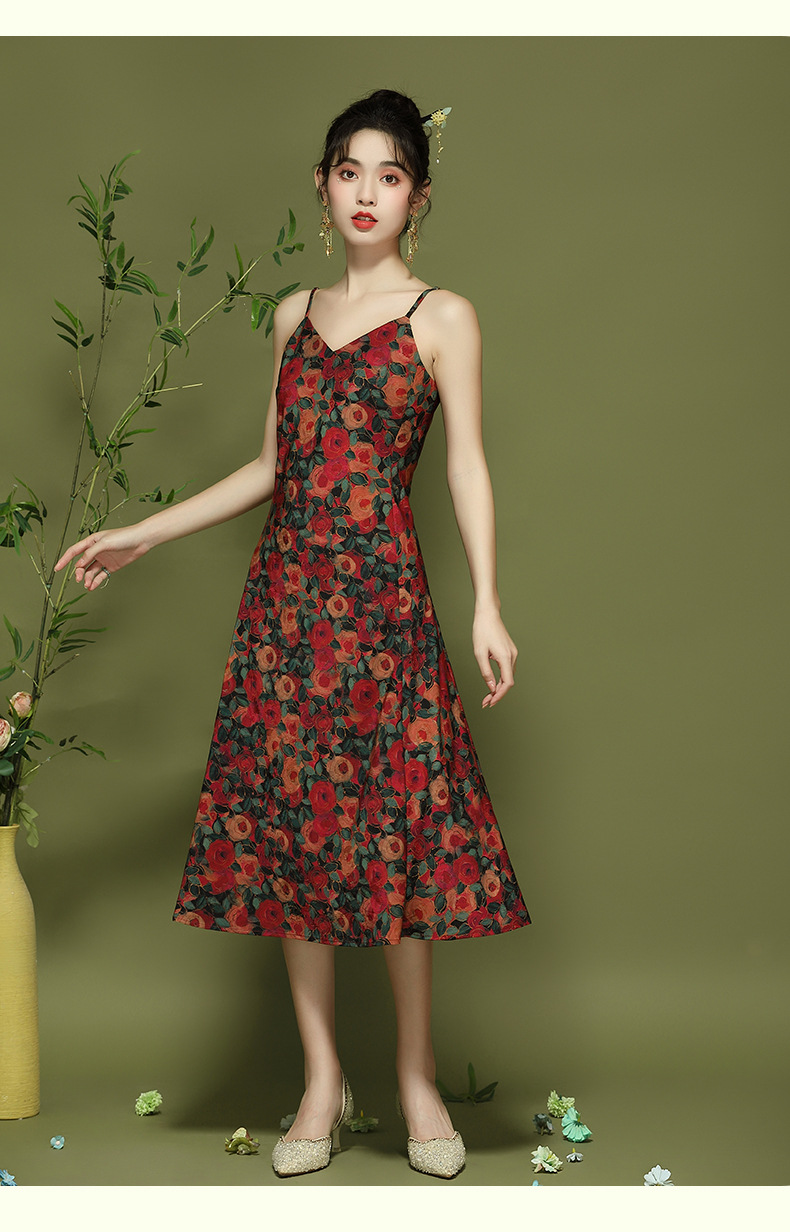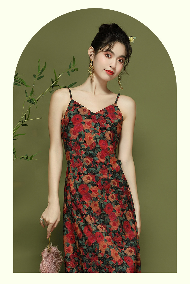 OY-24110夏季新款时尚吊带连衣裙改良年轻款气质新式旗袍裙24110