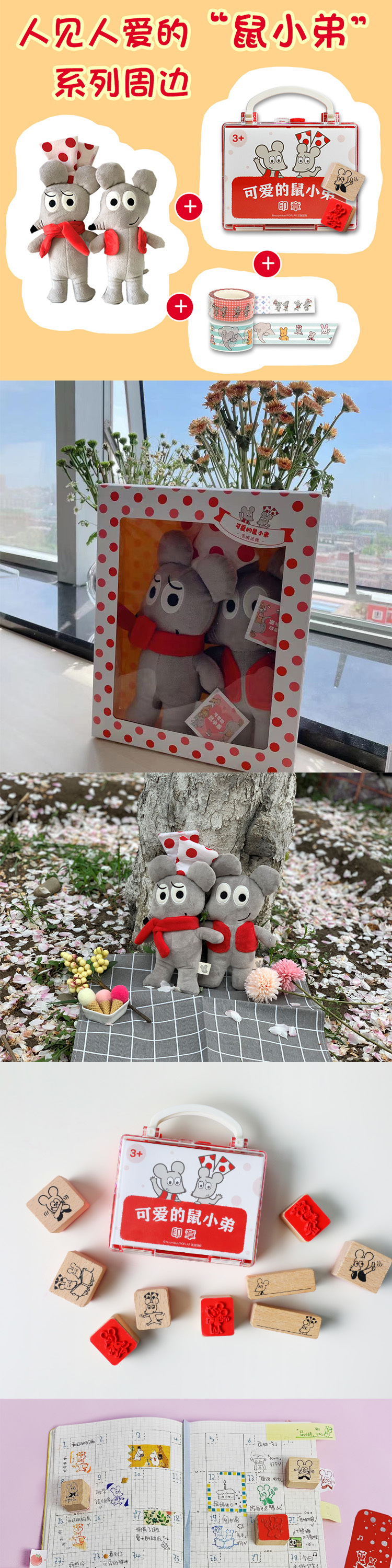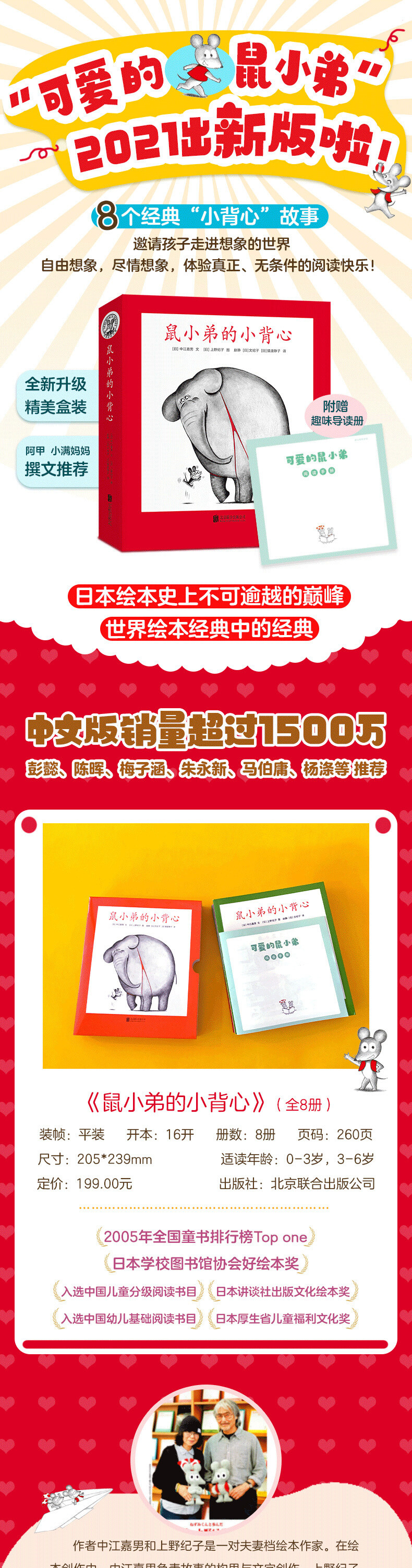 【爱心树童书多规格】鼠小弟的小背心(全8册)+玩偶一对+印章