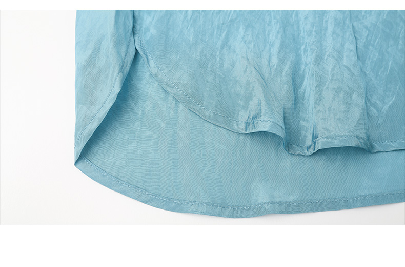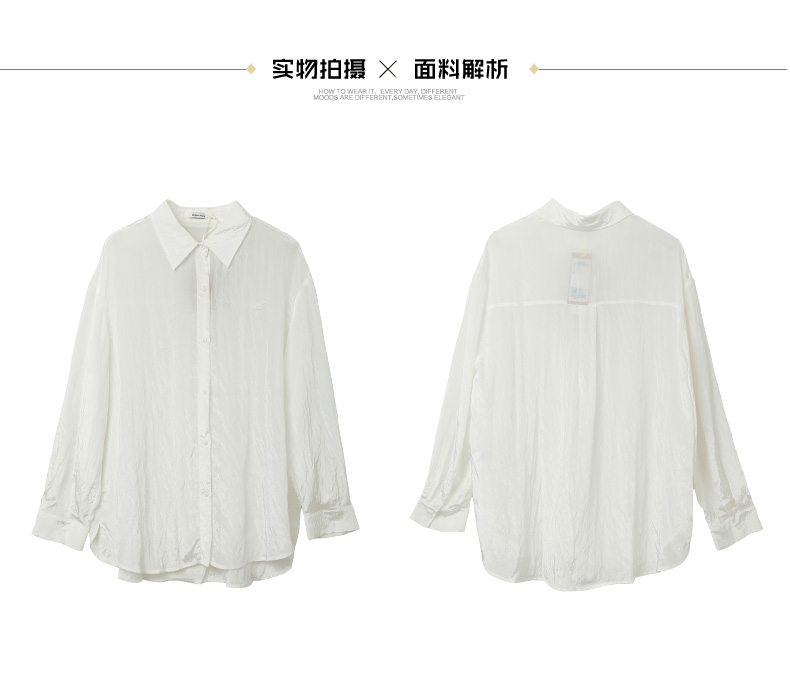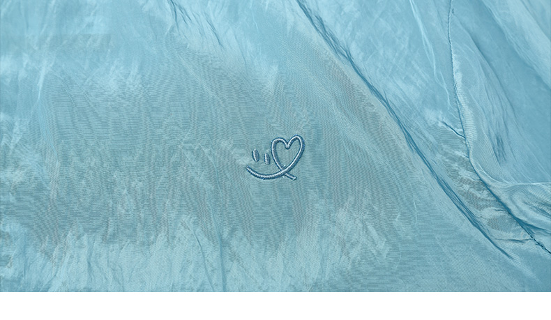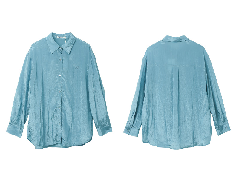 法式慵懒风湖蓝色天丝衬衫女 爱心刺绣翻领宽松长袖防晒衫 小个子通勤百搭上衣