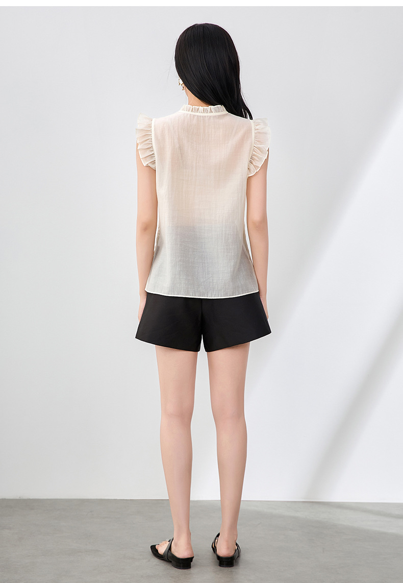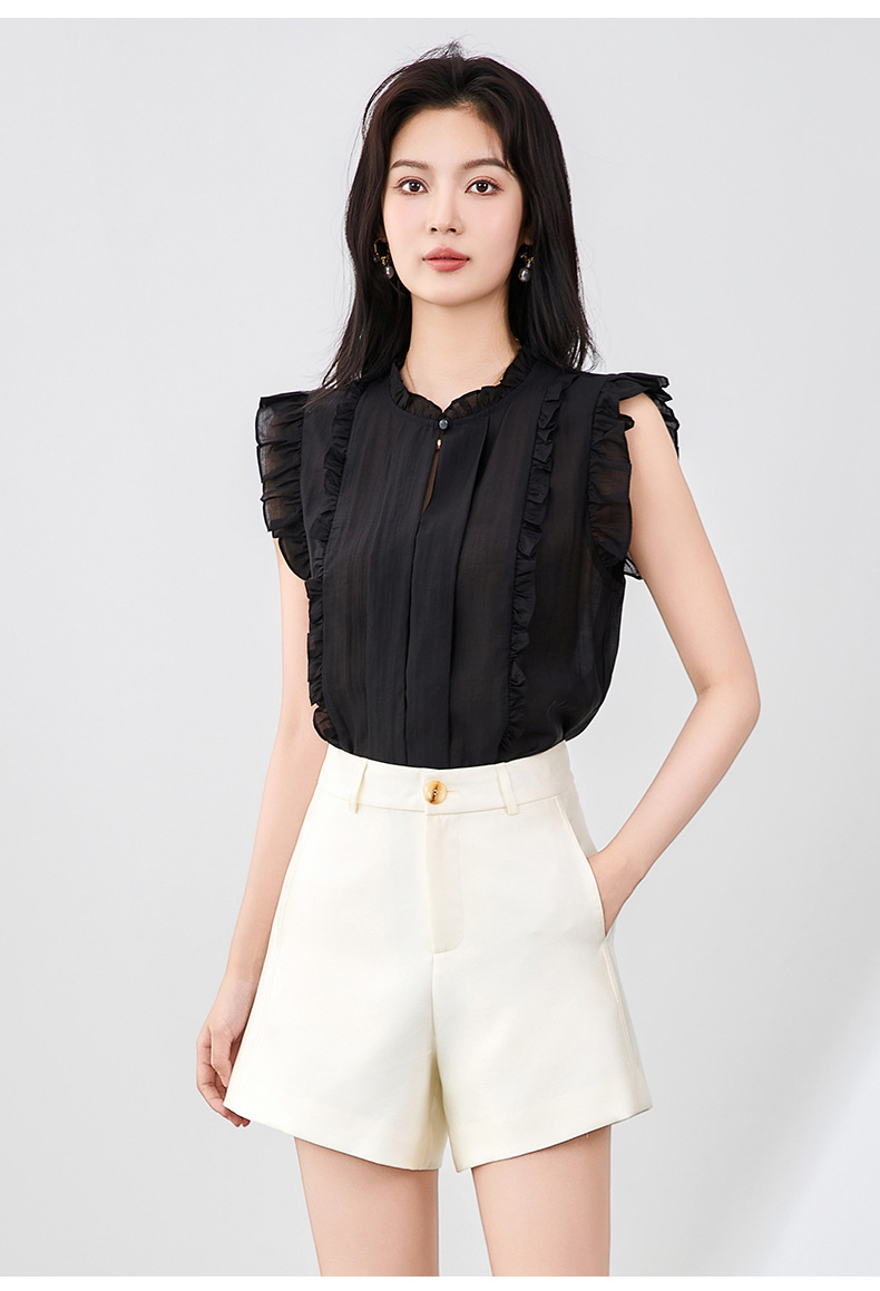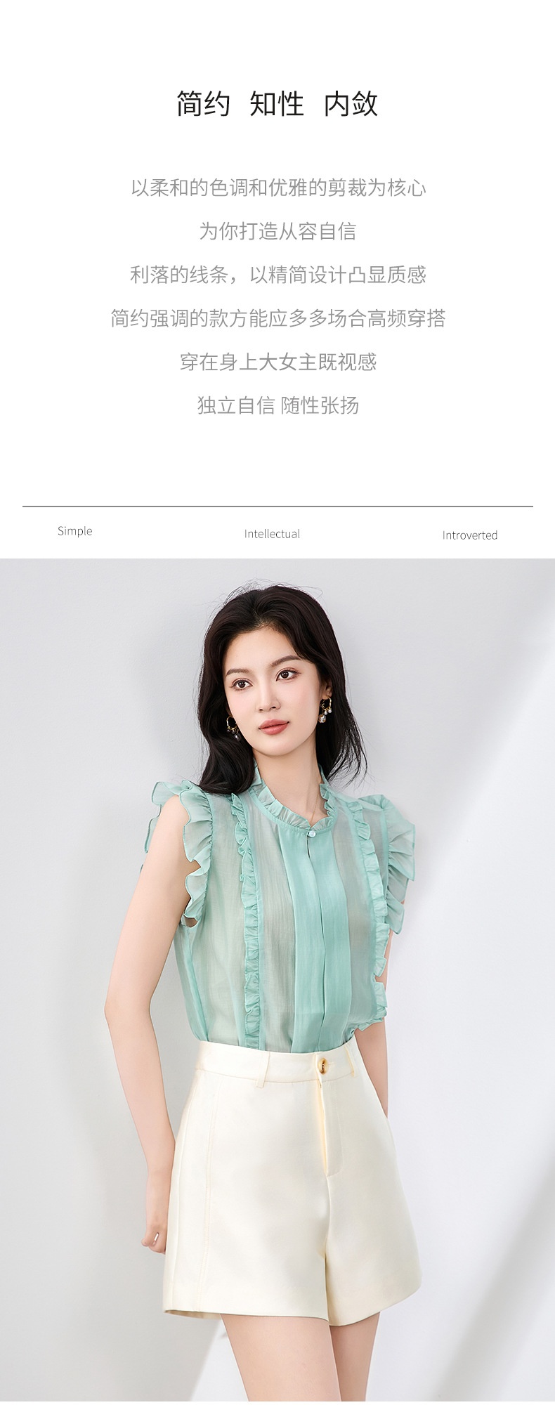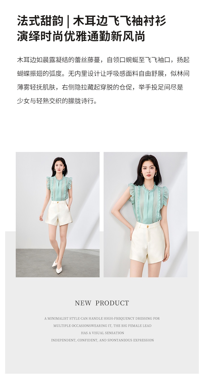 「高货wl」全新升级【铂金会员220/天猫299/差价79】(04855)洛诗琳法式减龄木耳花边衬衫2025夏季气质天丝混纺上衣女