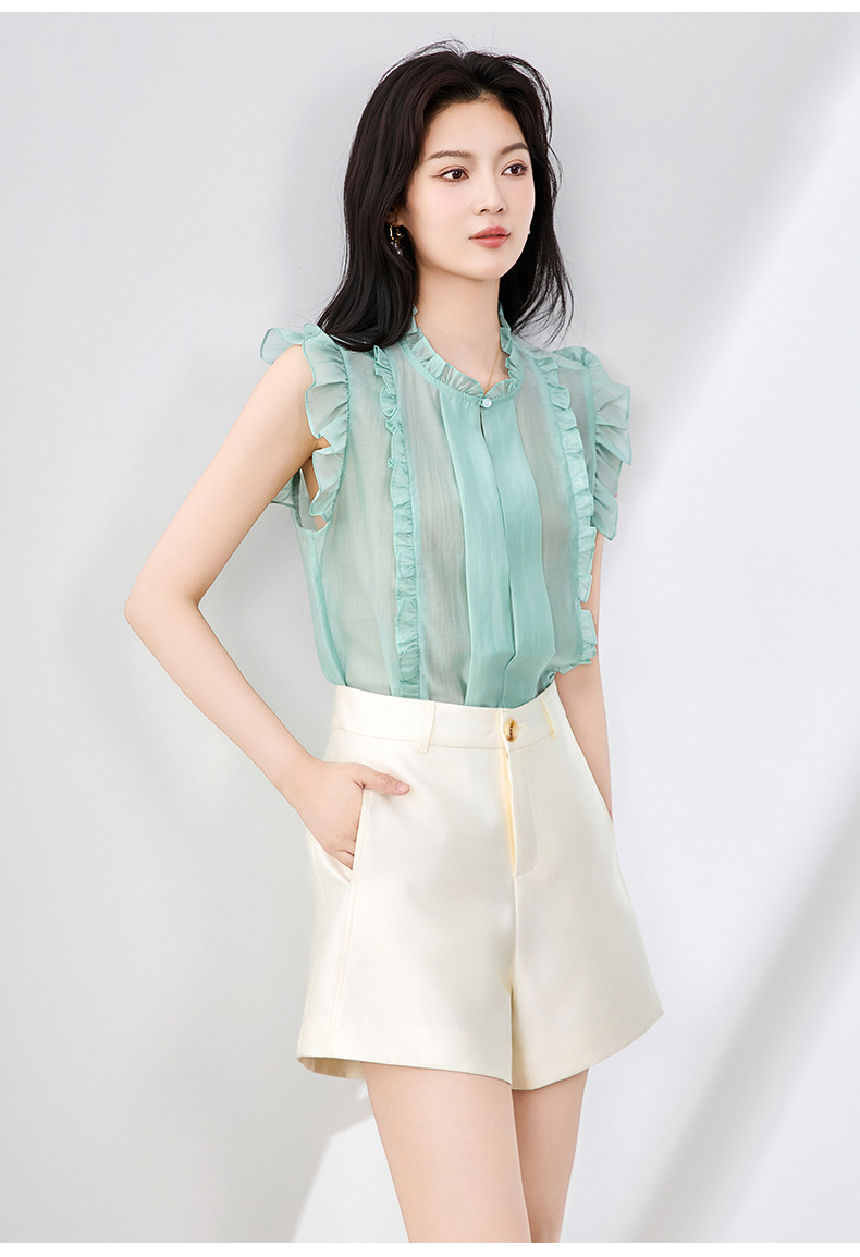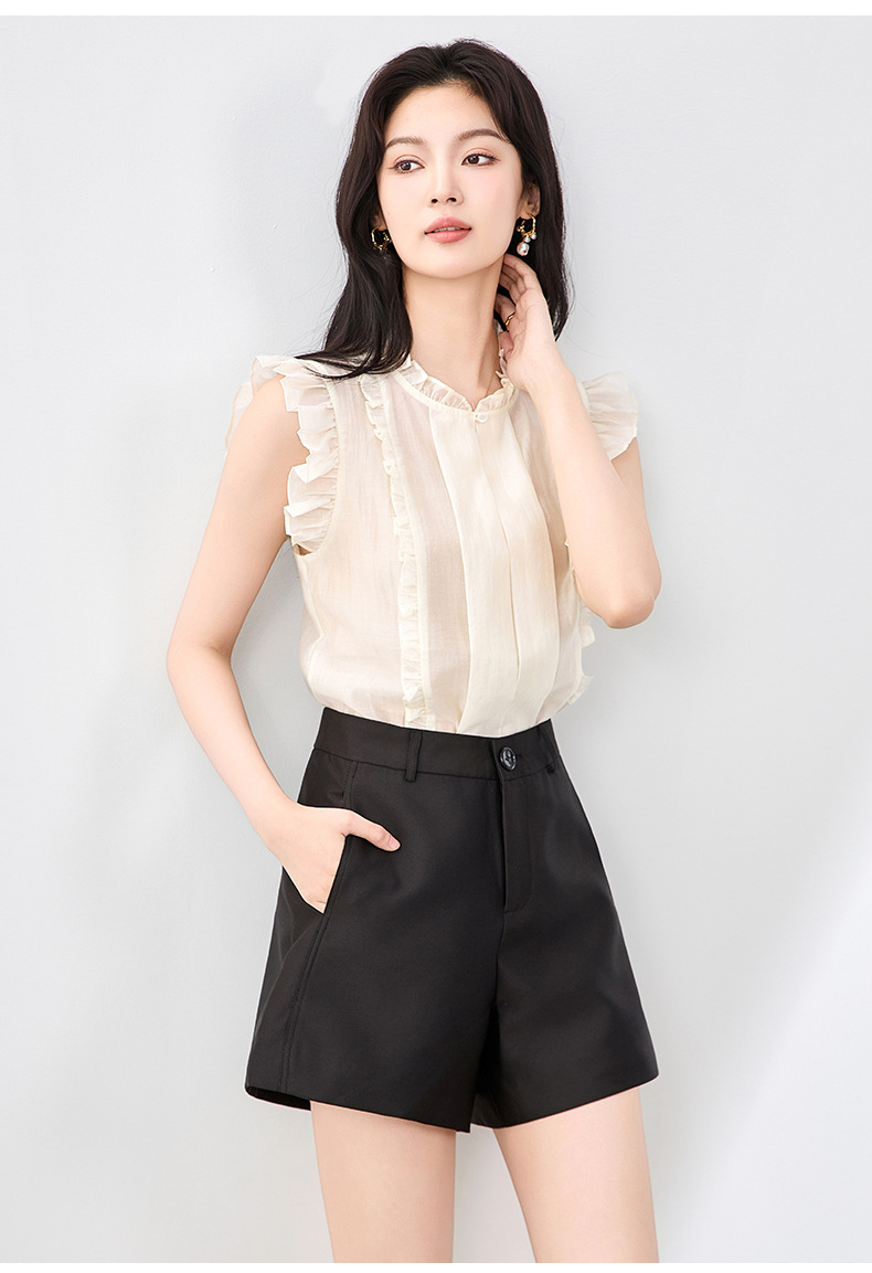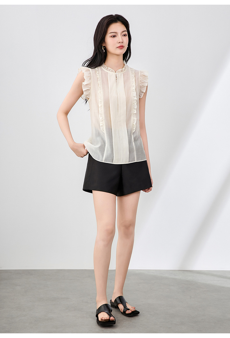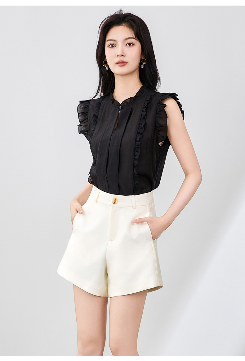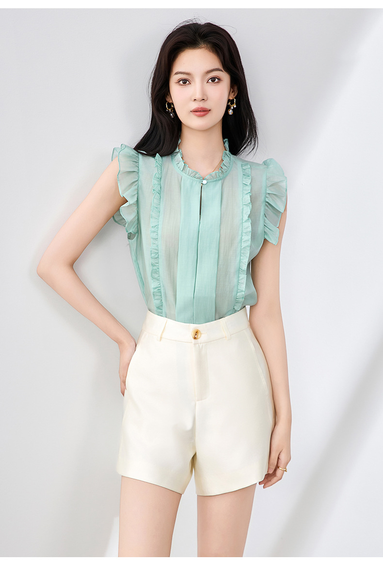 「高货wl」全新升级【铂金会员220/天猫299/差价79】(04855)洛诗琳法式减龄木耳花边衬衫2025夏季气质天丝混纺上衣女