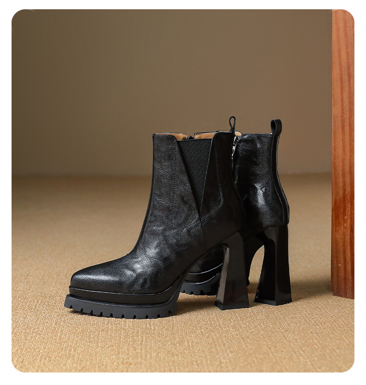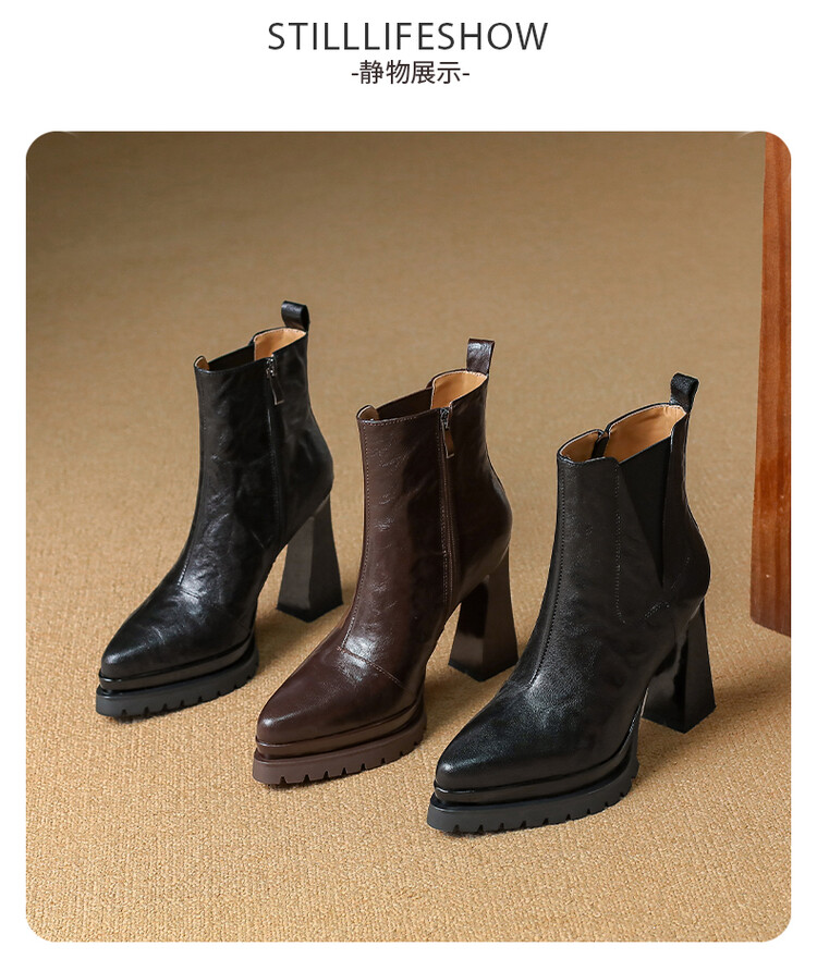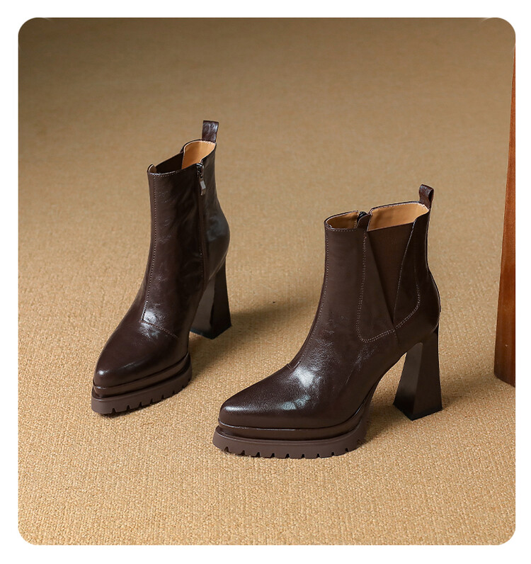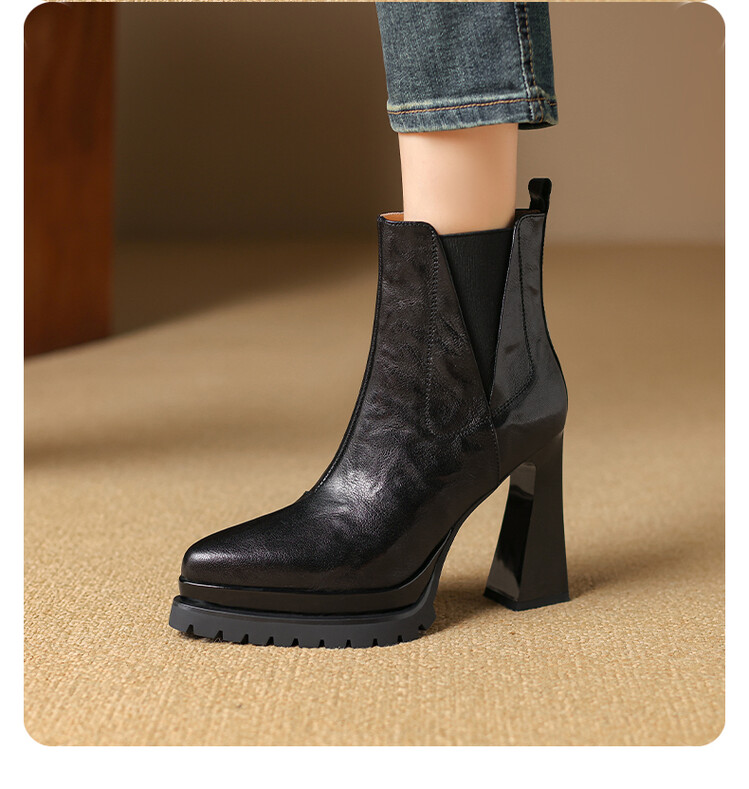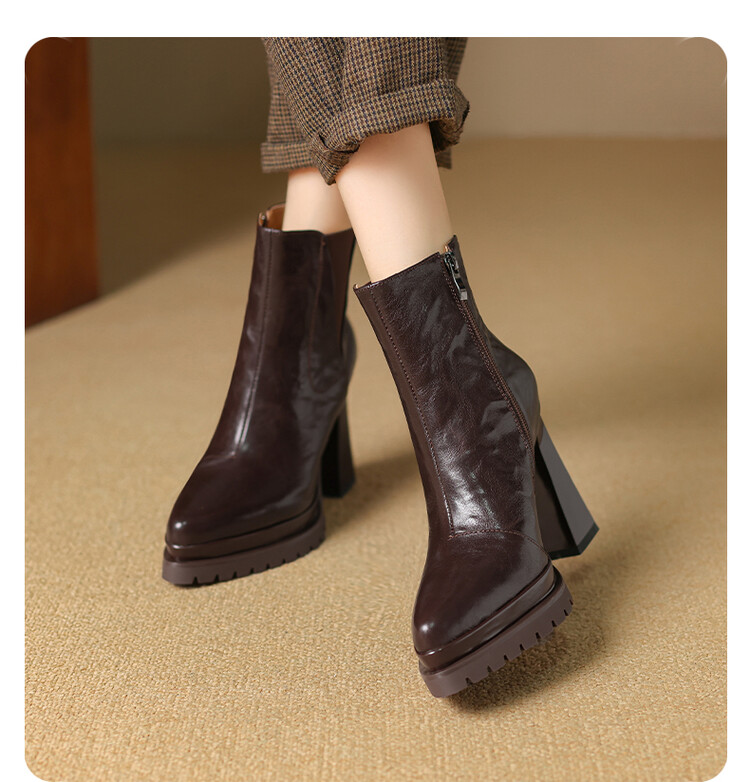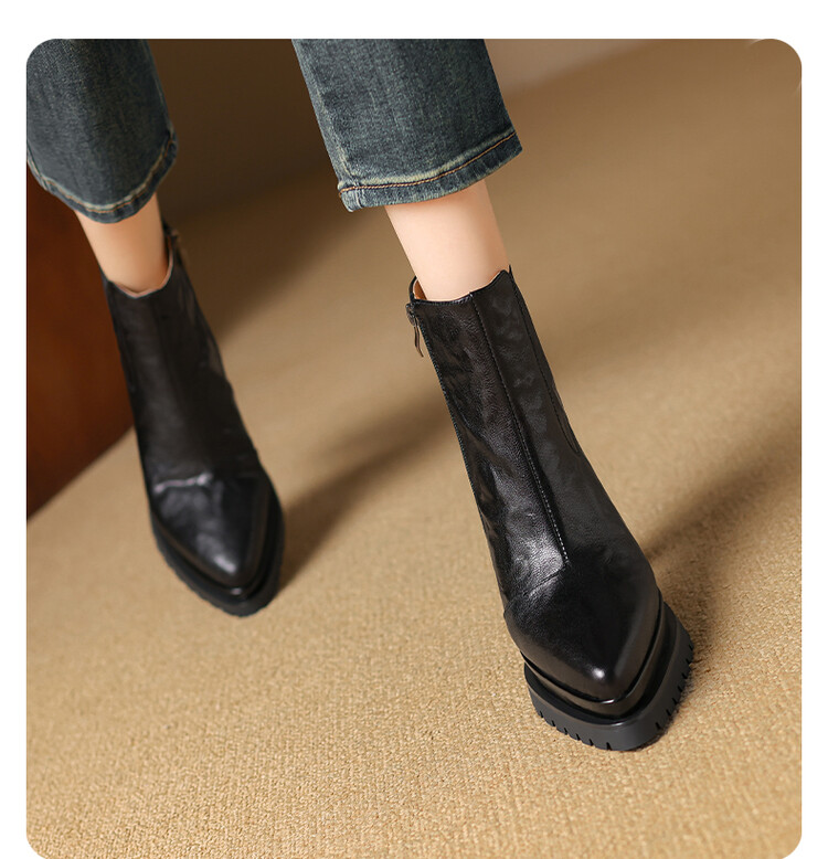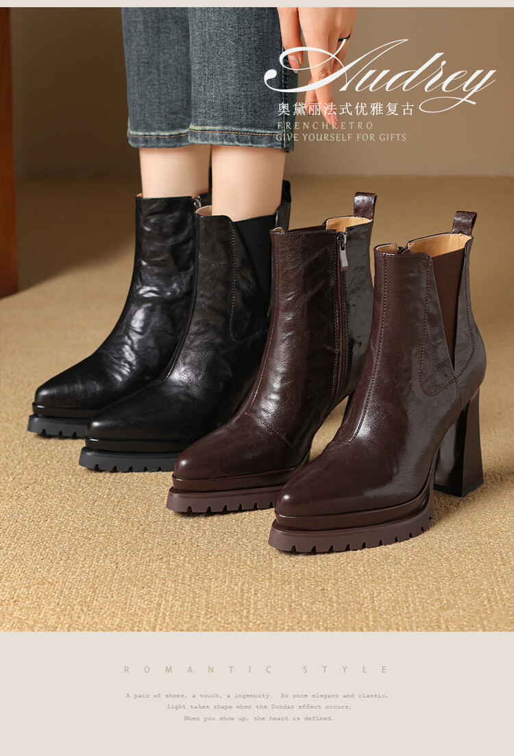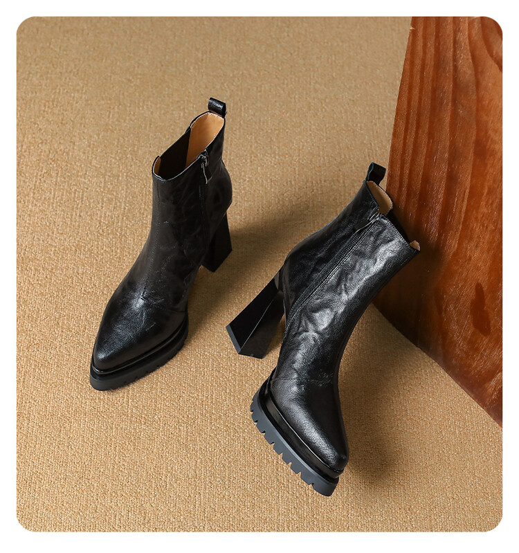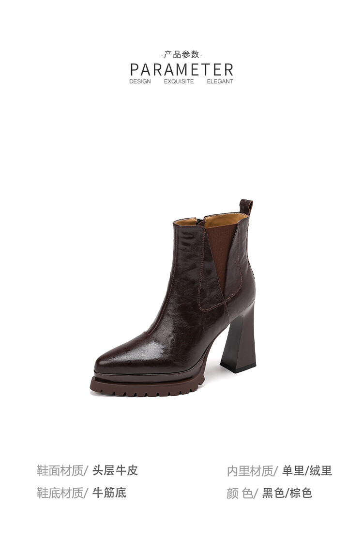【预售5天】欧美风防水台外贸靴秋冬新款优雅尖头侧拉链气质粗高跟时装短靴H15027-60