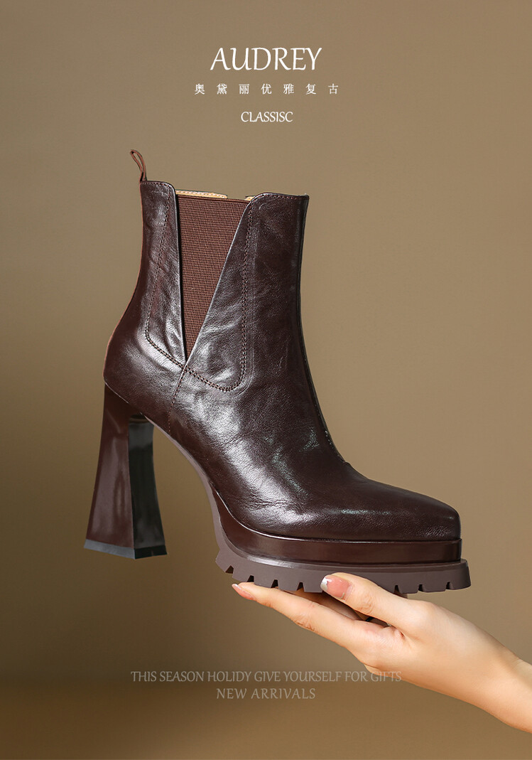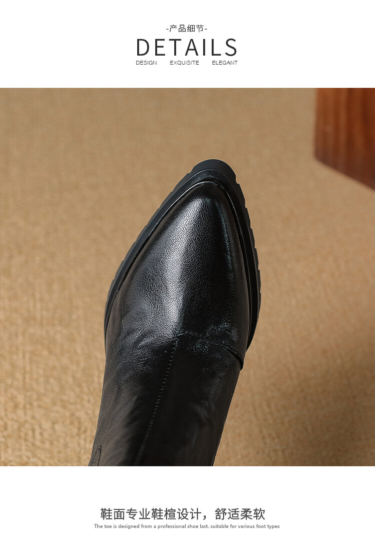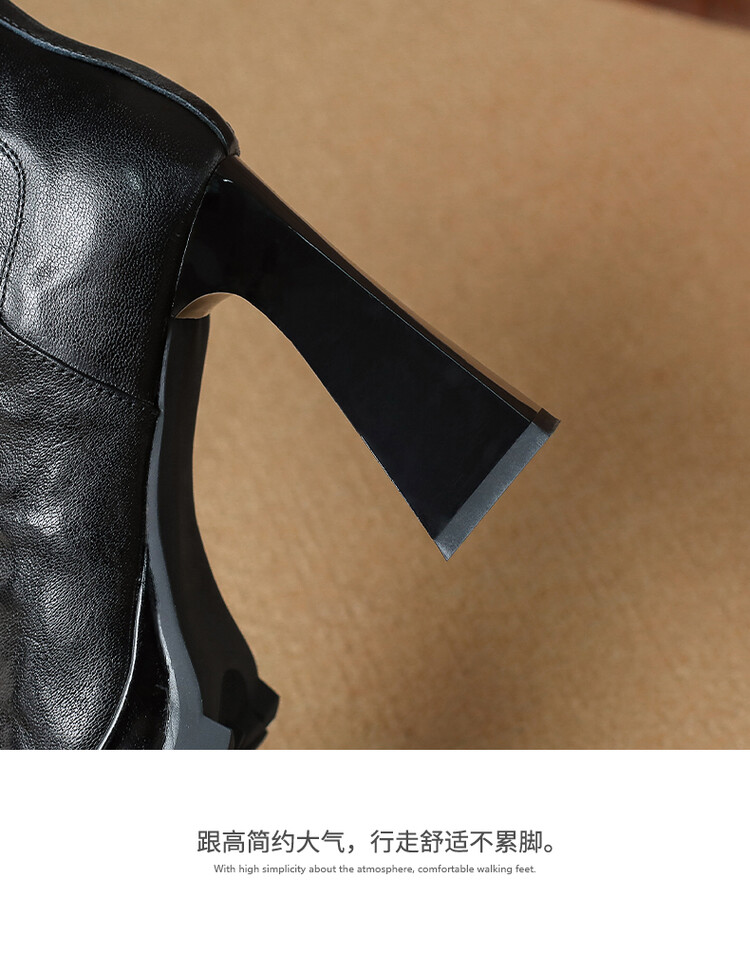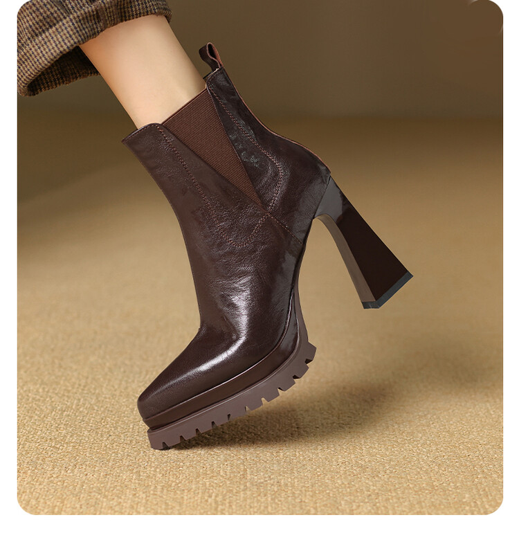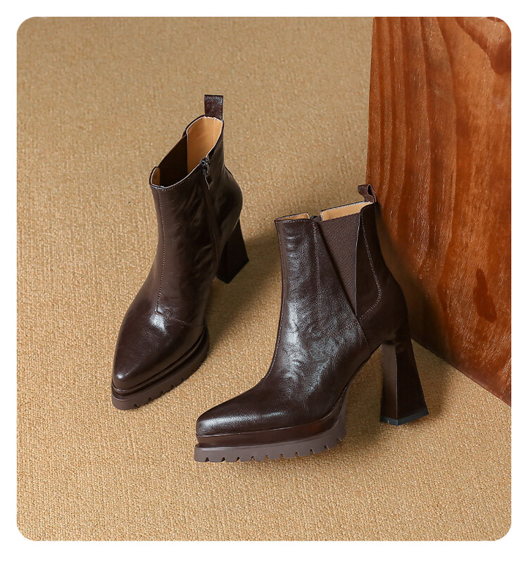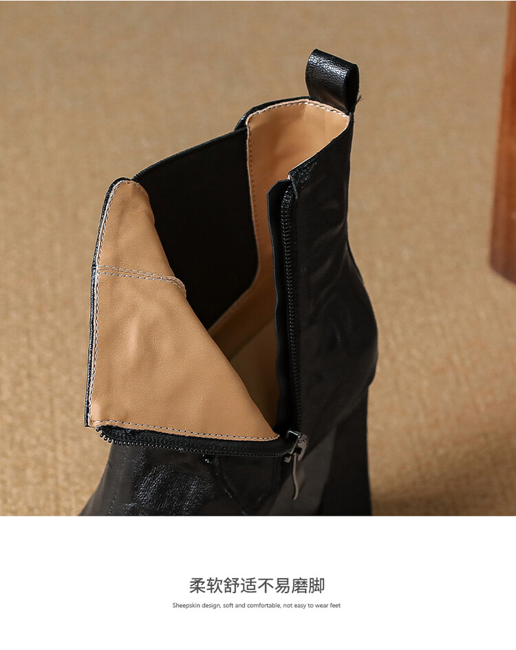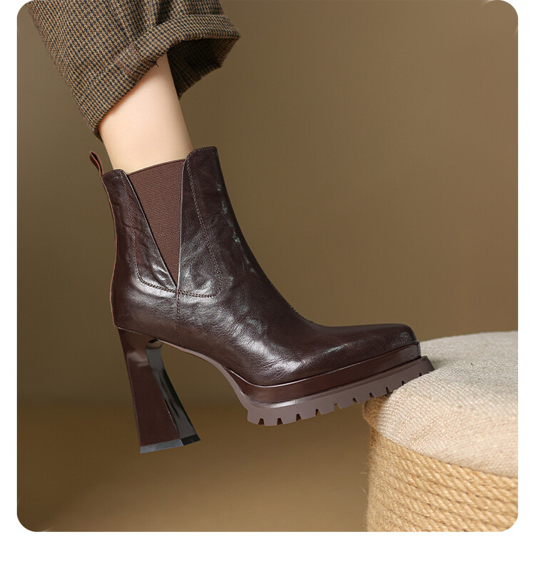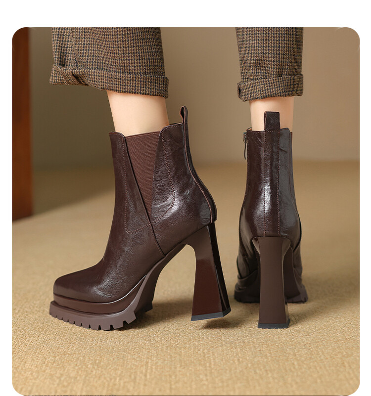 【预售5天】欧美风防水台外贸靴秋冬新款优雅尖头侧拉链气质粗高跟时装短靴H15027-60
