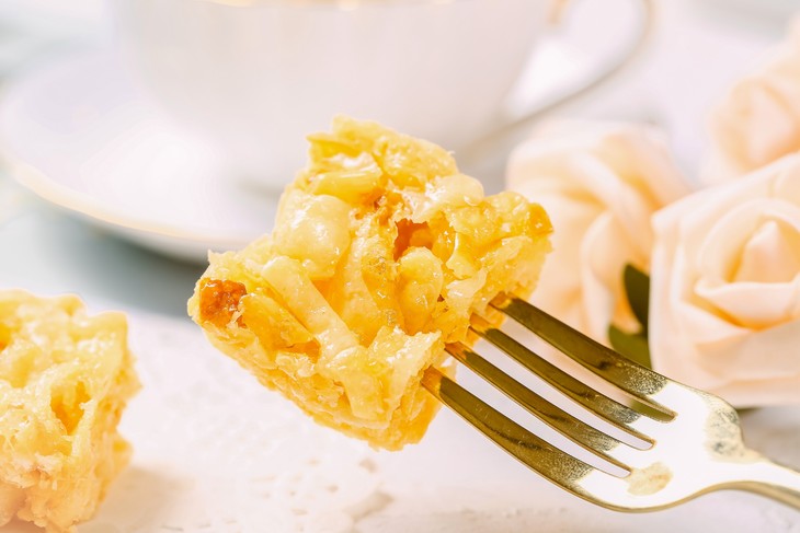 切片压制烘焙成乳扇沙琪玛