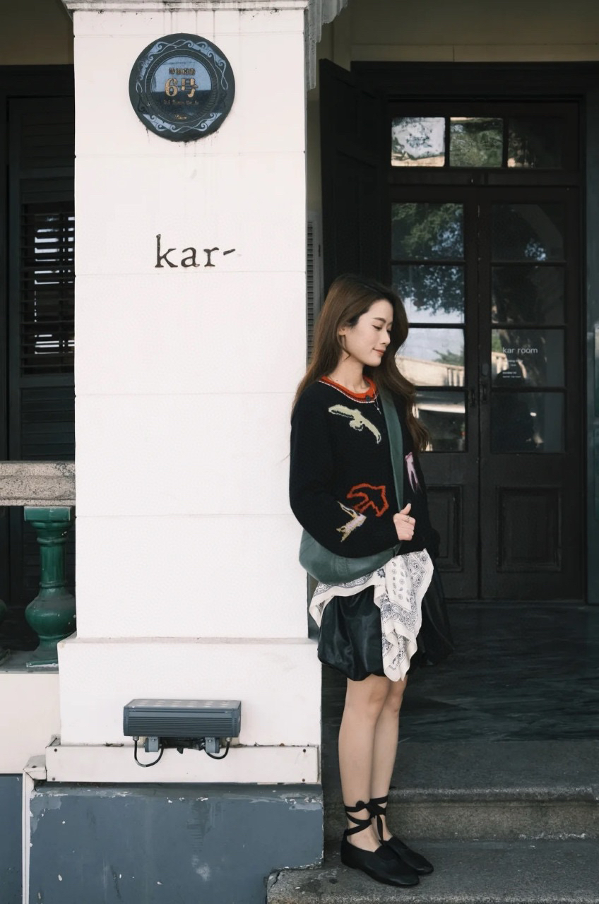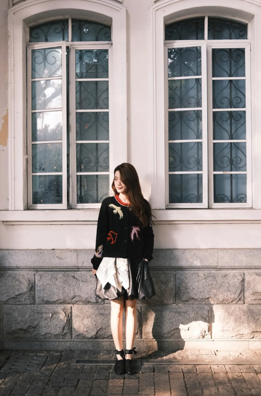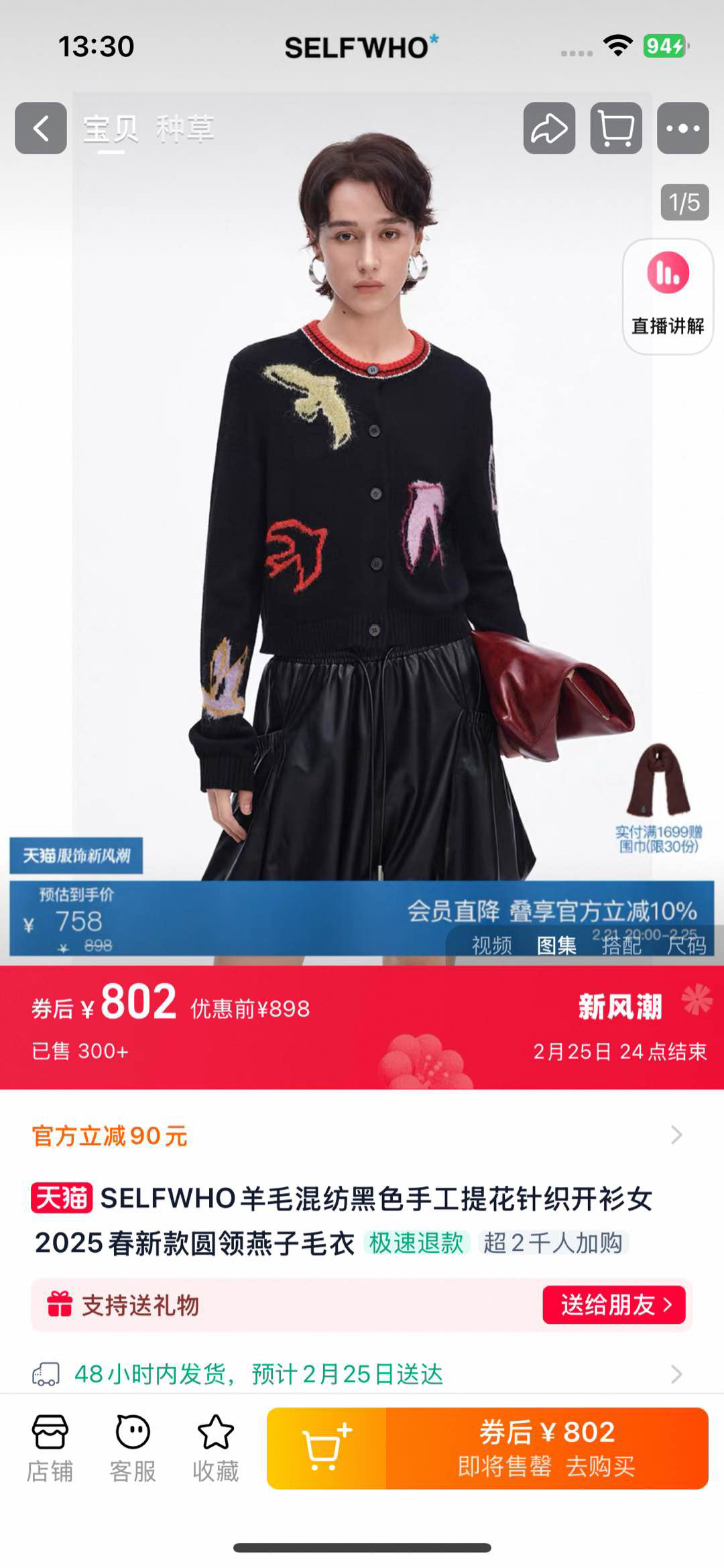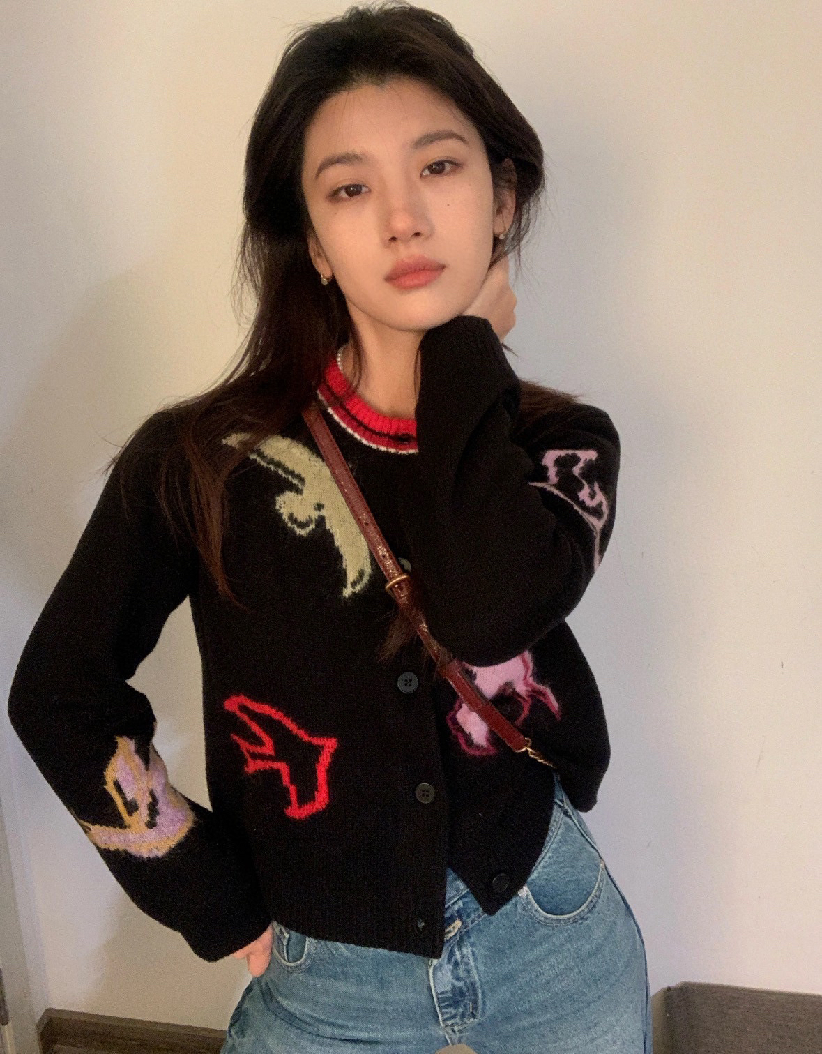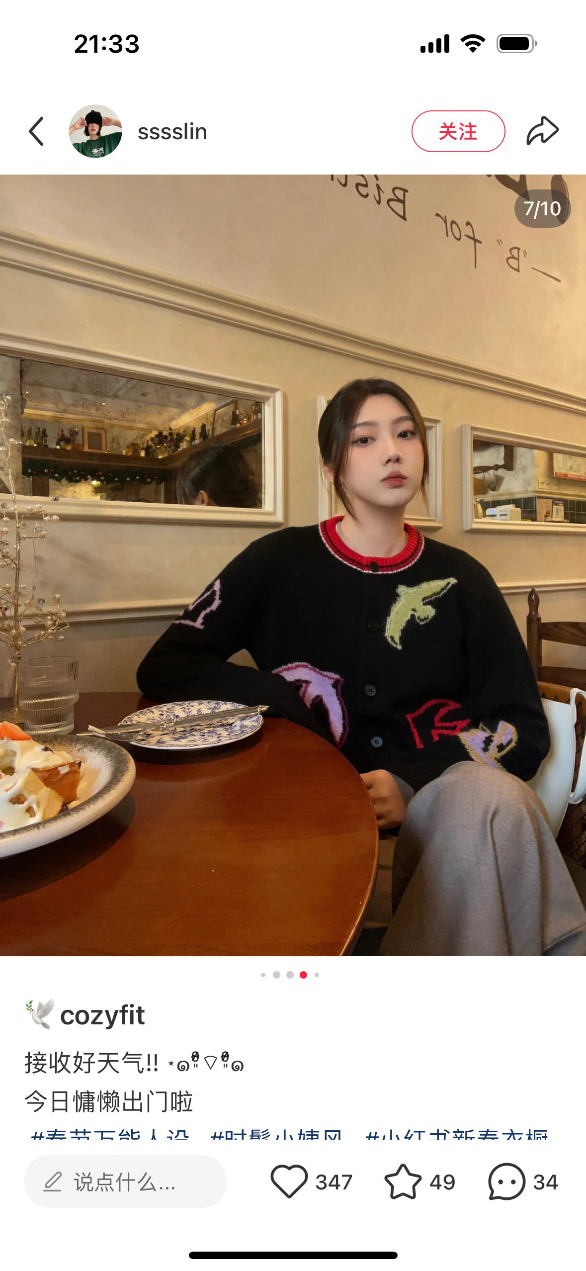 猫店折后售价802软币💰网红都在穿,彩色燕子提花上衣超绝!主色调是黑色,显瘦效果极佳,能巧妙修饰身材线条,彩色的燕子提花活泼又高级,充满春日活力