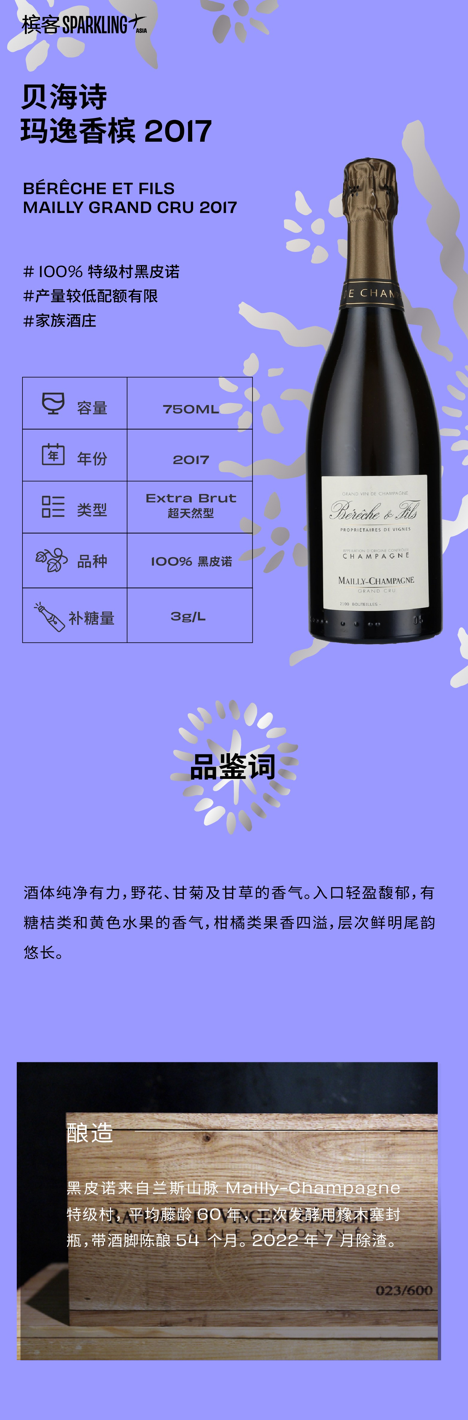 Bérêche et Fils Mailly Grand Cru Blanc de Noirs 2017 贝海诗玛逸香槟2017