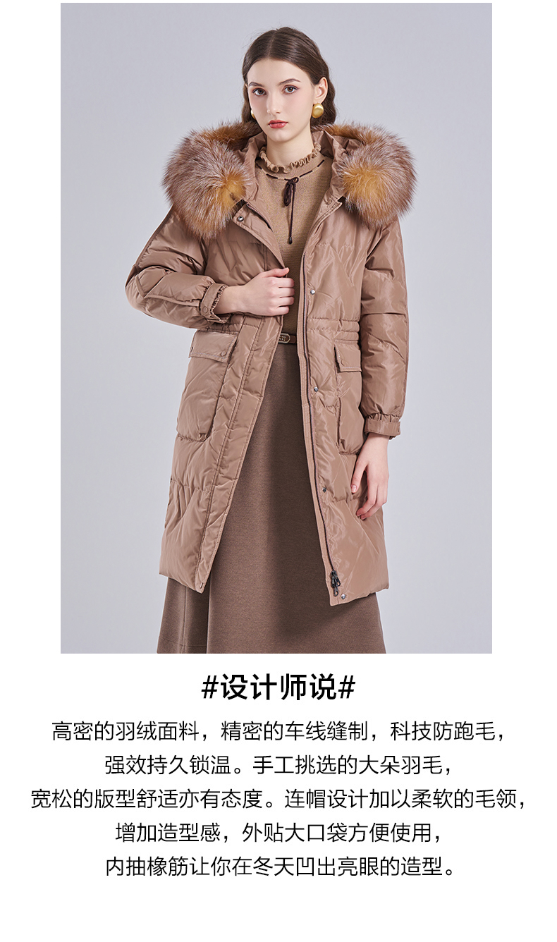 乔万尼白鸭绒羽绒服保暖加厚中长款EF4T190