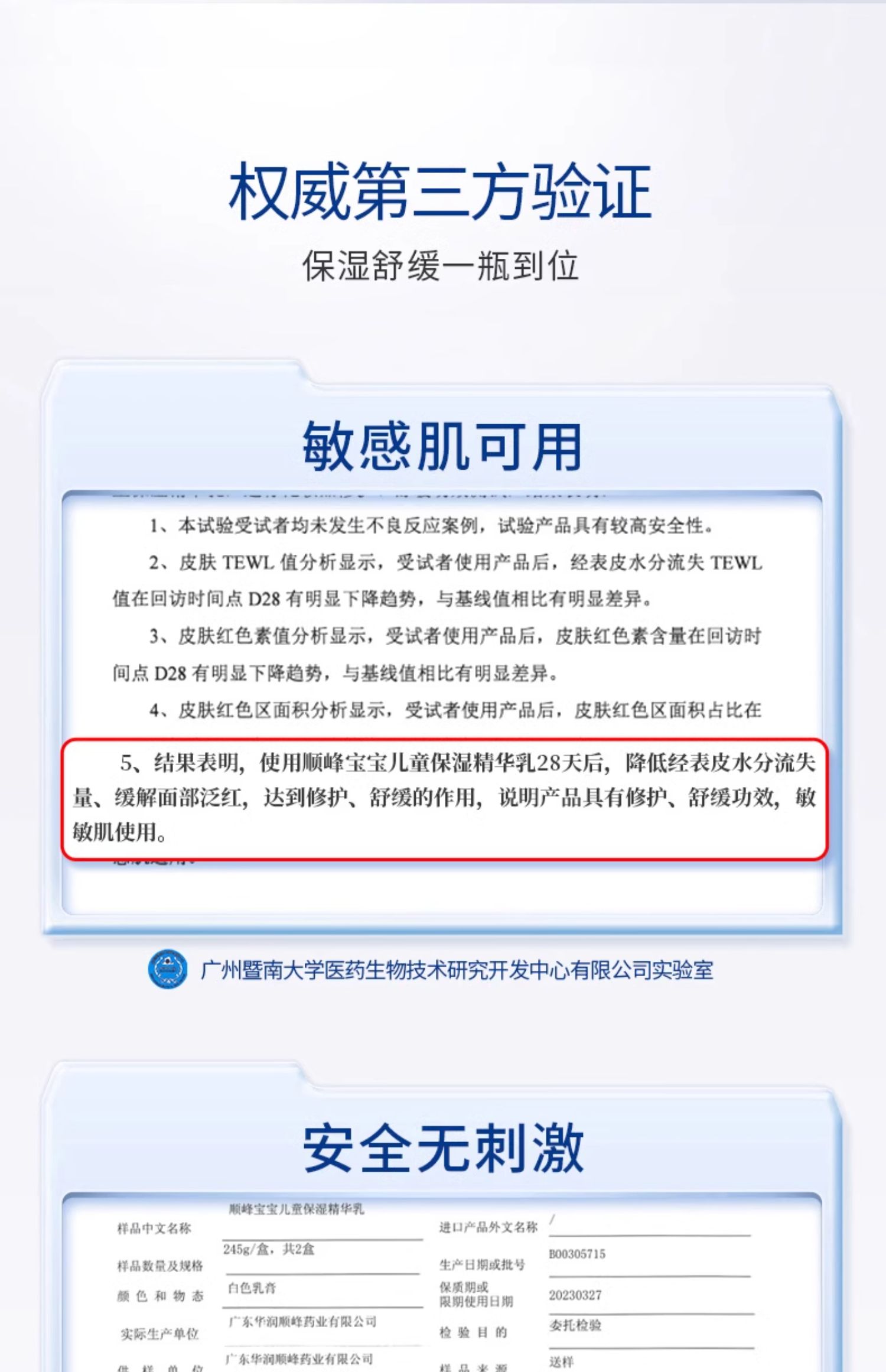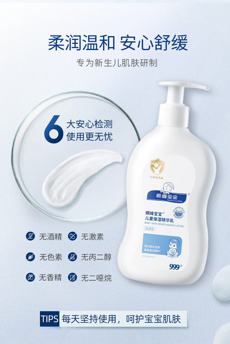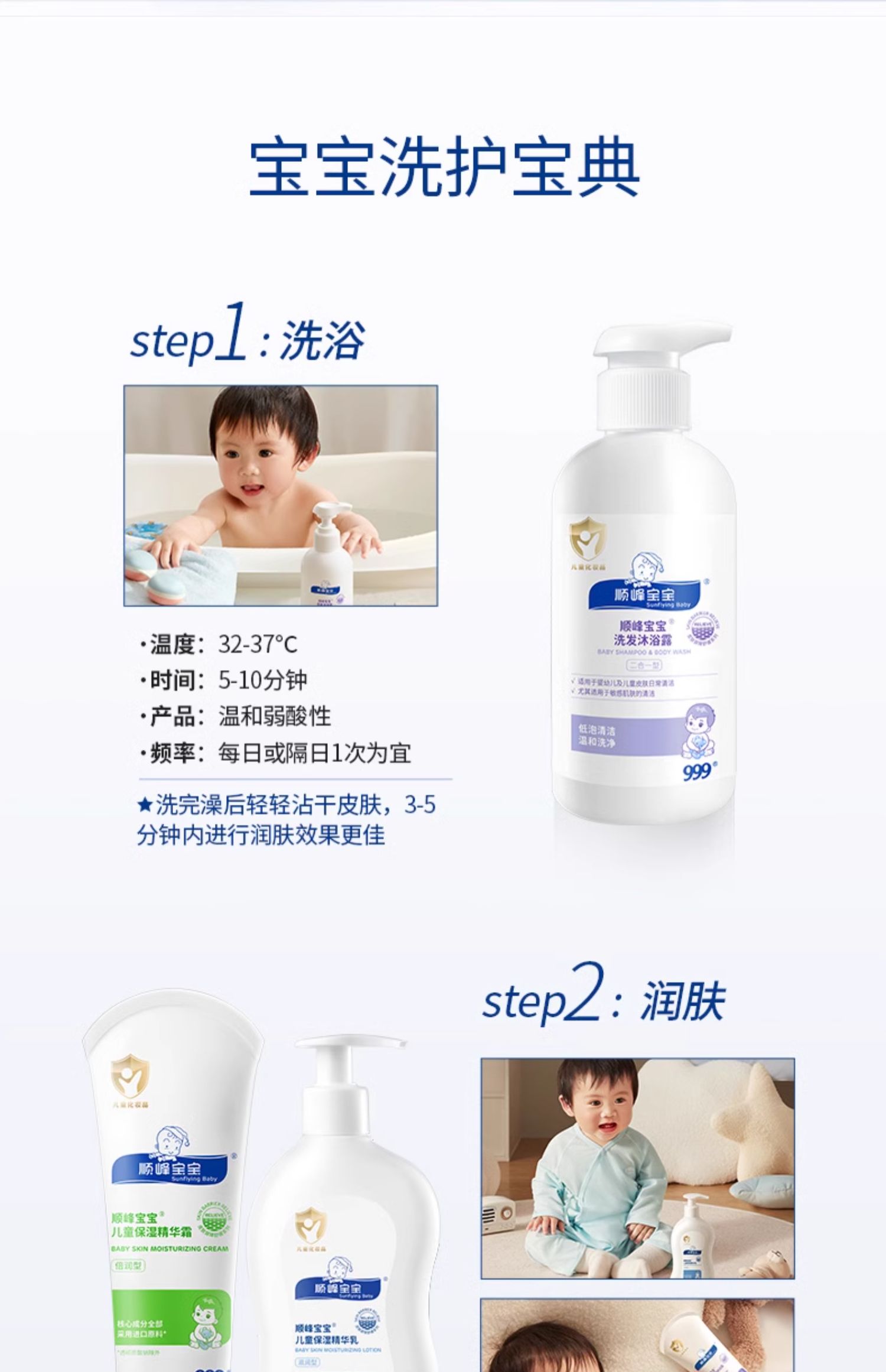 【集合链接】顺峰宝宝儿童保湿精华霜225g婴幼儿滋润补水面霜身体乳舒缓湿痒红 倍润呵护顺峰宝宝身体乳245g 顺峰宝宝沐浴露300ml
