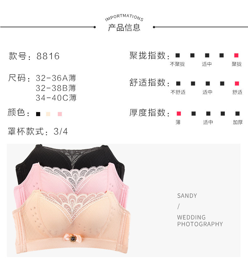 KXFZ新款舒适无钢圈透气薄款防走光聚拢抹胸内衣