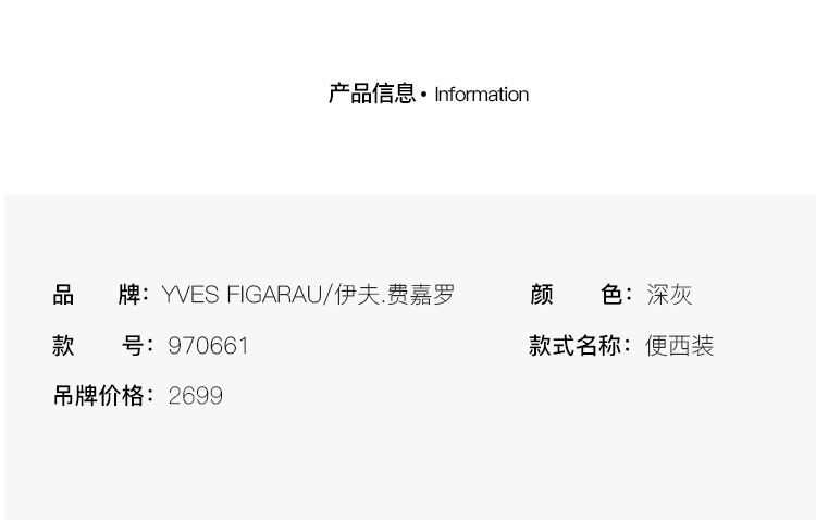 YvesFigarau伊夫·费嘉罗新款便西装970661