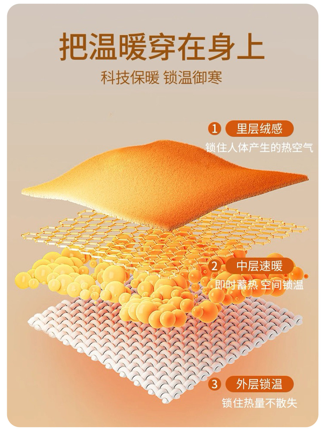 2. 100%绵羊毛夹层!自发热+巨锁温≈行走暖宝宝