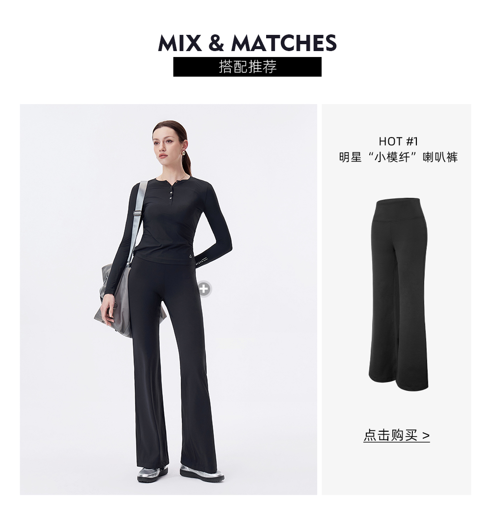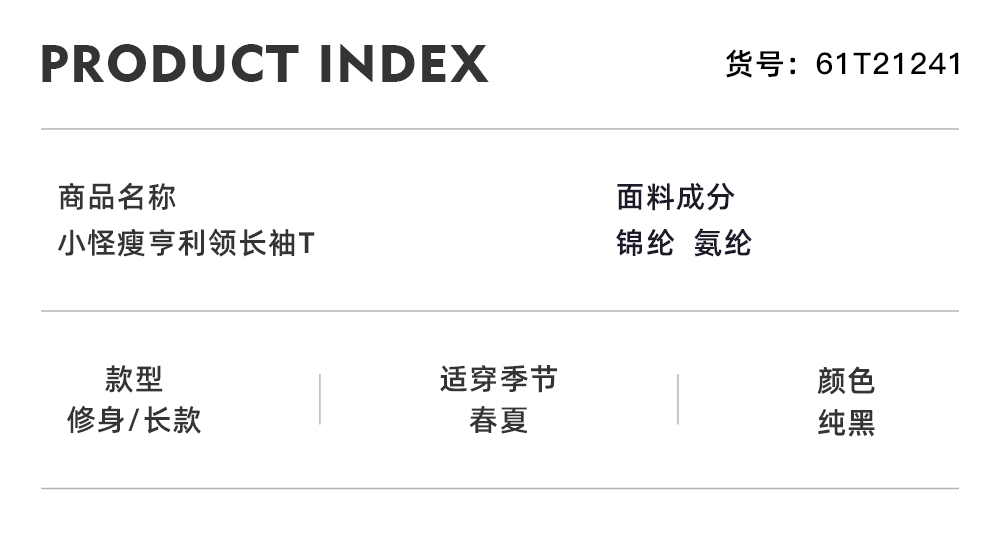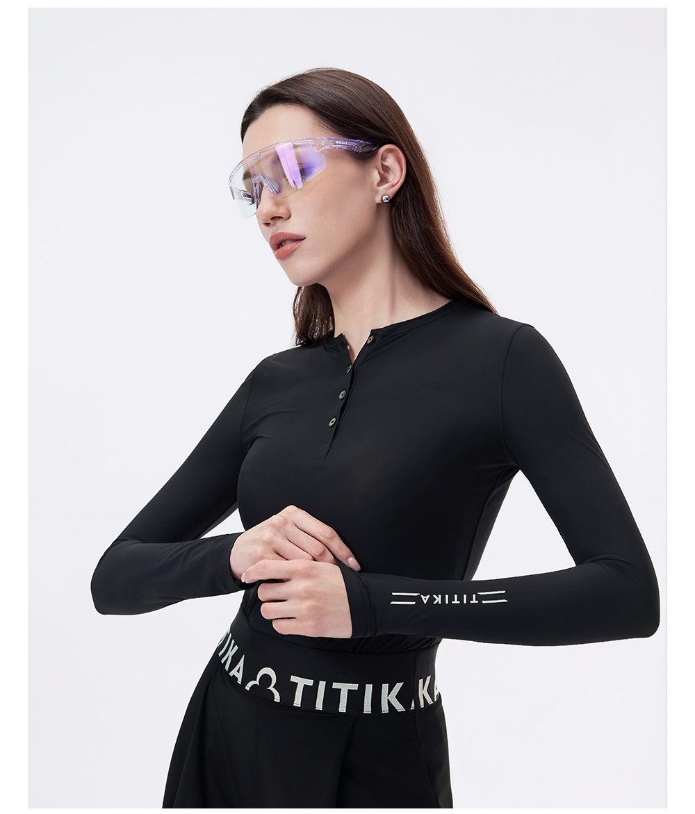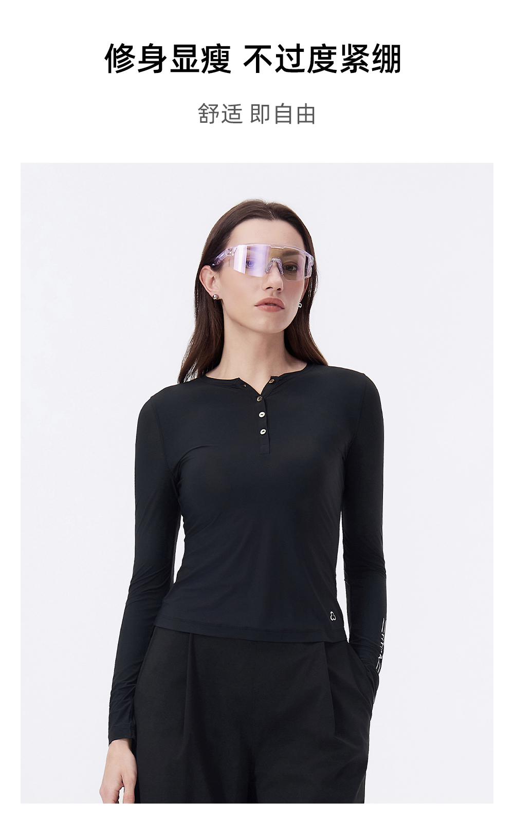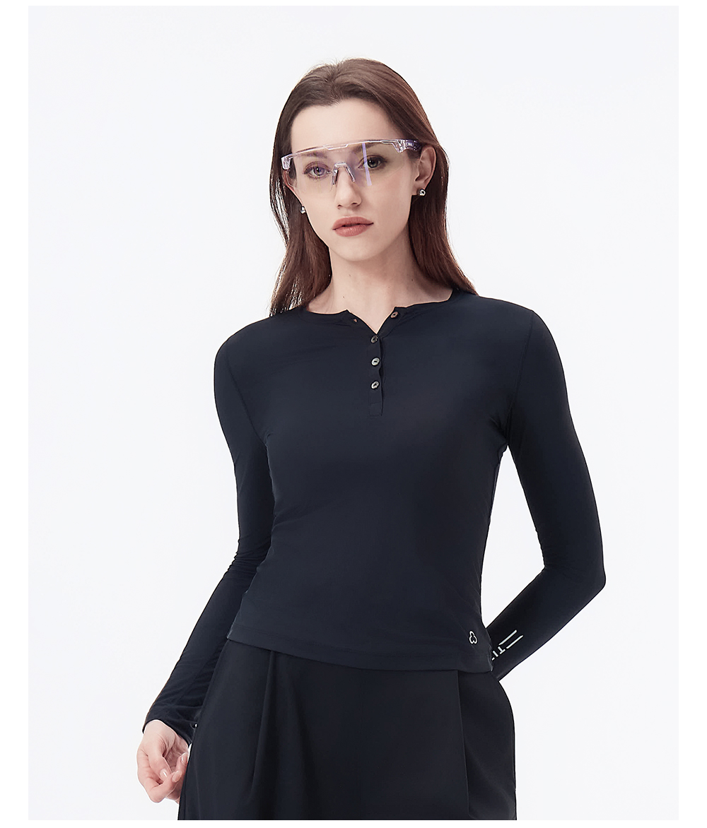 TITIKA小怪瘦亨利领长袖T恤女春秋修身长款运动休闲跑步上衣61T21241
