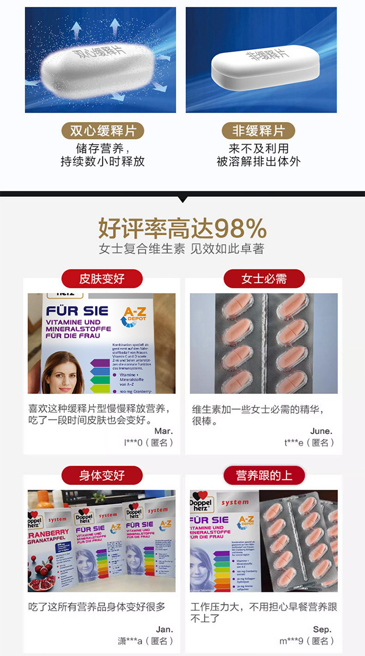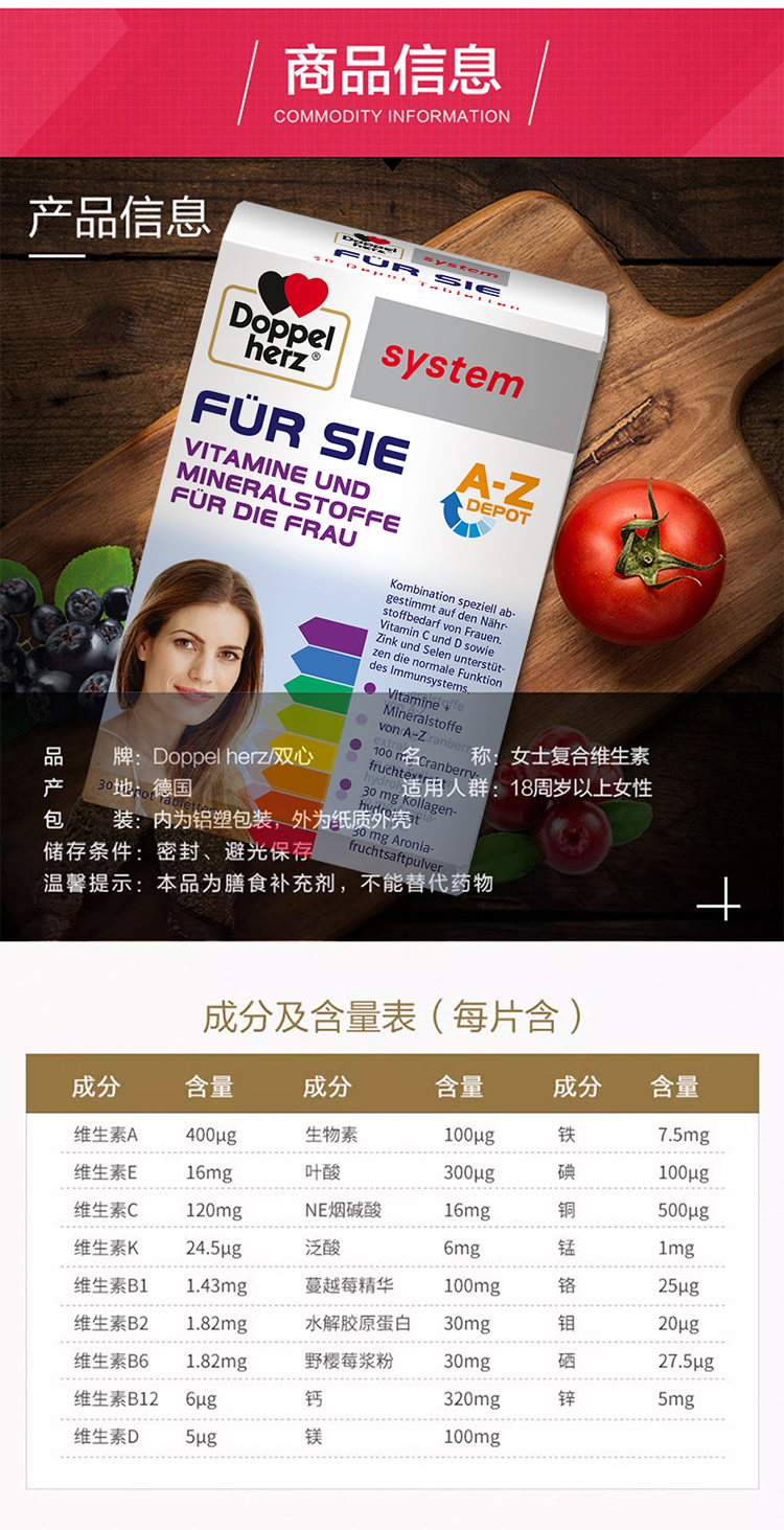 【保税直邮 杭州金义】【德国双心】进口女士复合维生素女性多维矿物质缓释综合营养