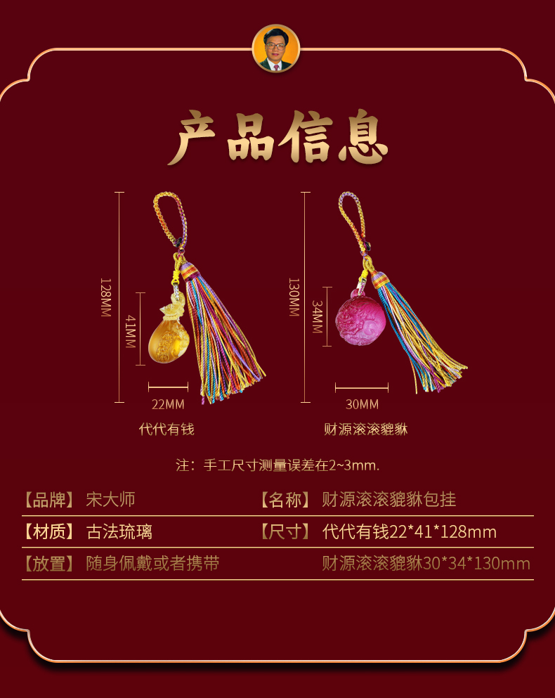 宋韶光大师 财源滚滚貔貅 钱袋貔貅 古法琉璃幸运包挂