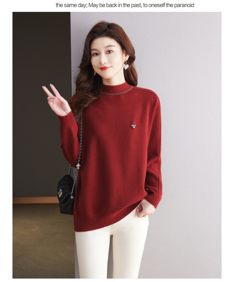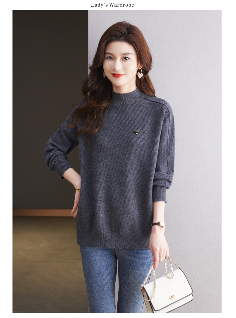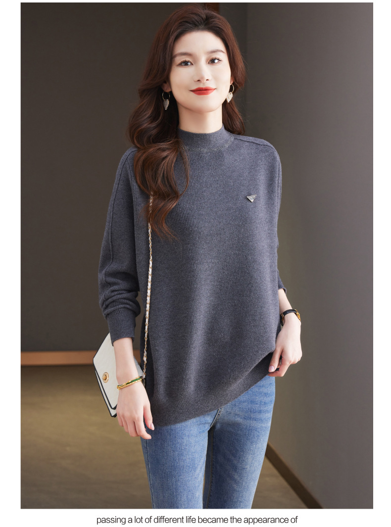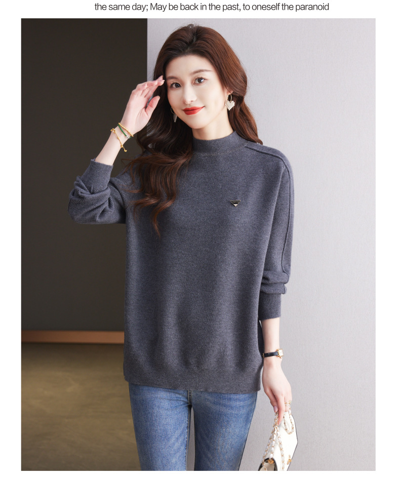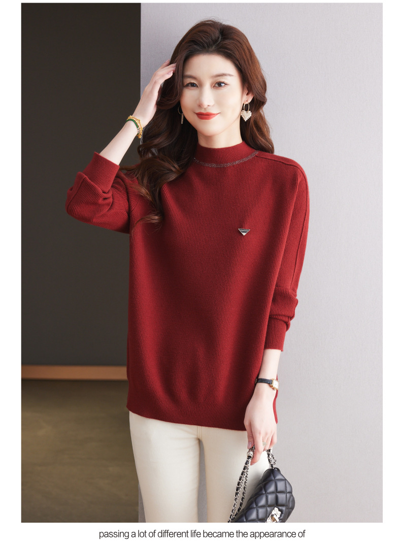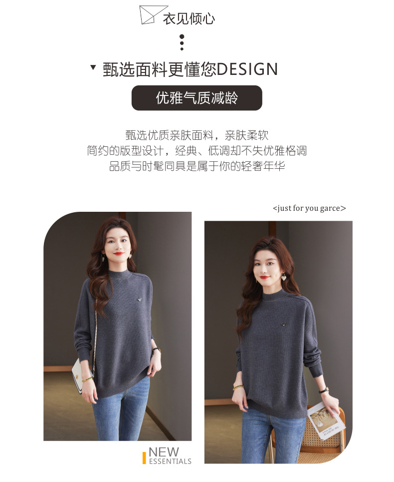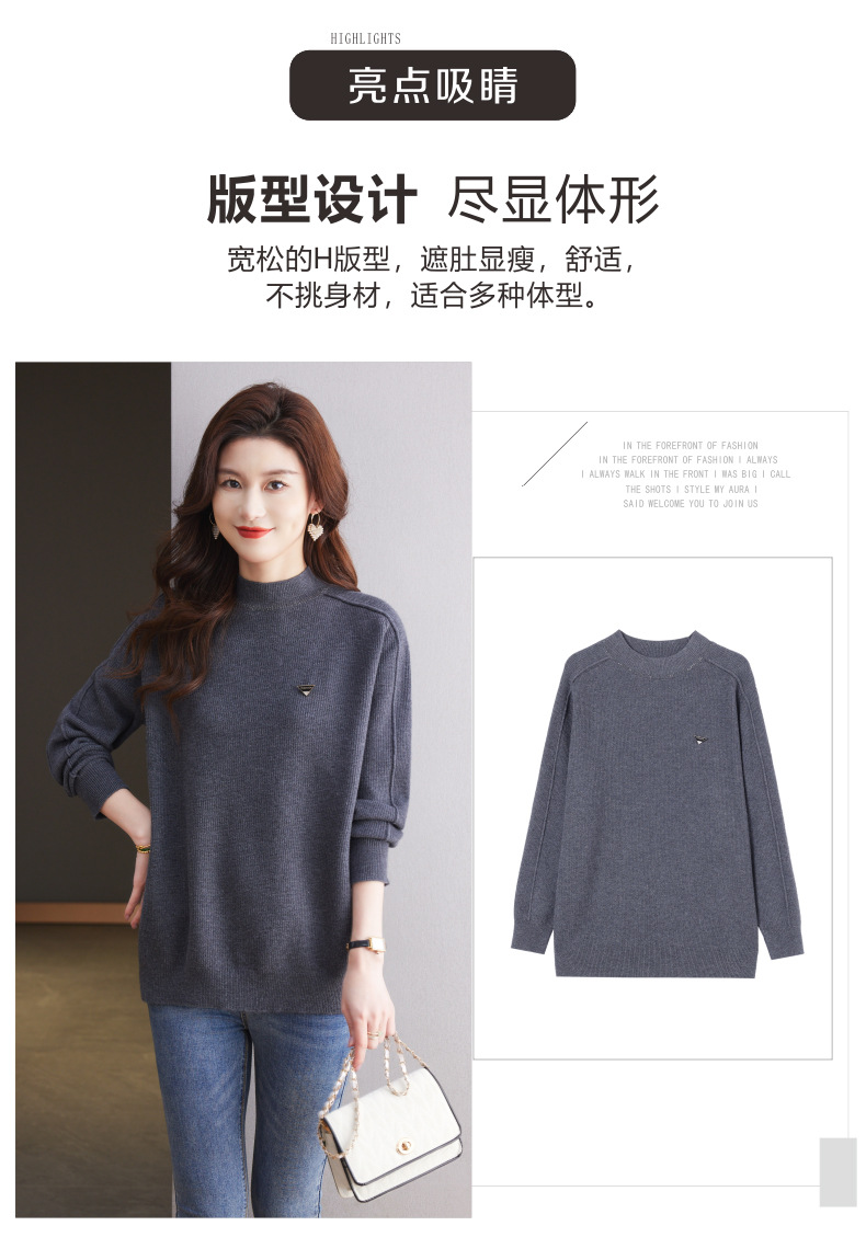 CC-15-2293配大衣的半高领毛衣女中长款秋冬2024新款内搭中款针织打底衫洋气