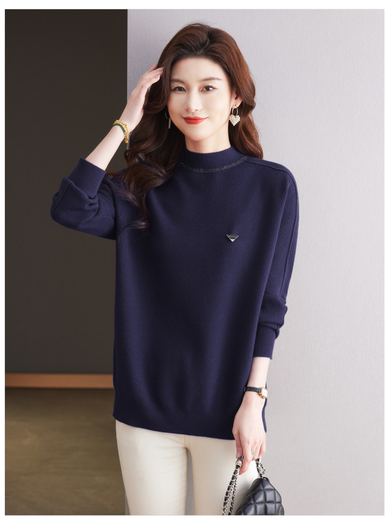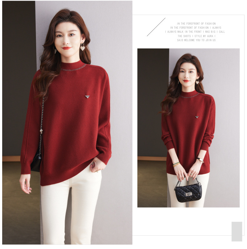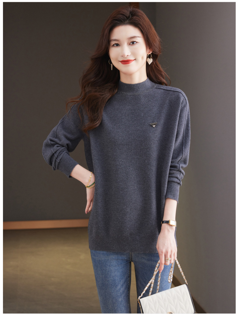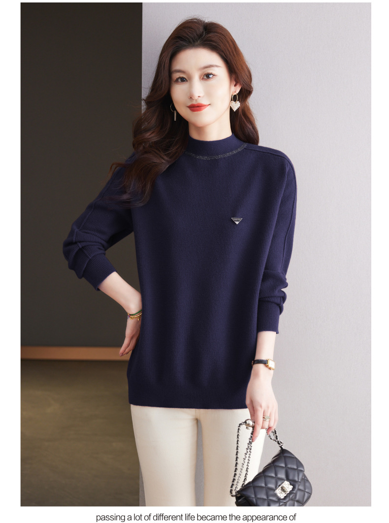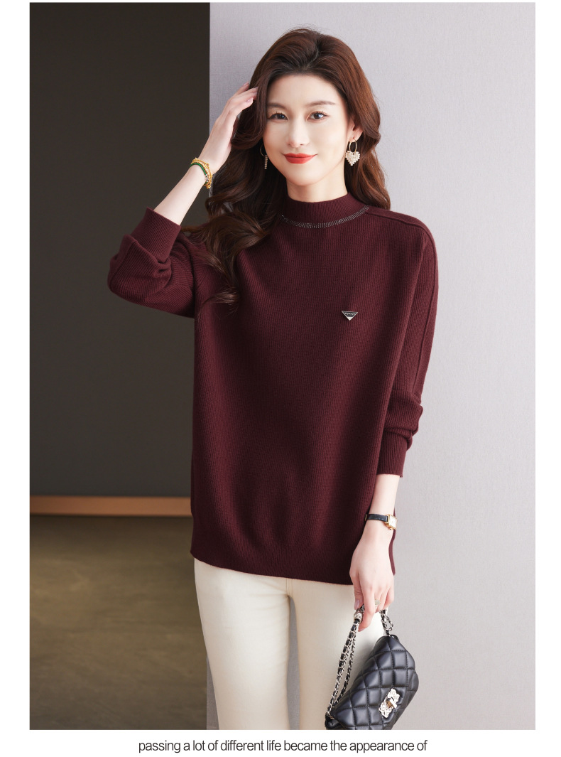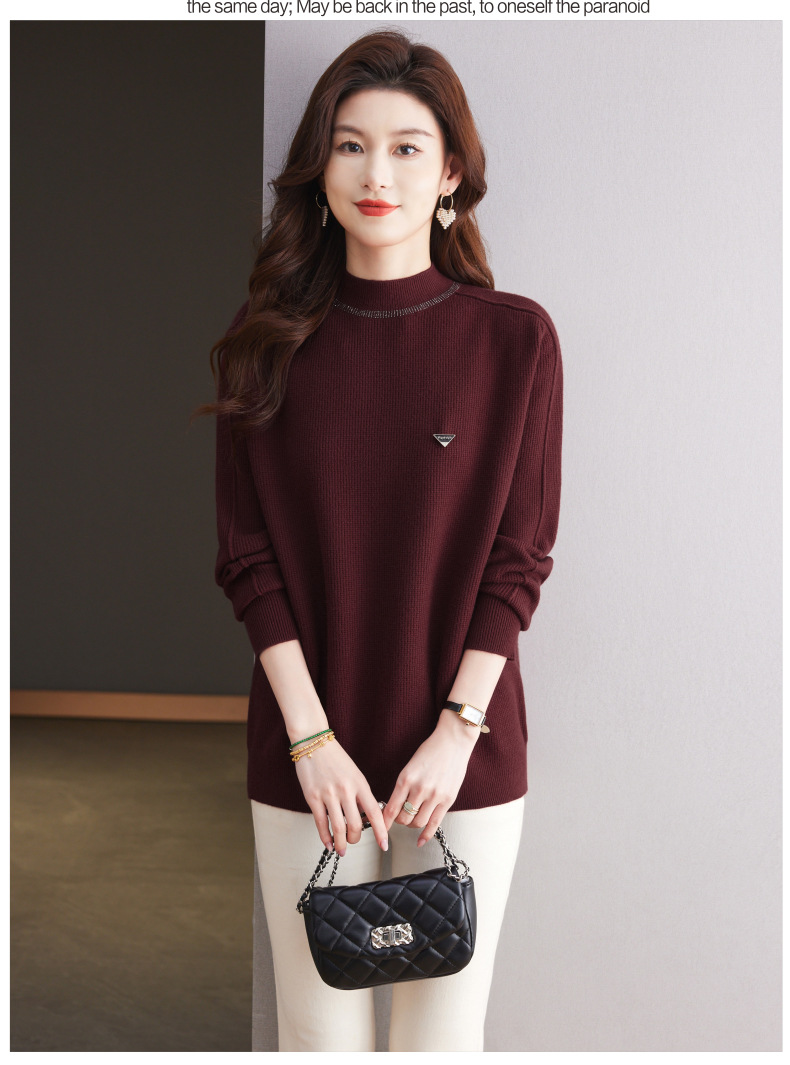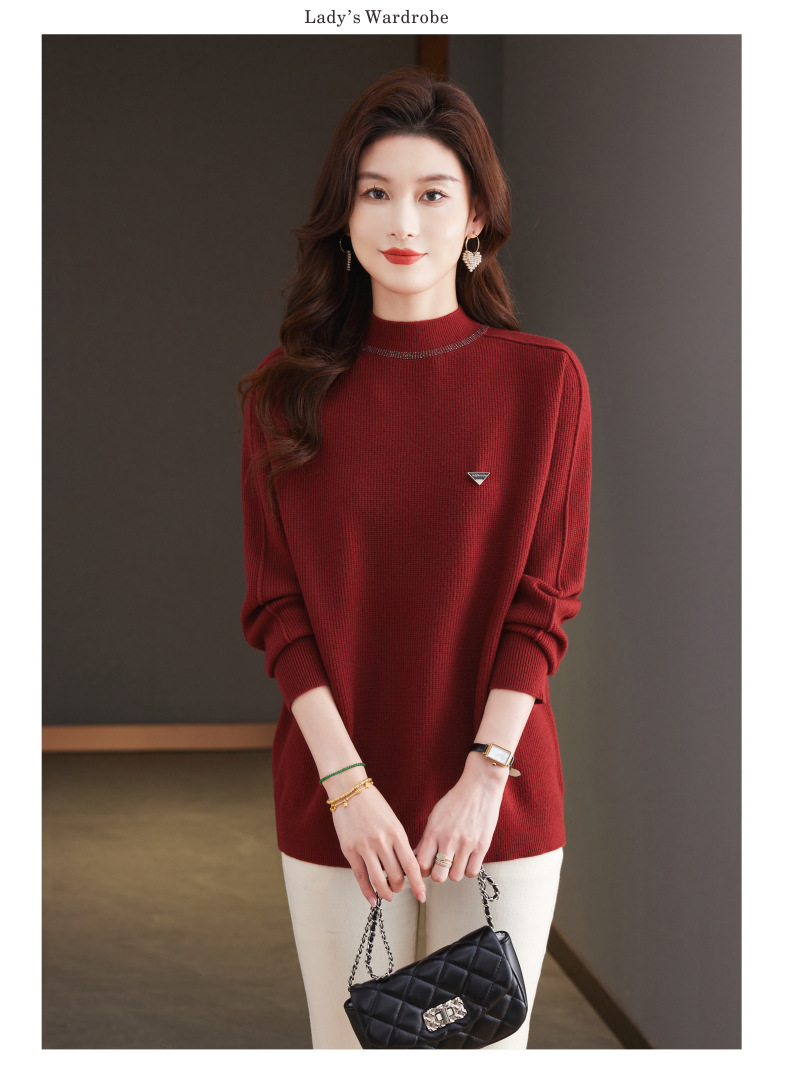 CC-15-2293配大衣的半高领毛衣女中长款秋冬2024新款内搭中款针织打底衫洋气