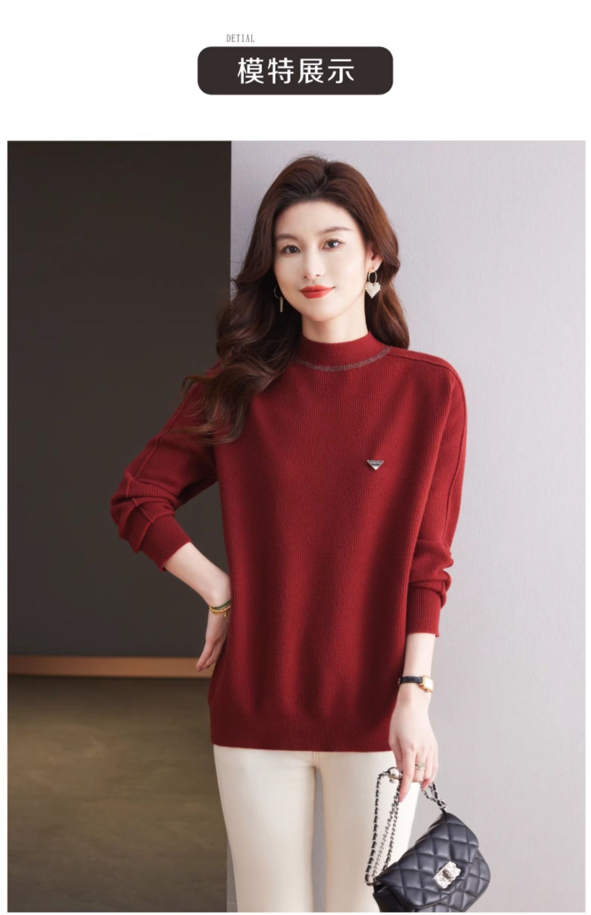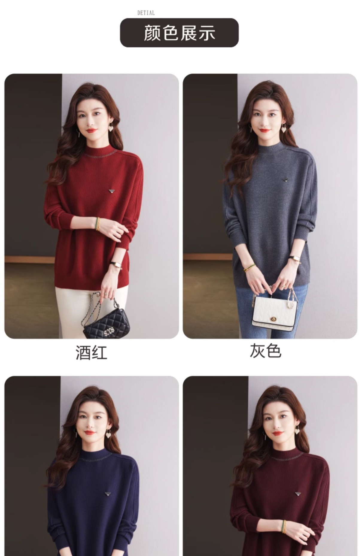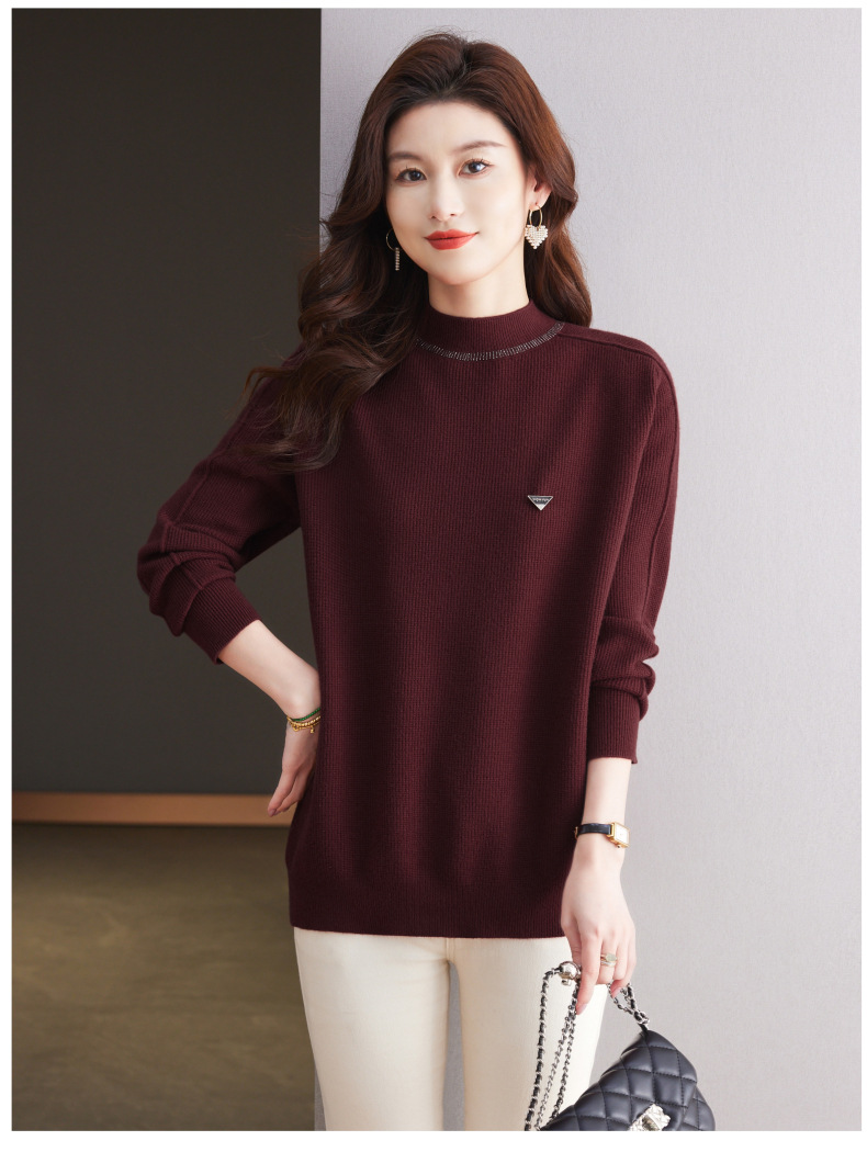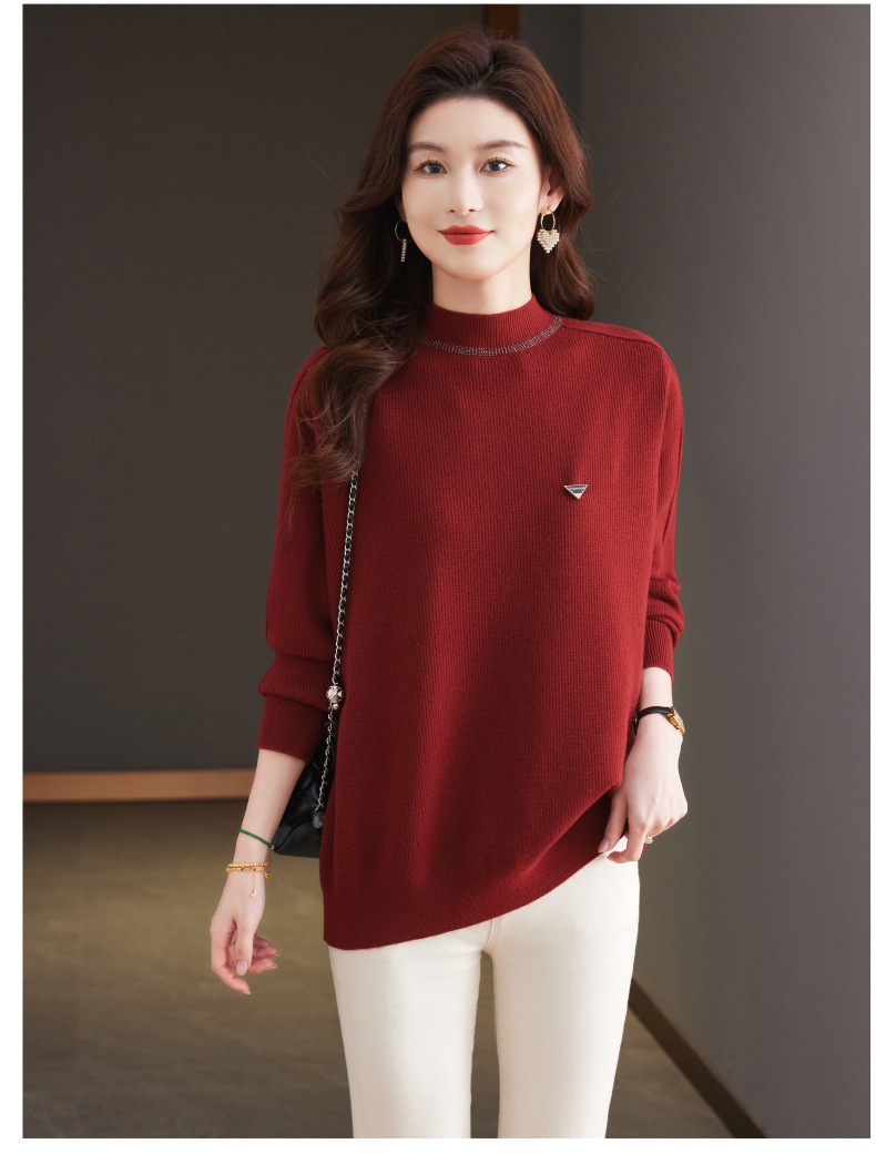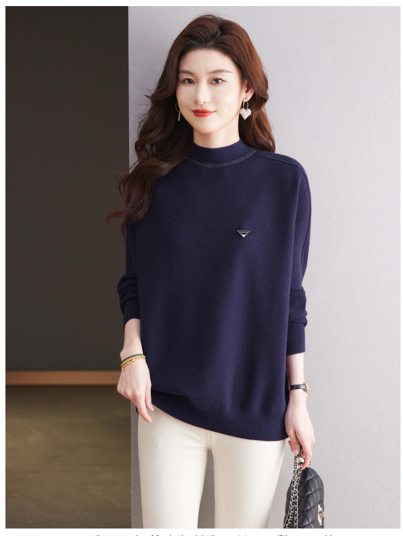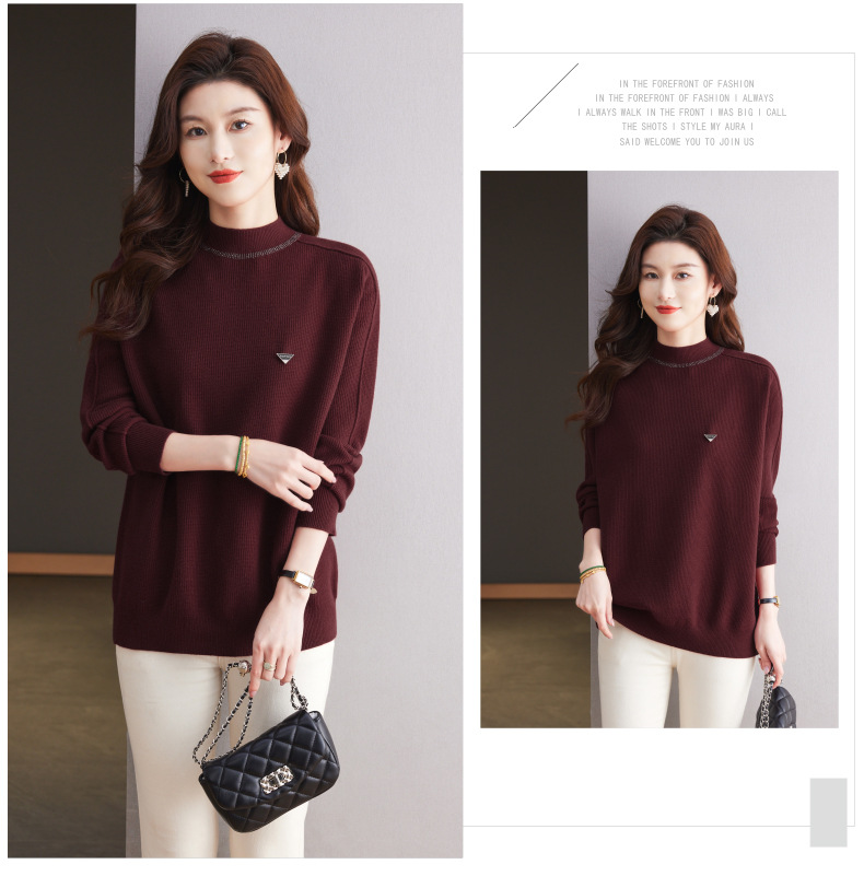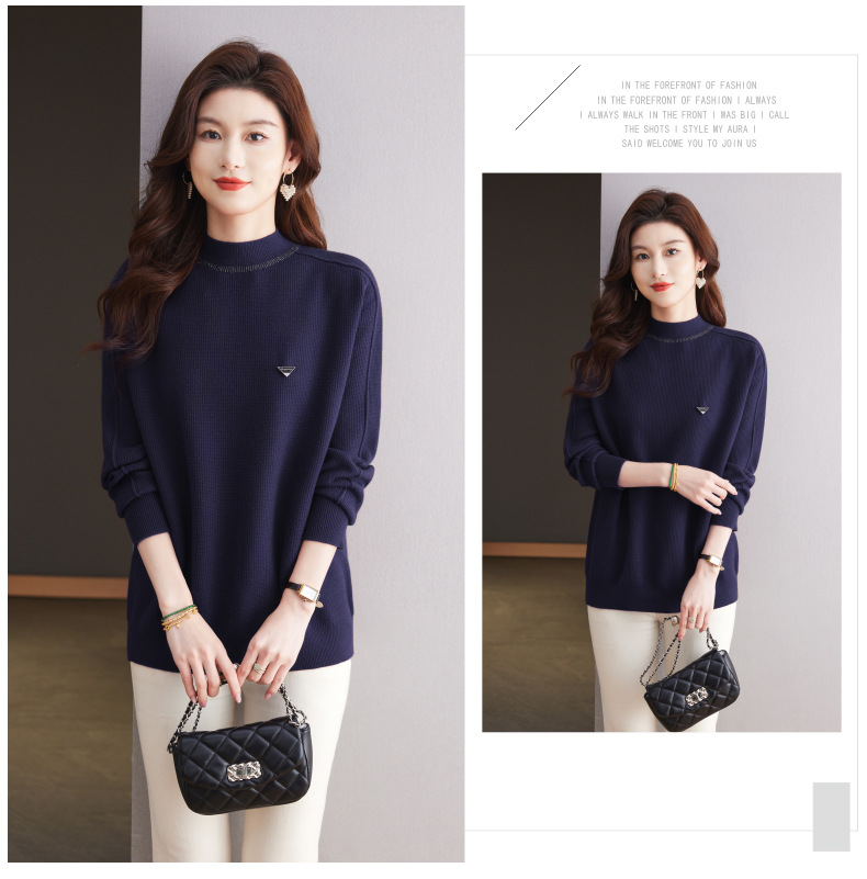CC-15-2293配大衣的半高领毛衣女中长款秋冬2024新款内搭中款针织打底衫洋气