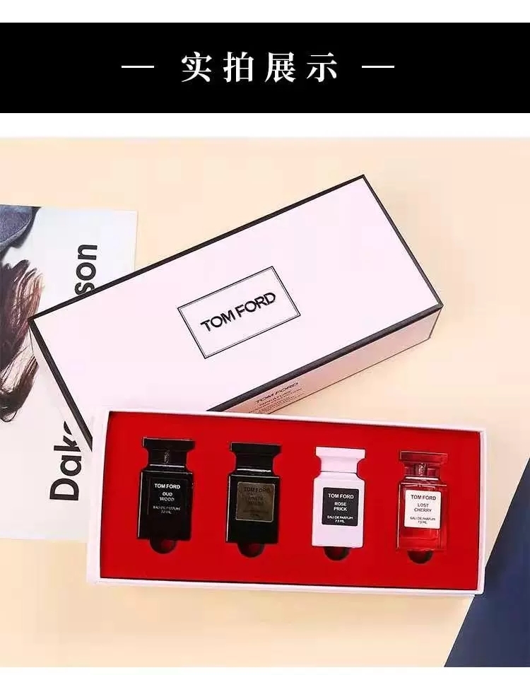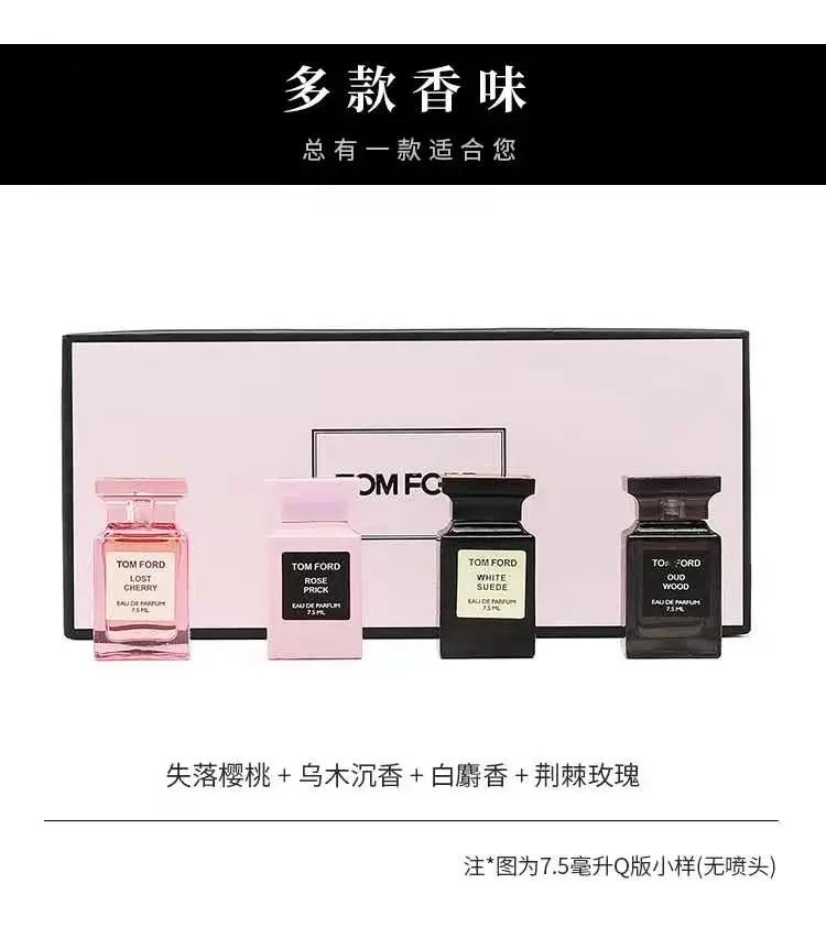 【人气香水套】TOM FORD汤姆福特 TF香水小样四件套装 甜蜜清新持久套盒失落樱花 荆刺玫瑰 乌木沉香 白麝香 Q香7.5ml套装