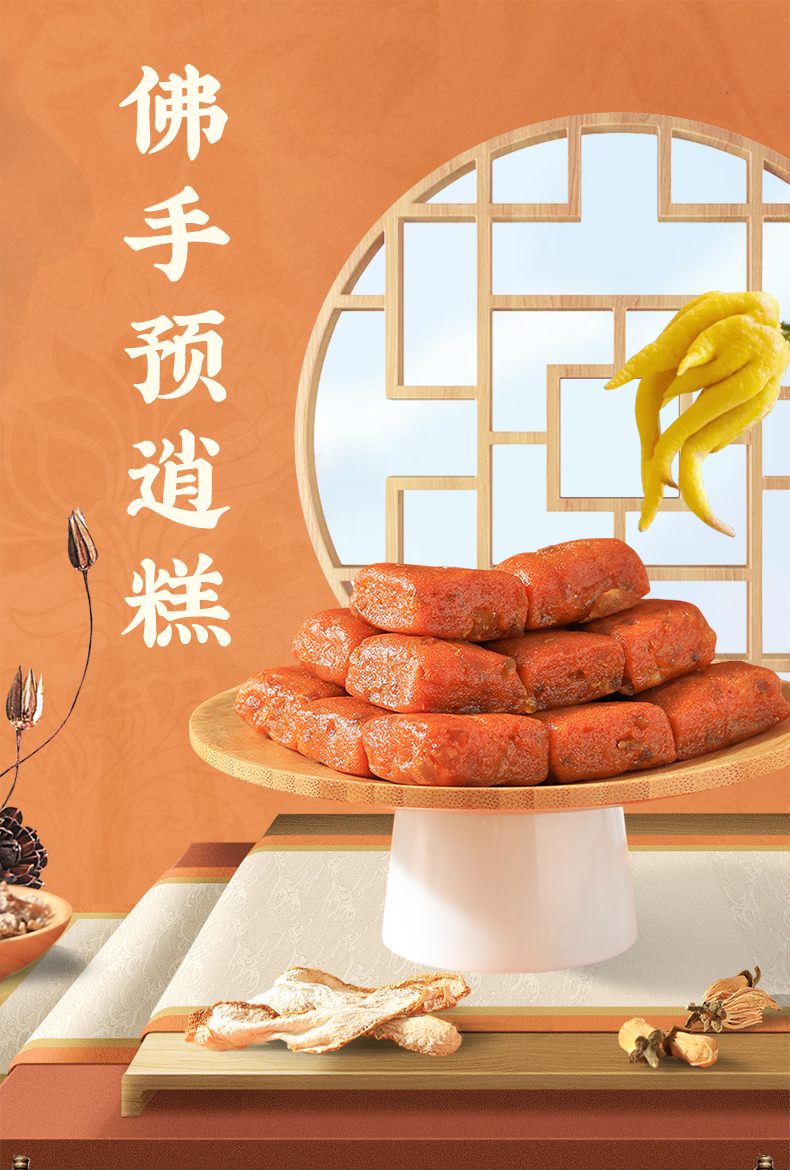 【健康专享】全控谷佛手预消糕含角豆提取物 佛手橙皮银耳等配伍心情舒畅中式糕点