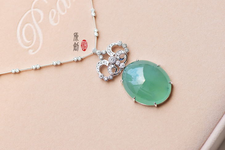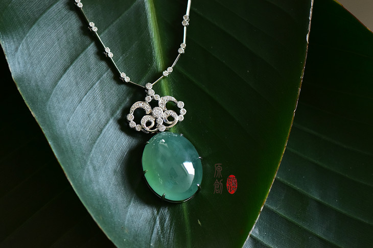 18K白金翡翠大绿蛋钻石项链