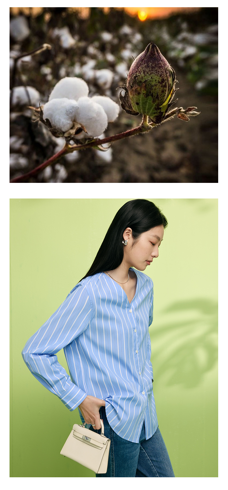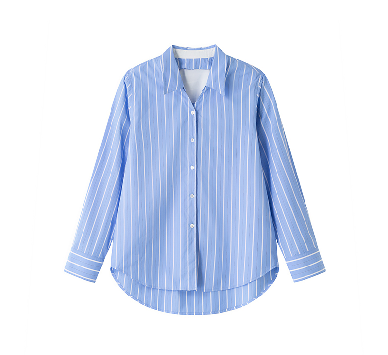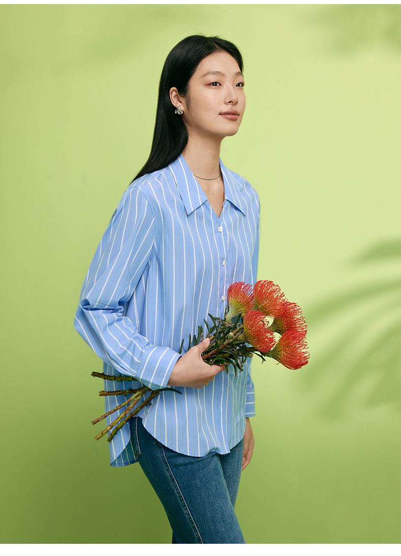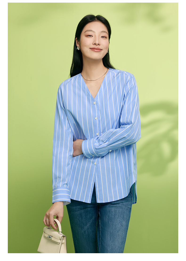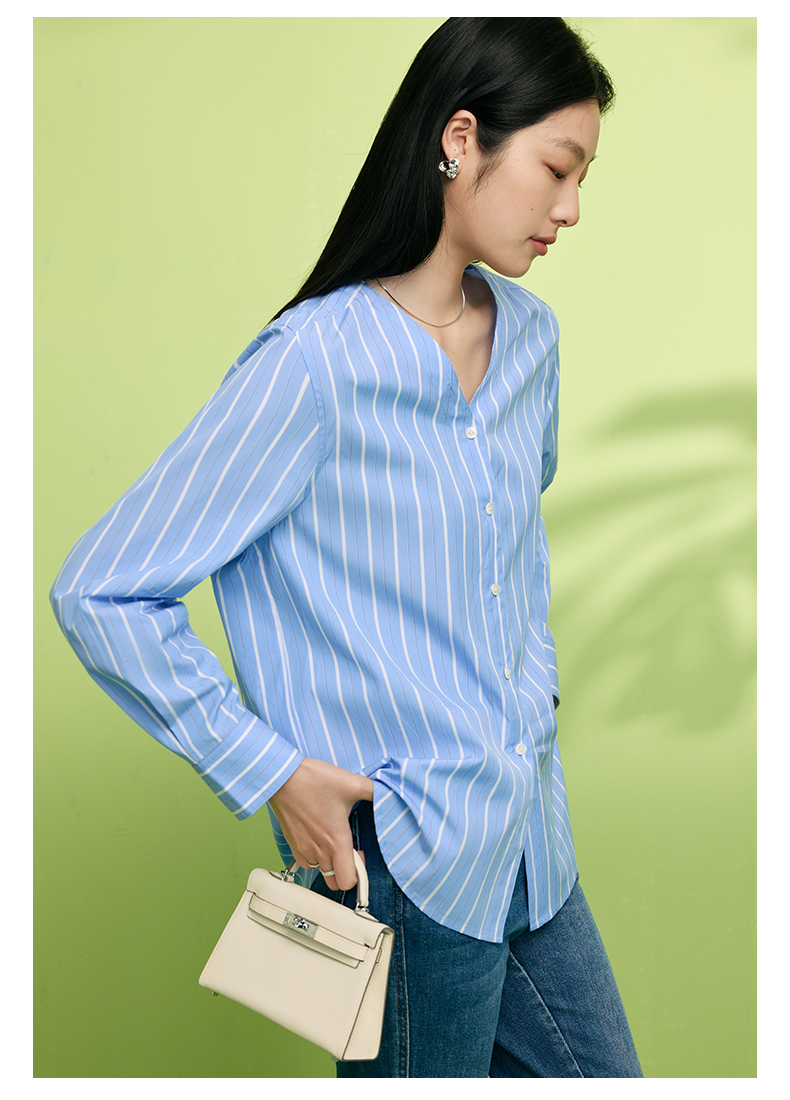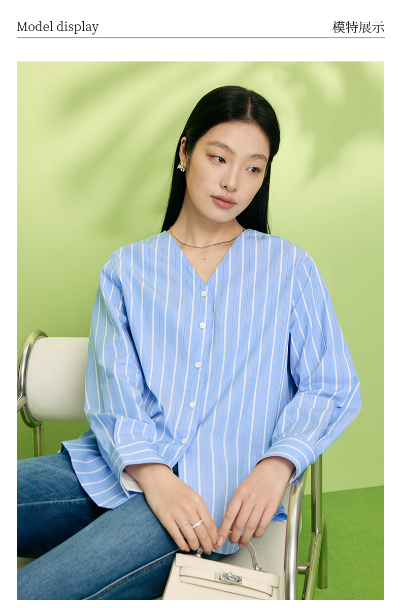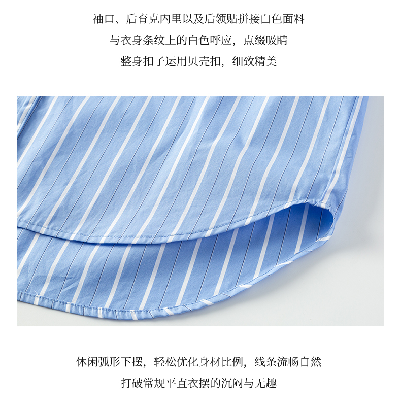 IN AND ON2023春季新款衬衫女条纹拼接百搭显瘦翻领气质上衣52596