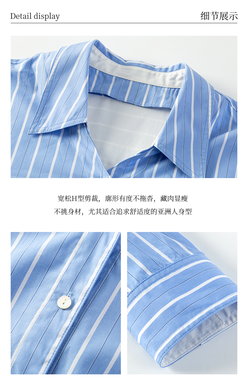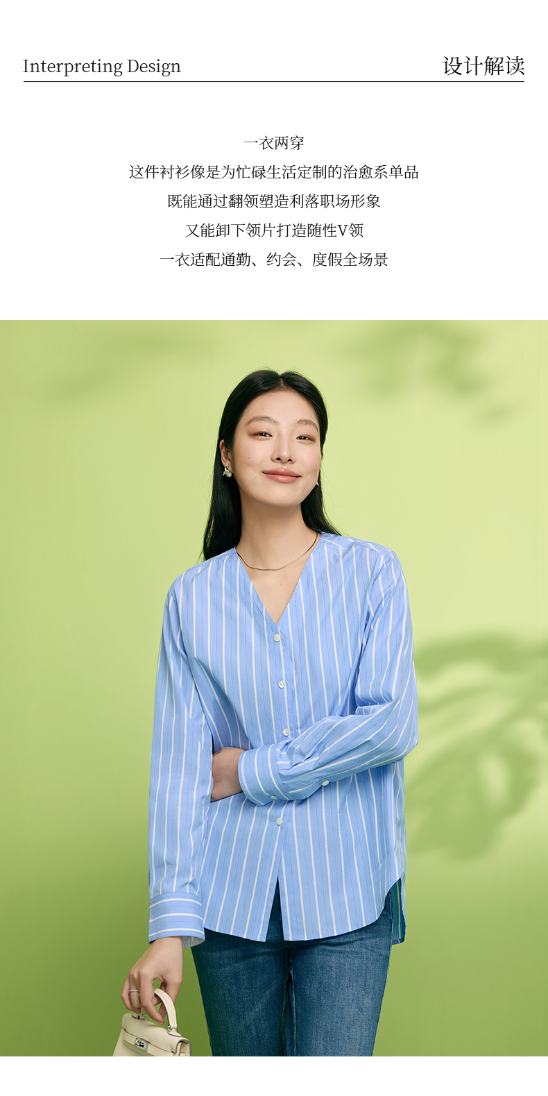 55169 IN AND ON 蓝调 100%棉一衣多穿可脱卸领条纹衬衫