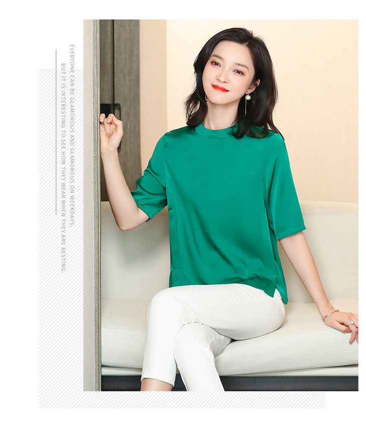 时尚纯色气质,真丝短袖衬衫ASE-3356
