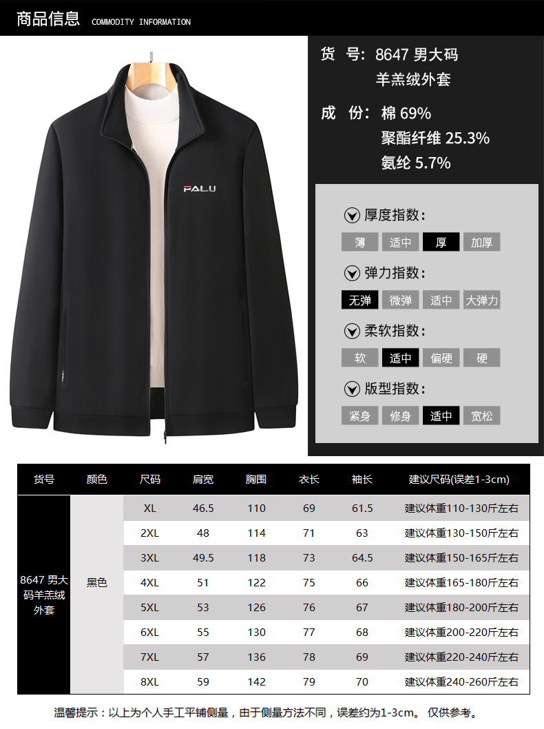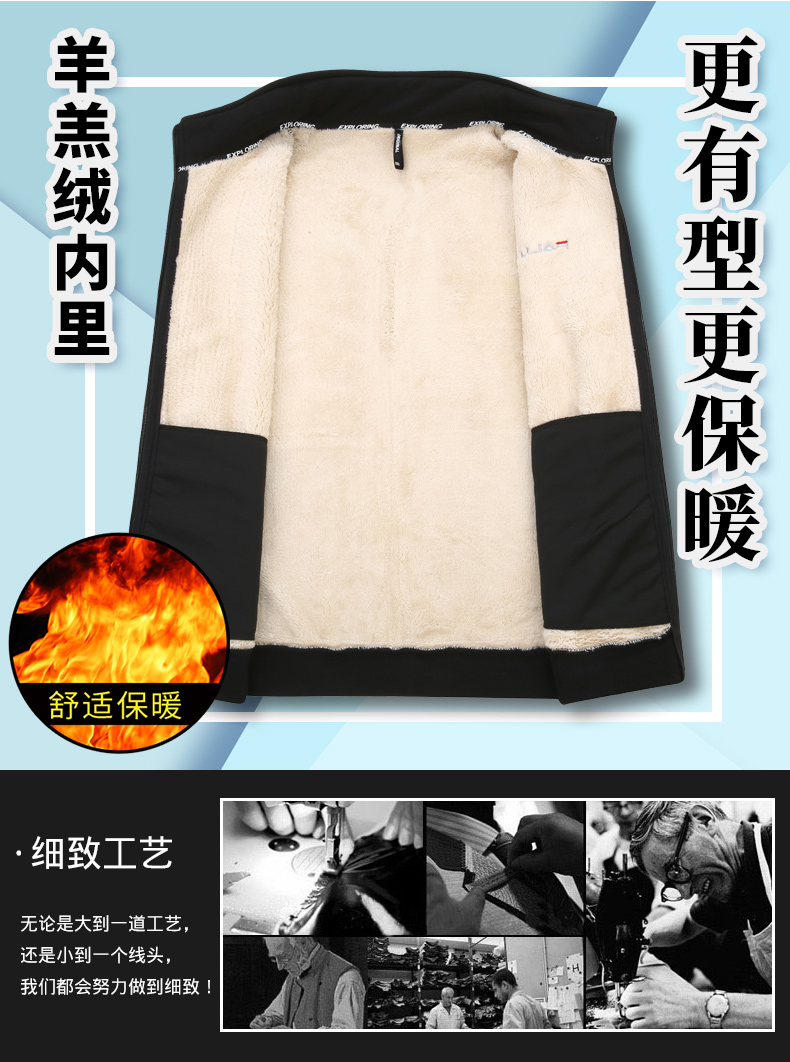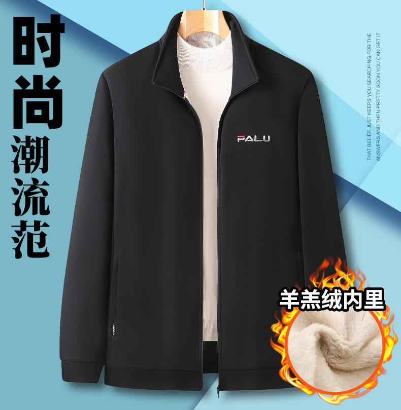 【羊羔绒】【新款DZP】大依优型大码立领夹克外套羊羔绒加绒外套男宽松加肥加大码上衣夹克休闲