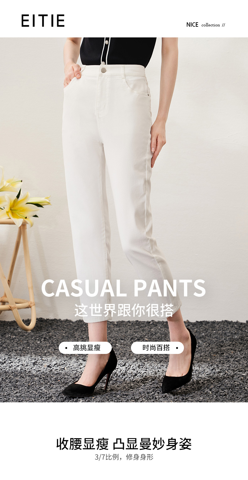 EITIE爱特爱春季新款简约通勤时尚显瘦小脚修身牛仔裤长裤女6905616