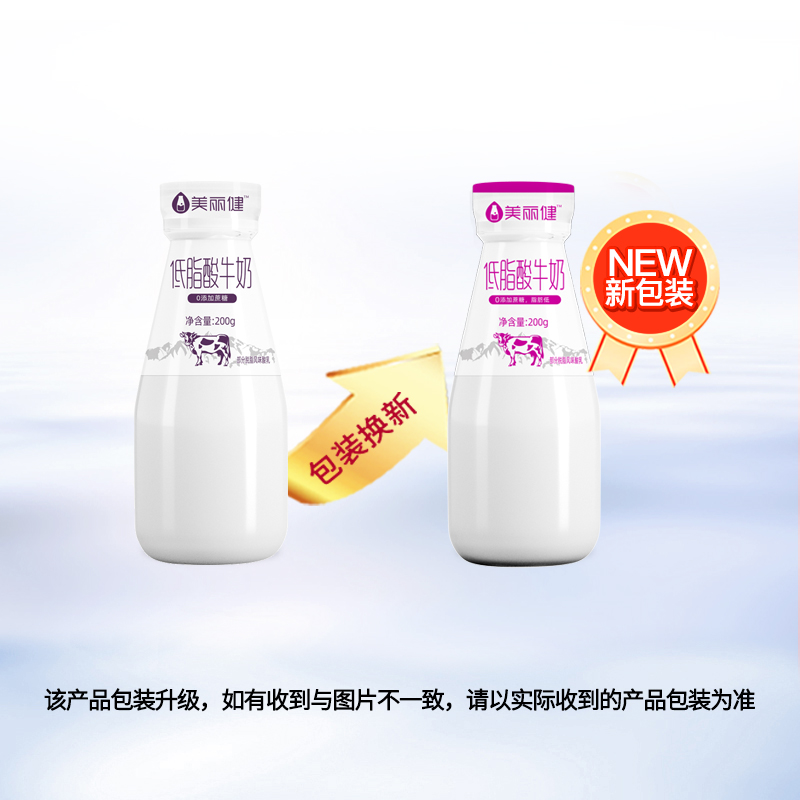 【满2件9.5折限量专属】美丽健瓶装低脂0蔗糖酸牛奶200g
