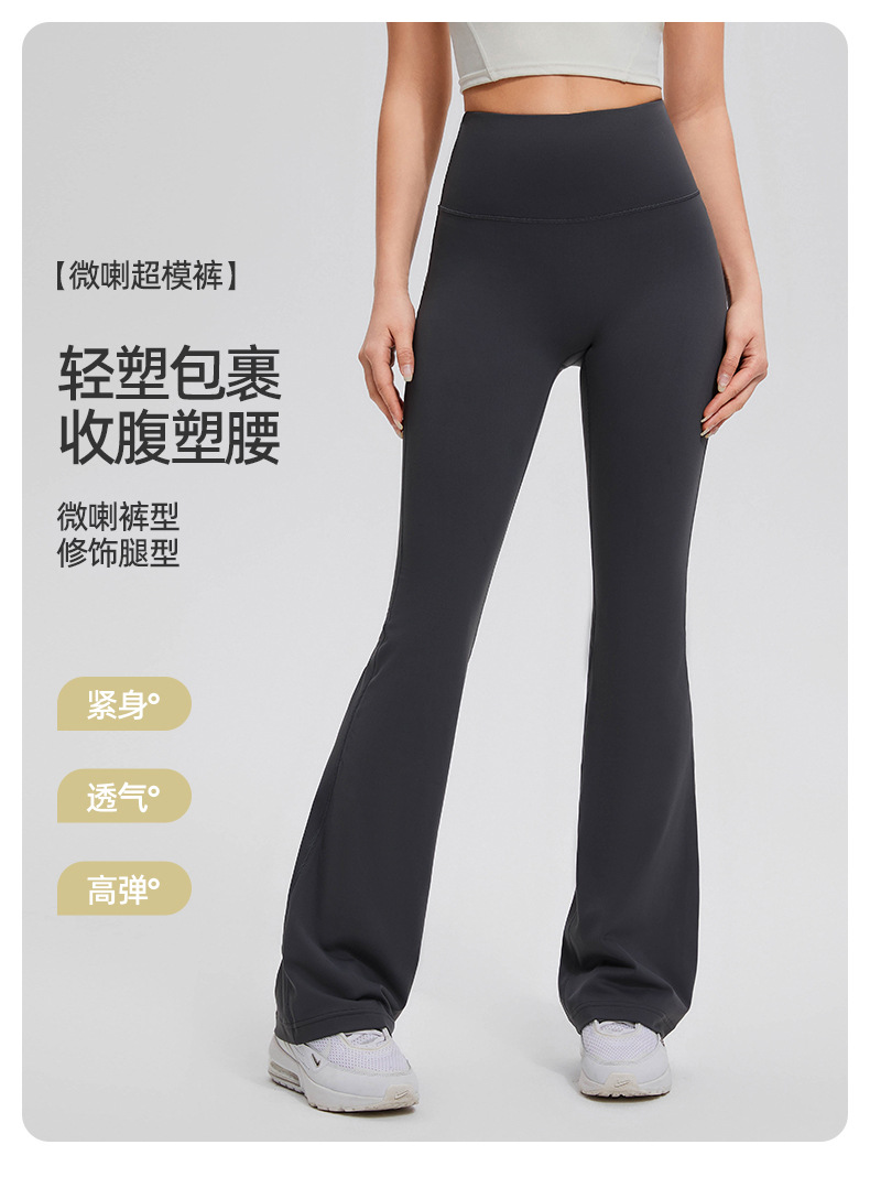 高腰健身微喇叭裤女裸感提臀瑜伽裤紧身运动阔腿长裤高个子加长款