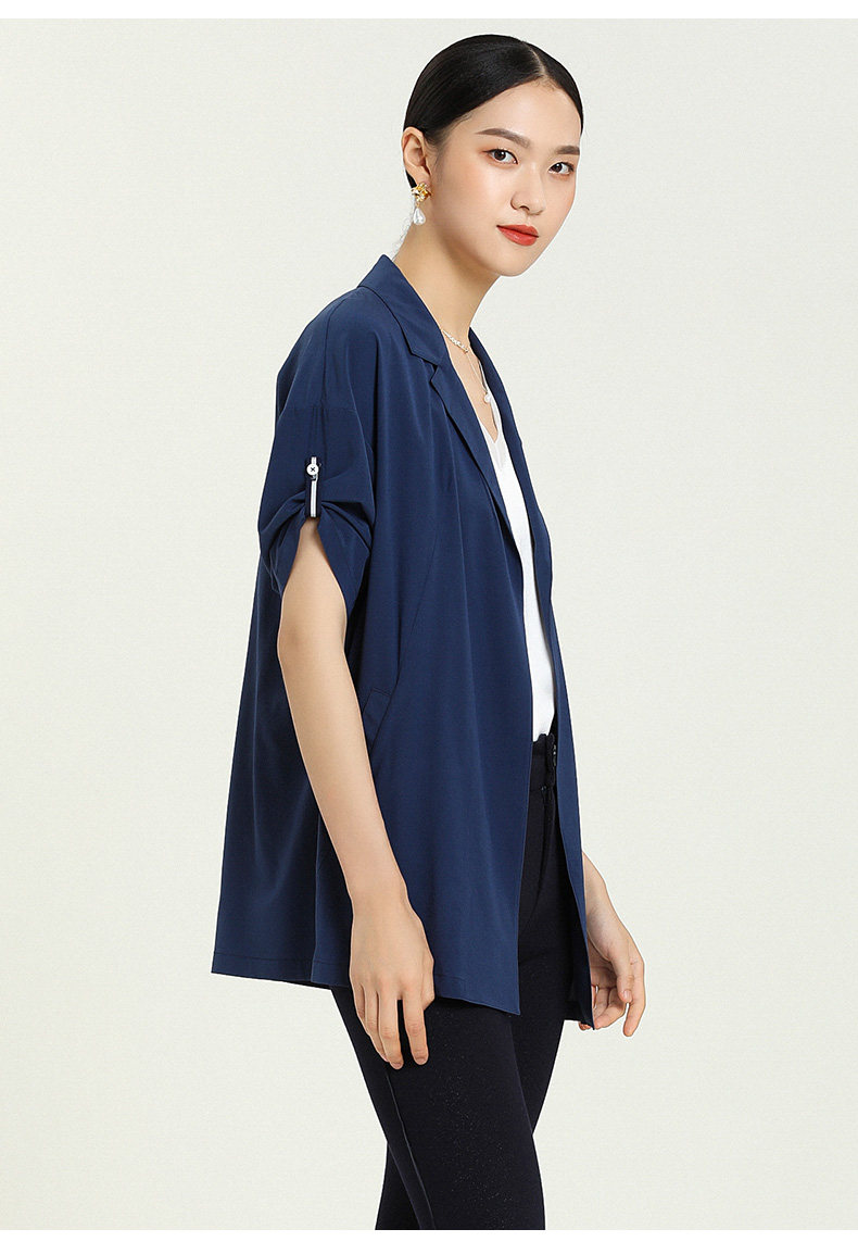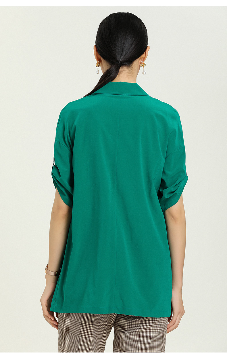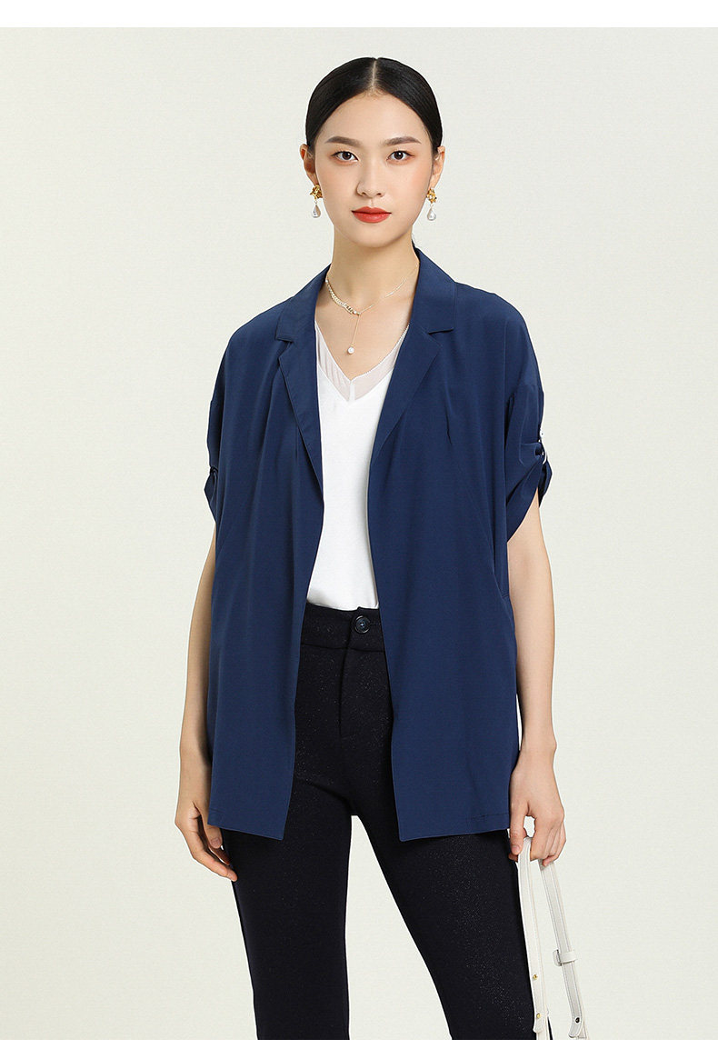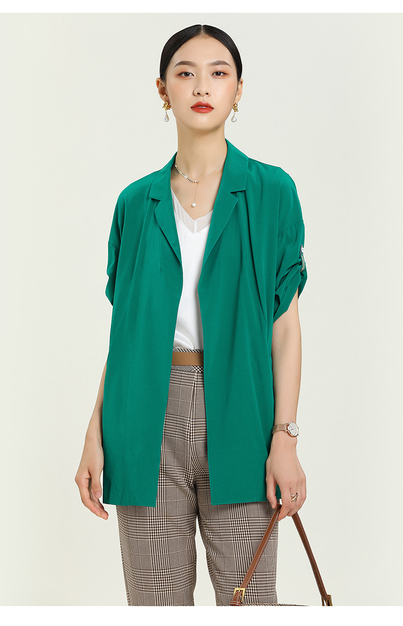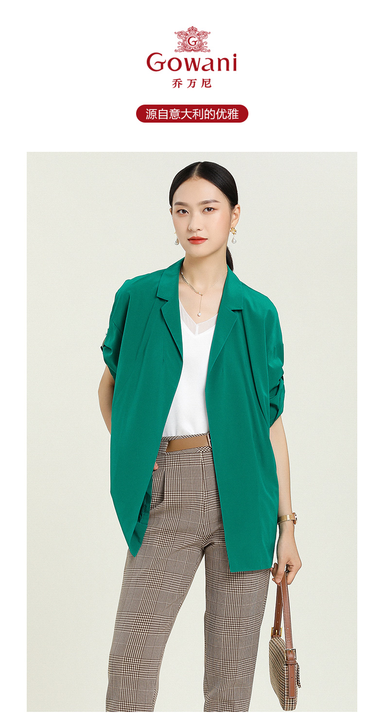 【两色可选】乔万尼秋装中长款上衣桑蚕丝外套宽松短袖开衫EB1B702