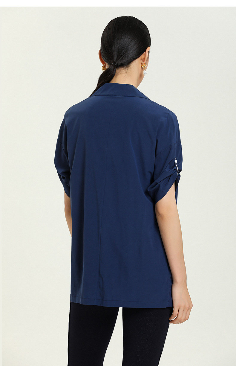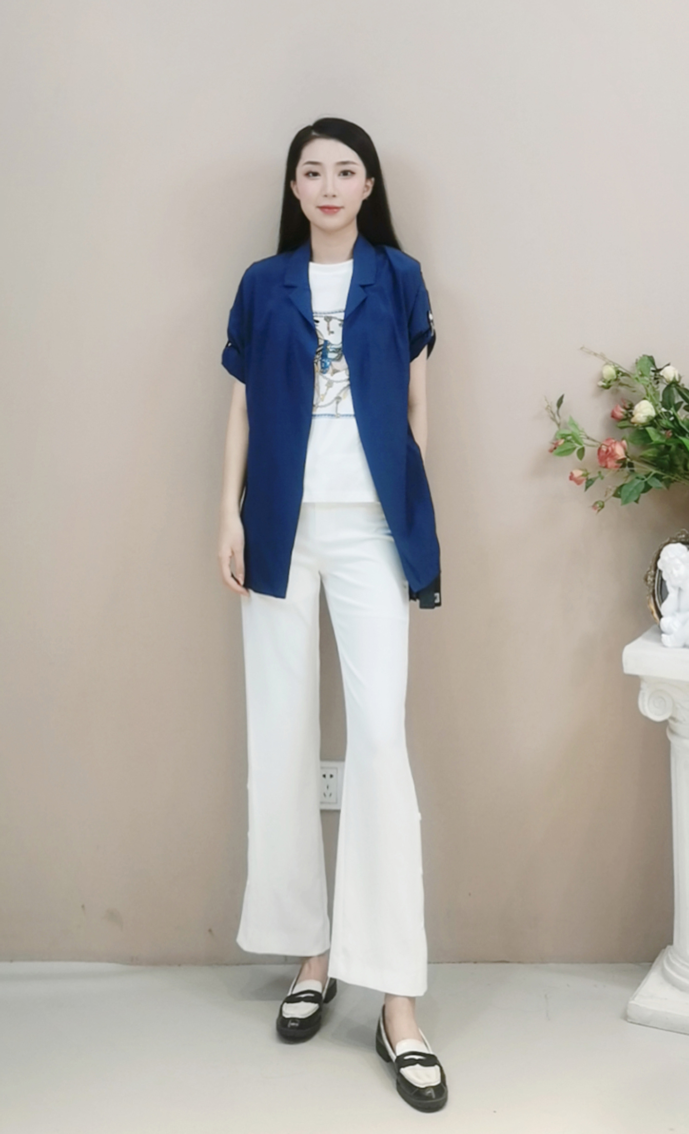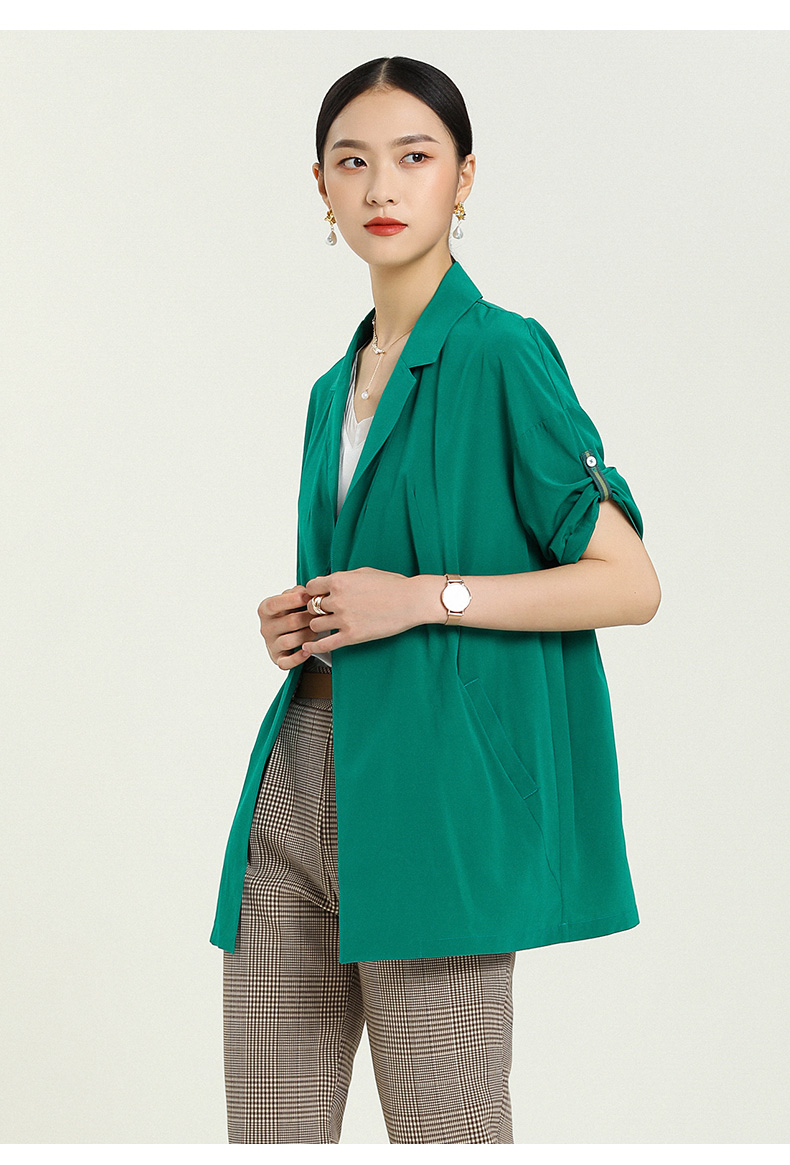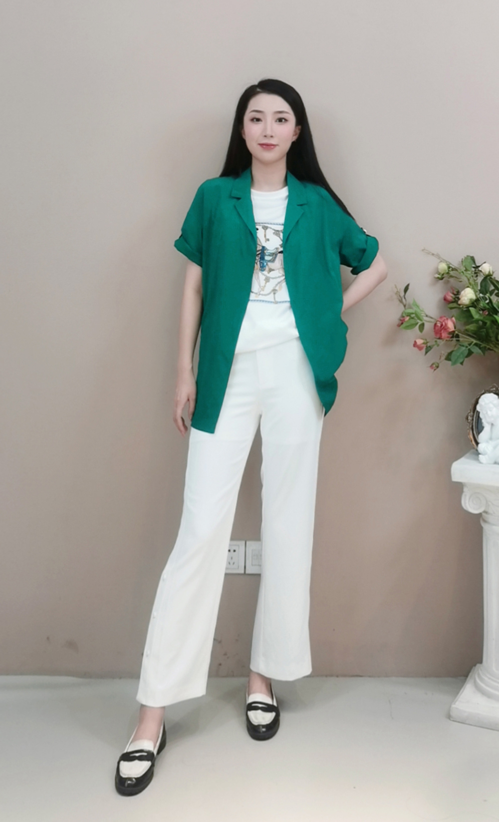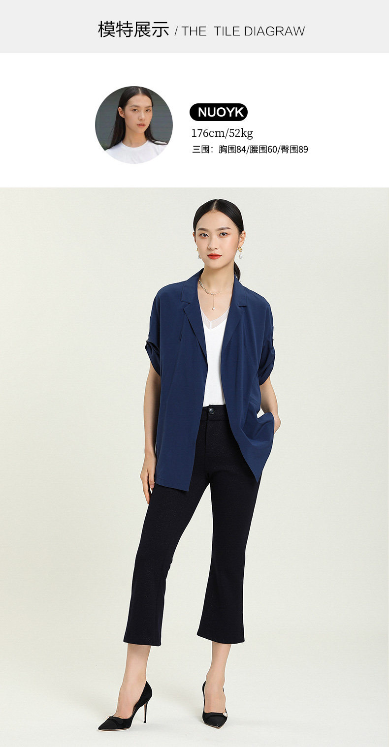 【两色可选】乔万尼秋装中长款上衣桑蚕丝外套宽松短袖开衫EB1B702