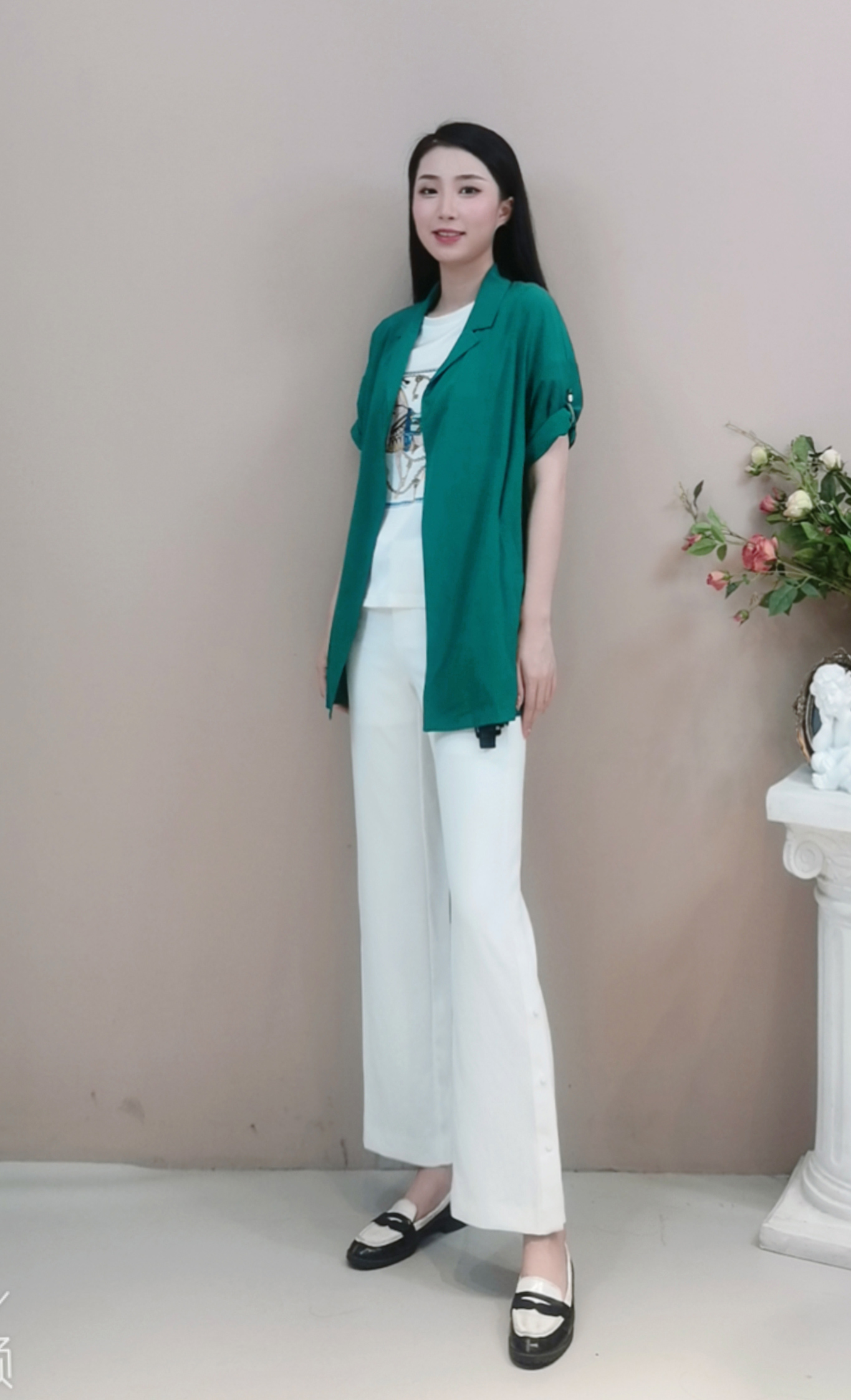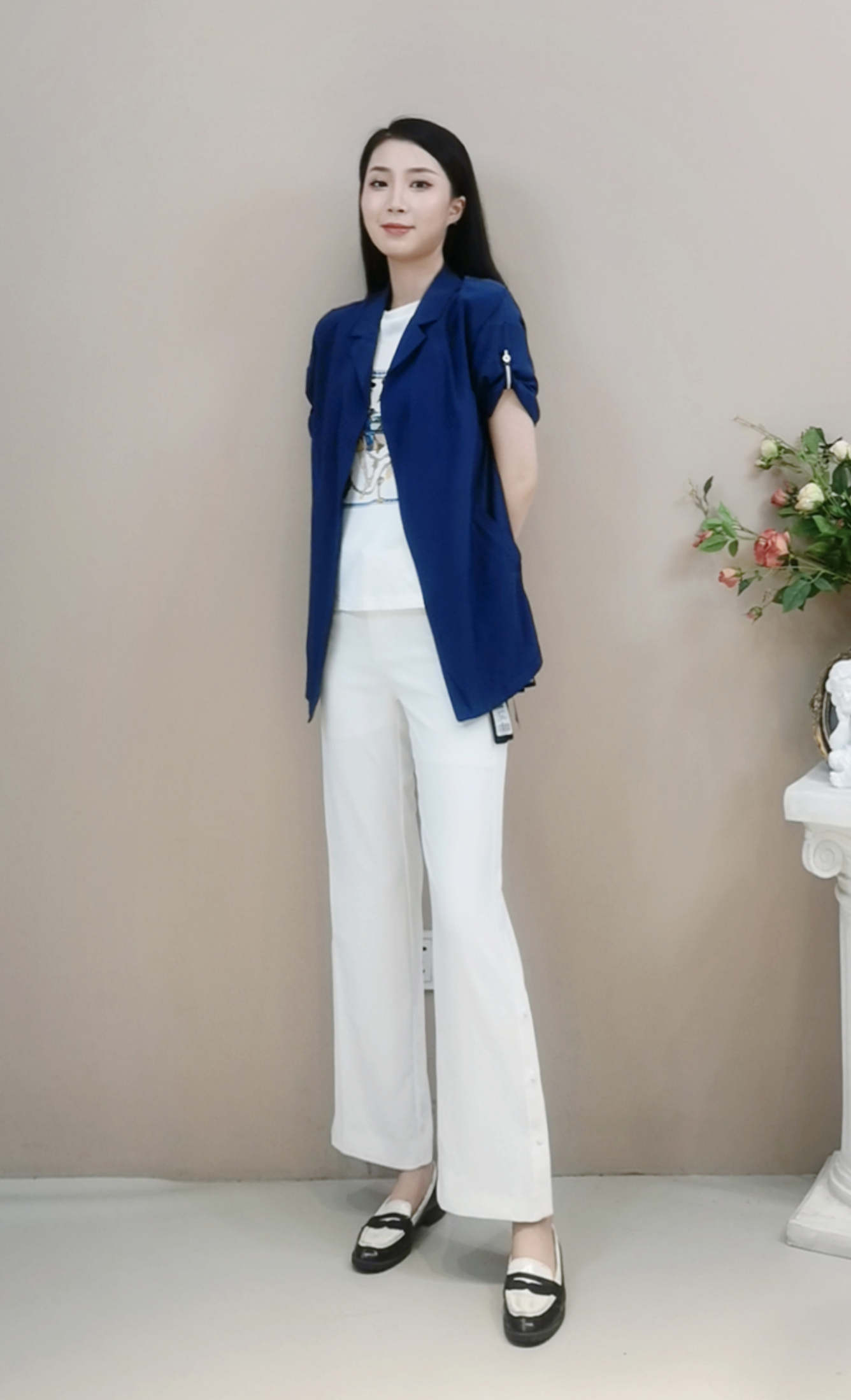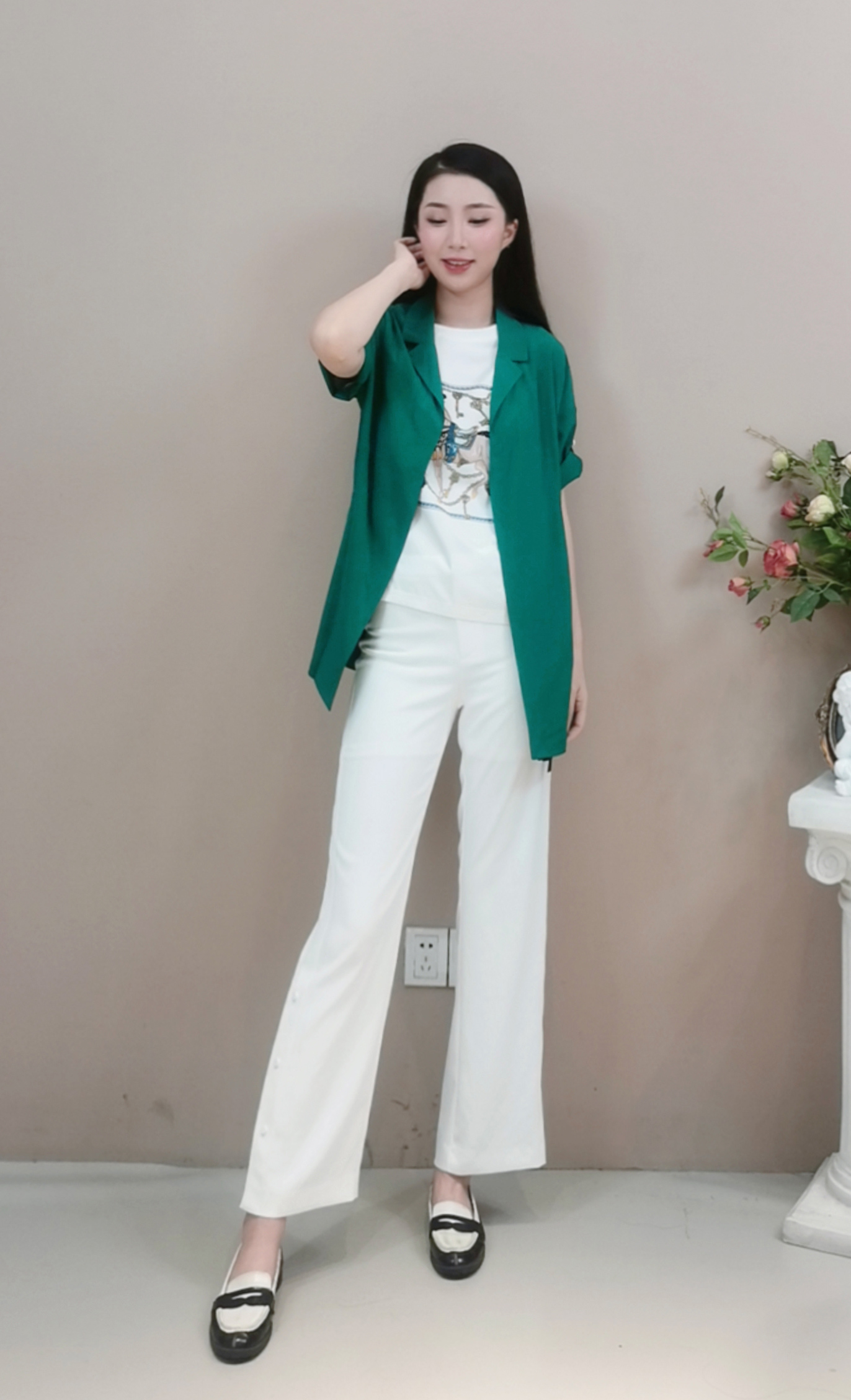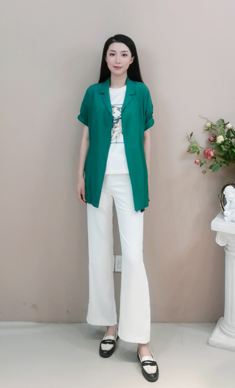 【两色可选】乔万尼秋装中长款上衣桑蚕丝外套宽松短袖开衫EB1B702