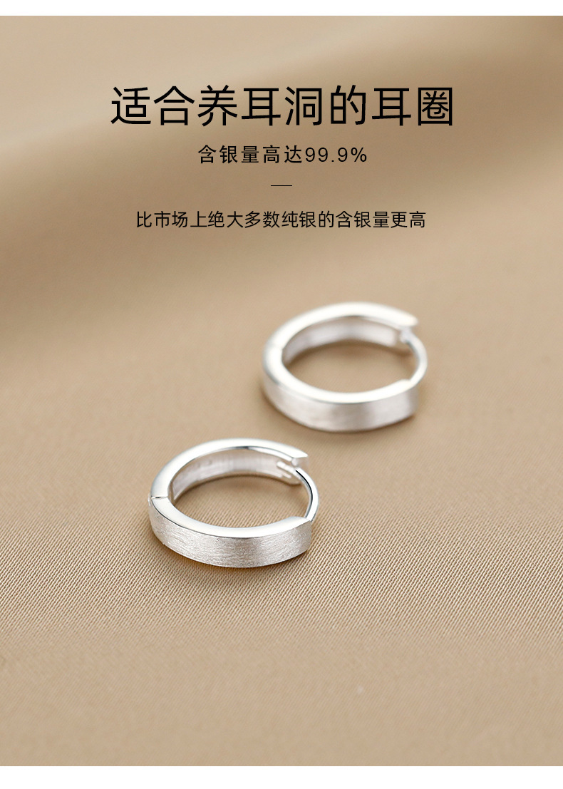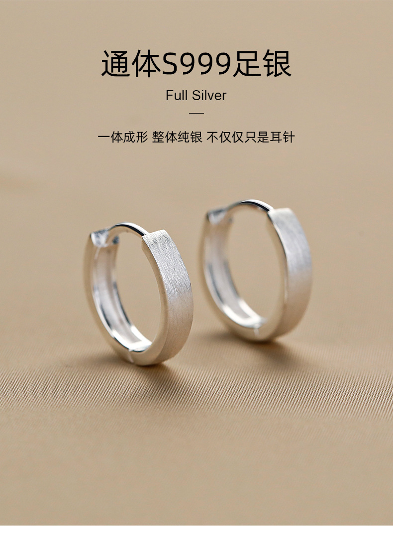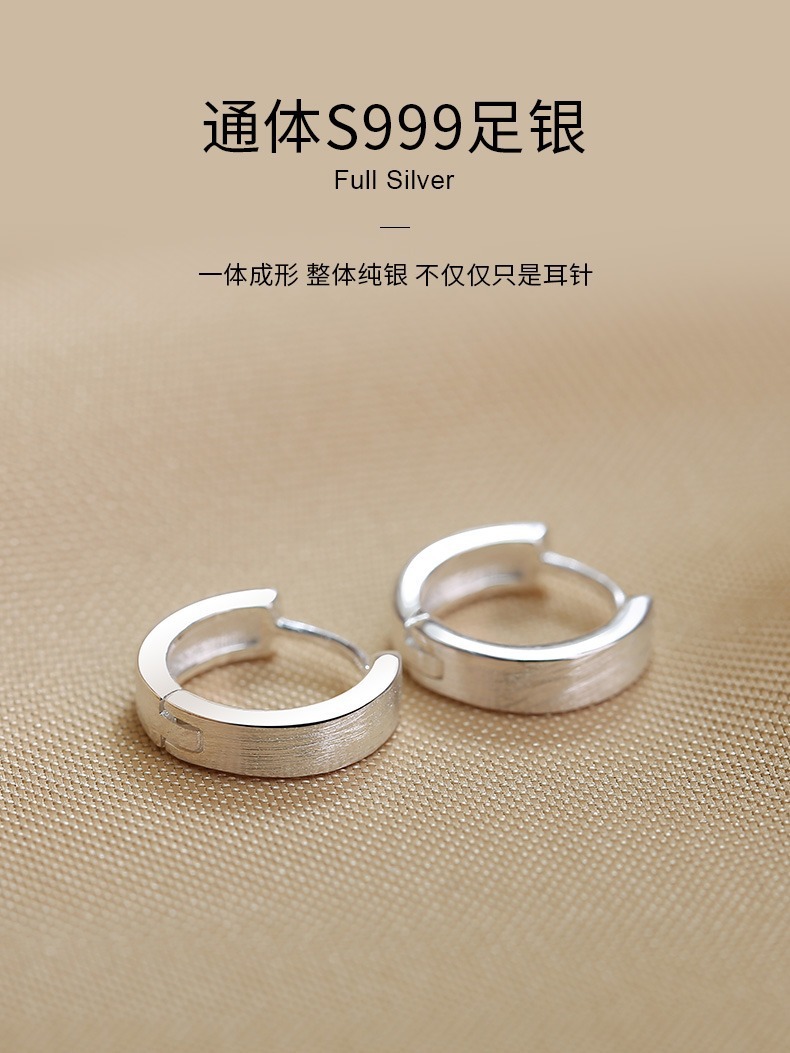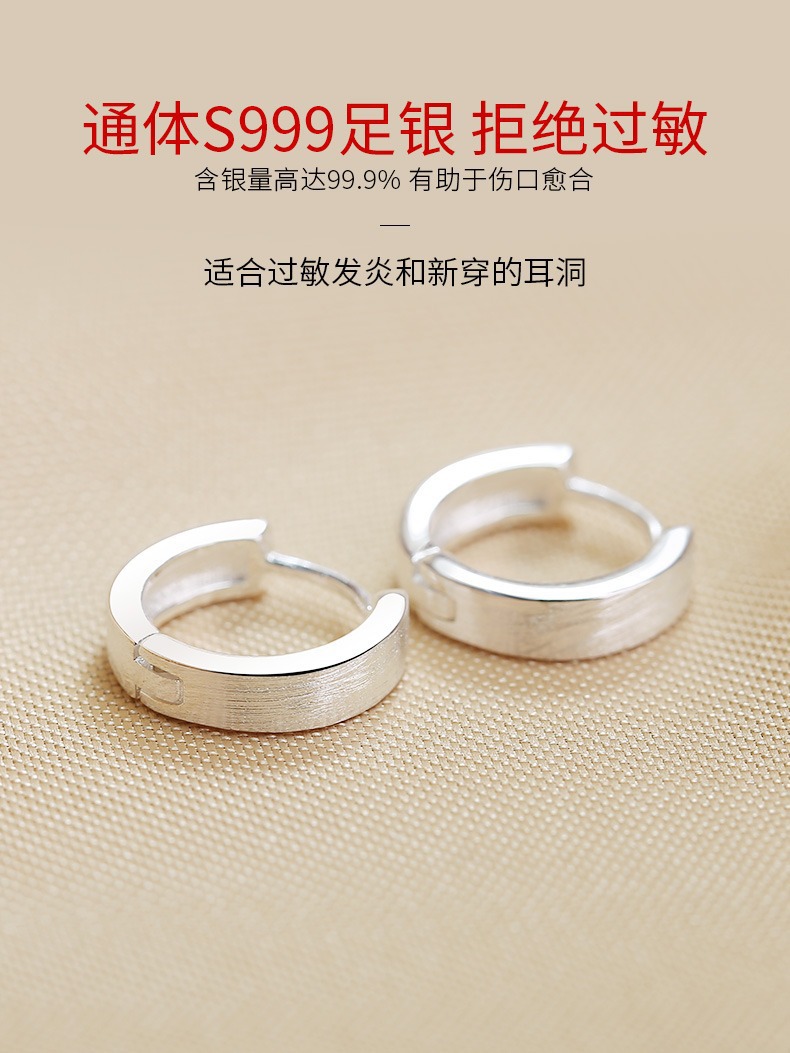 丁摩 素圈足银999纯银耳扣拉丝圆形耳环几何耳圈养耳洞耳饰品5ZF-90130