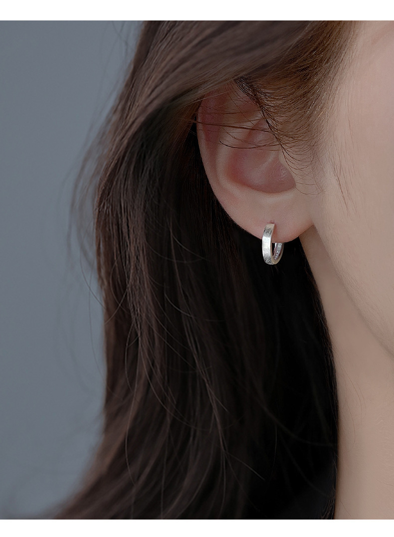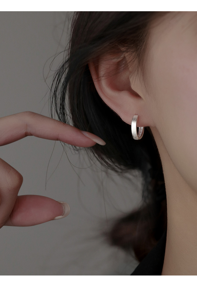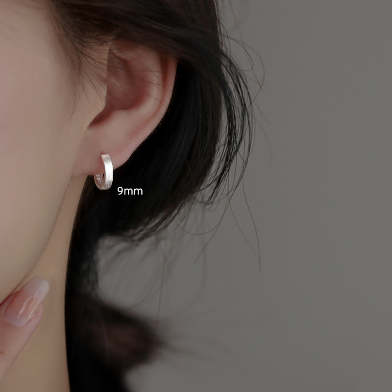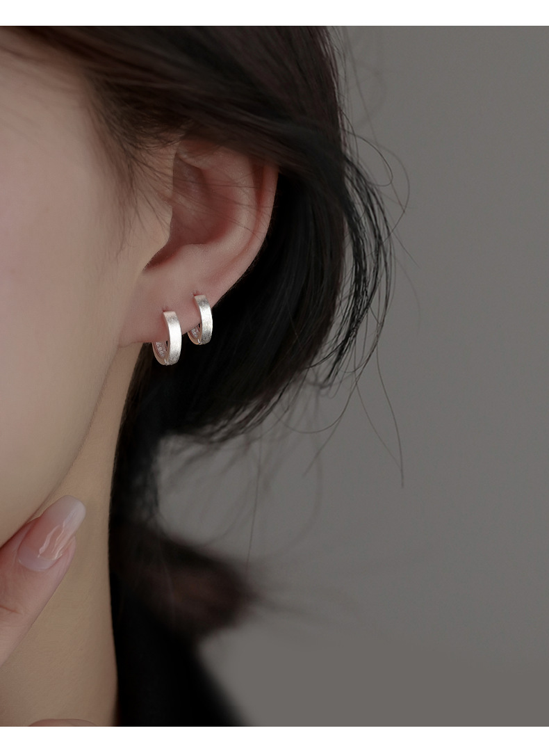 丁摩 素圈足银999纯银耳扣拉丝圆形耳环几何耳圈养耳洞耳饰品5ZF-90130