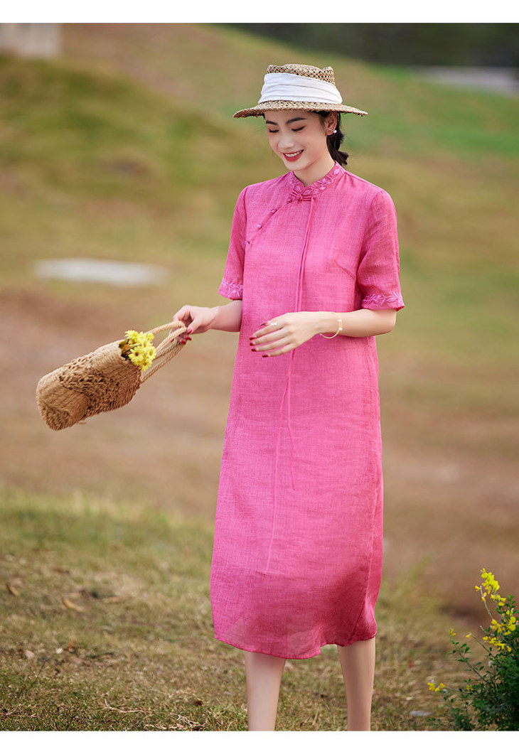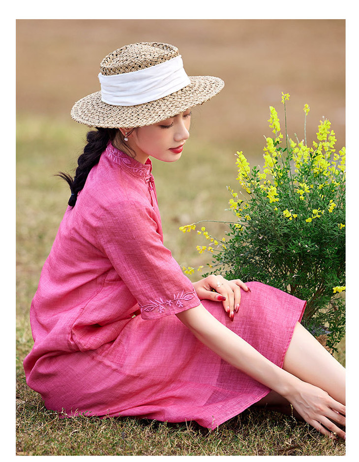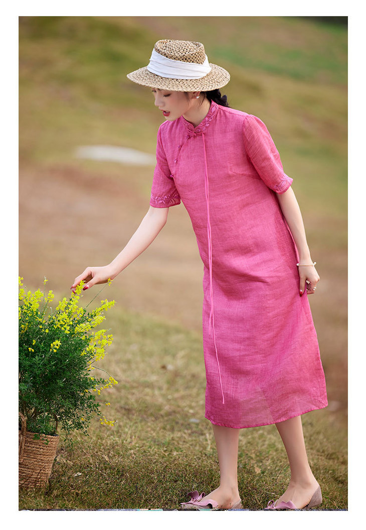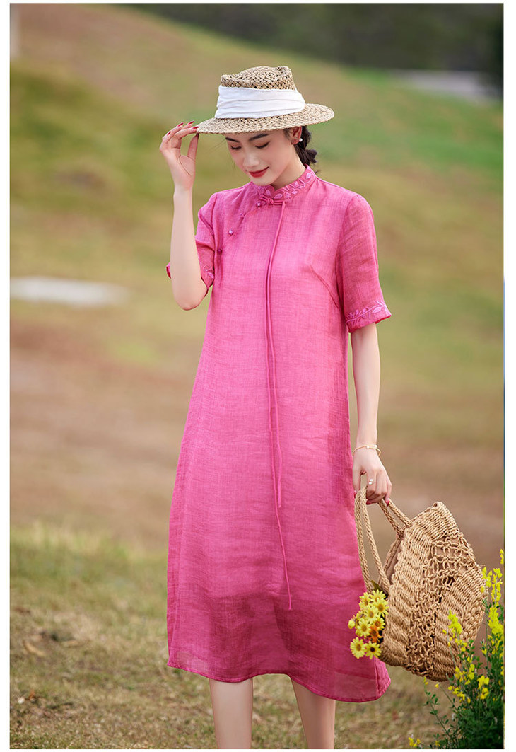 苎麻文艺范儿淑女,改良旗袍显瘦连衣裙TT96137