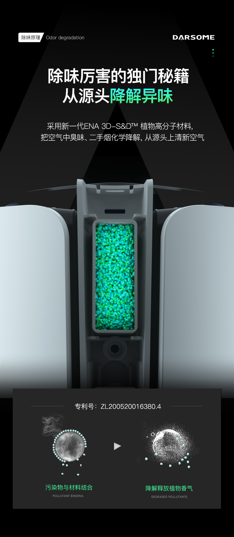 1、ENA 3D-S&D人可在场杀菌除味技术,新一代异味降解材料,淘汰传统异味掩盖法。