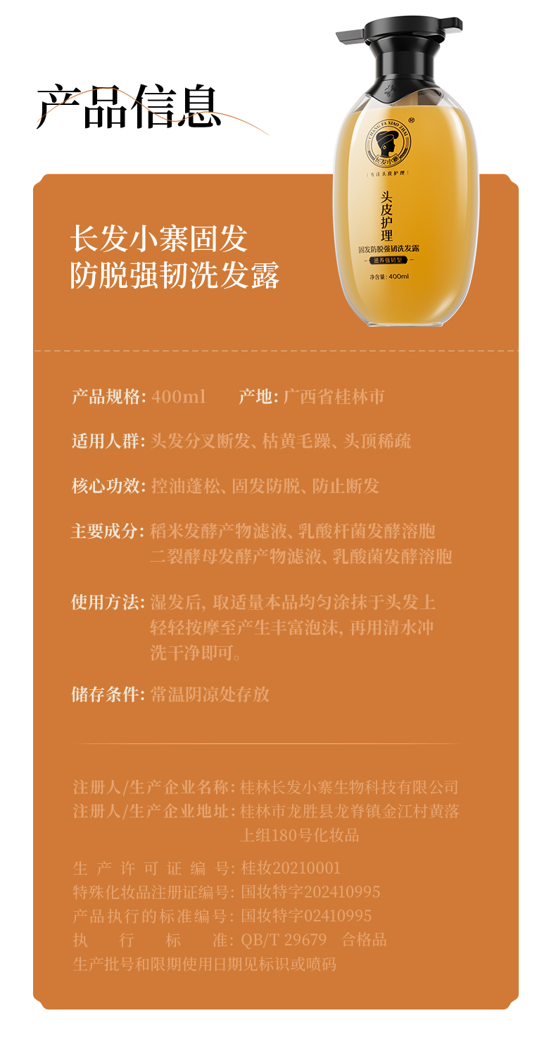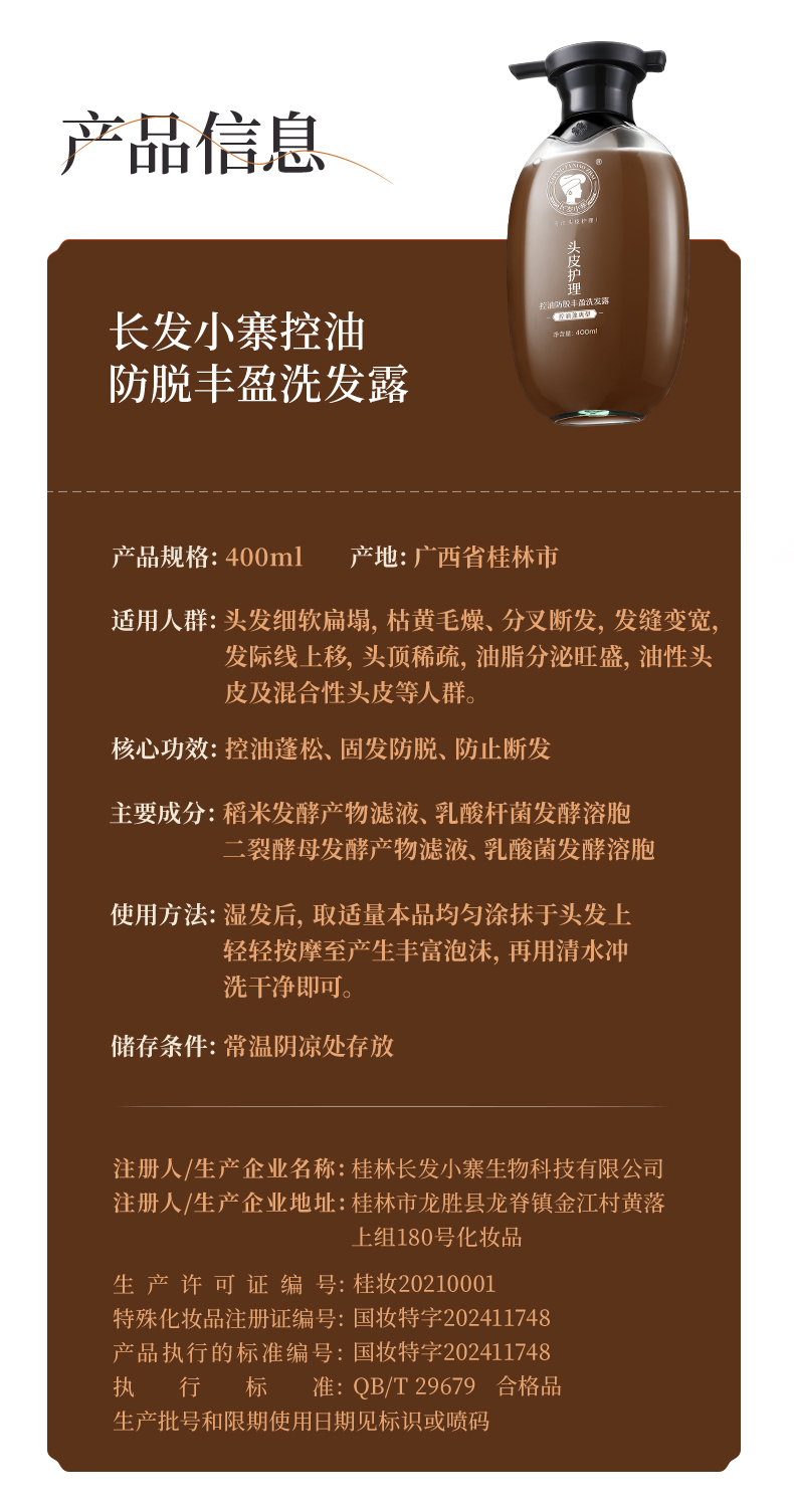 持证防脱 强韧丰盈 I 长发小寨 淘米水洗发水固发防脱强韧丰盈蓬松滋养养护