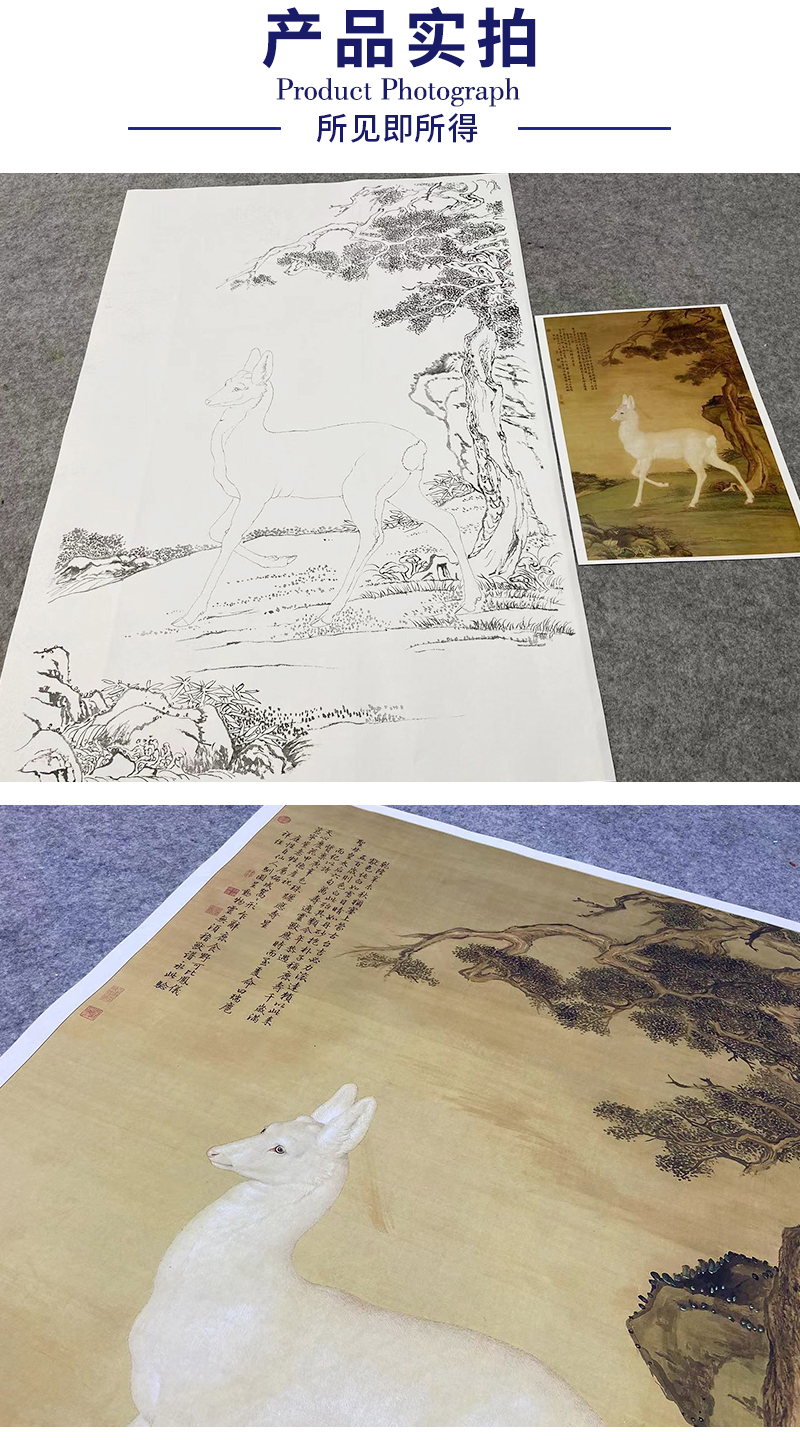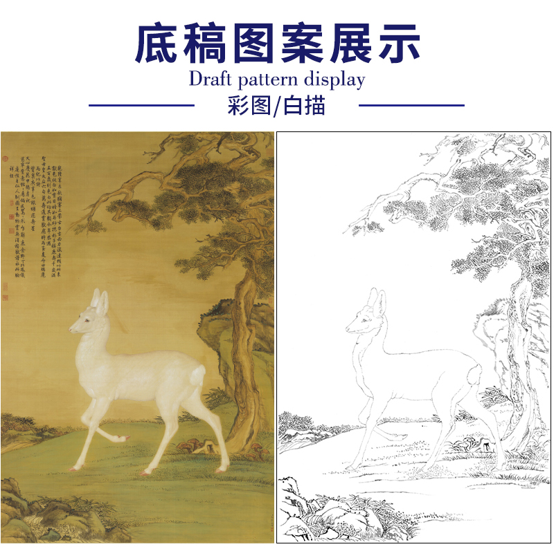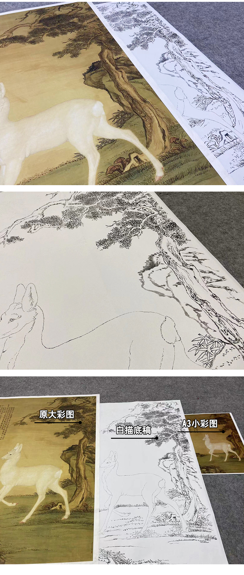 【大彩图】郎世宁工笔画白描底稿《瑞麅图》临摹勾线高清打印稿LS04