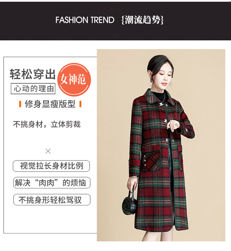 QYM 7D6268-Y大衣厚款宽松休闲格纹外套毛呢