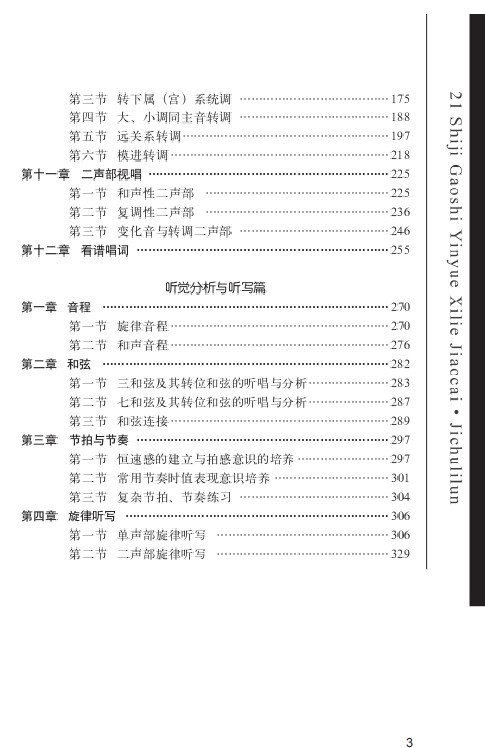 《视唱练耳教程》是面向21世纪我国高等师范院校音乐教育专业的视唱练耳综合性教材。包括视唱、听写、听觉分析三大部分。《视唱练耳教程》体系完整、内容丰富、选择余地宽广、适合于多层次、多学程的音乐专业教学和自学的需要。同时也可作为中等院校音乐专业视唱练耳课的必修教材。